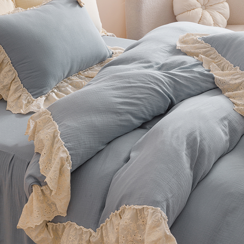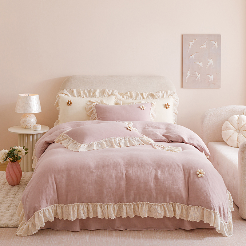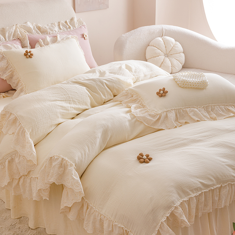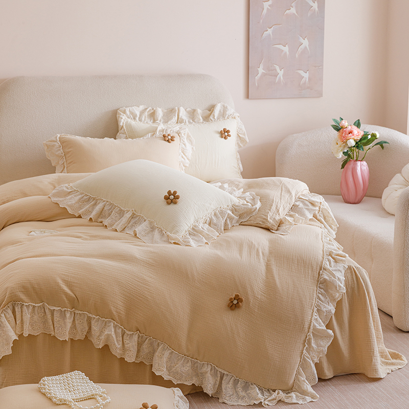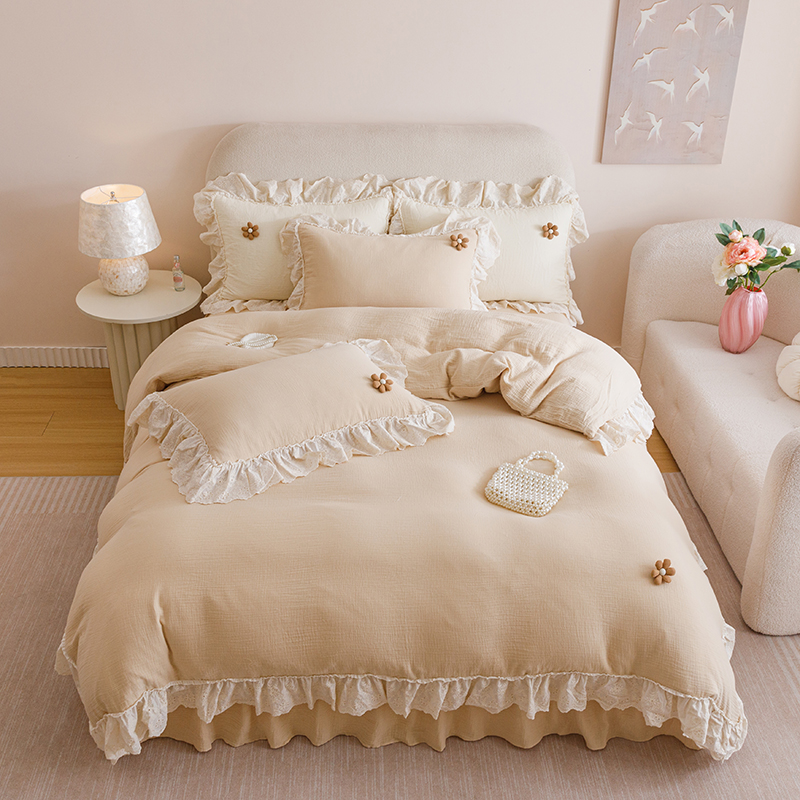 (总)北纬27度 2025新款双层全棉纯棉绉绉纱四件套-芳华满庭风格二,芳华满庭-米色,芳华满庭-牛仔蓝,芳华满庭-浅豆沙,芳华满庭-浅咖