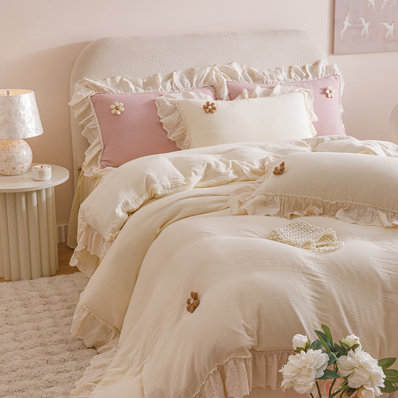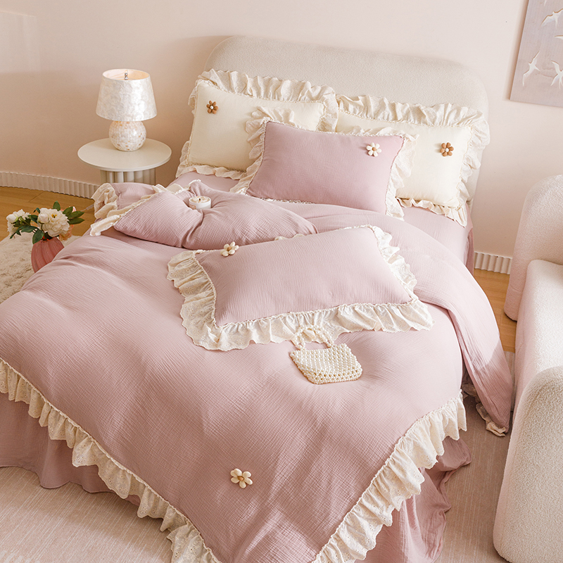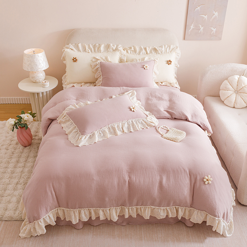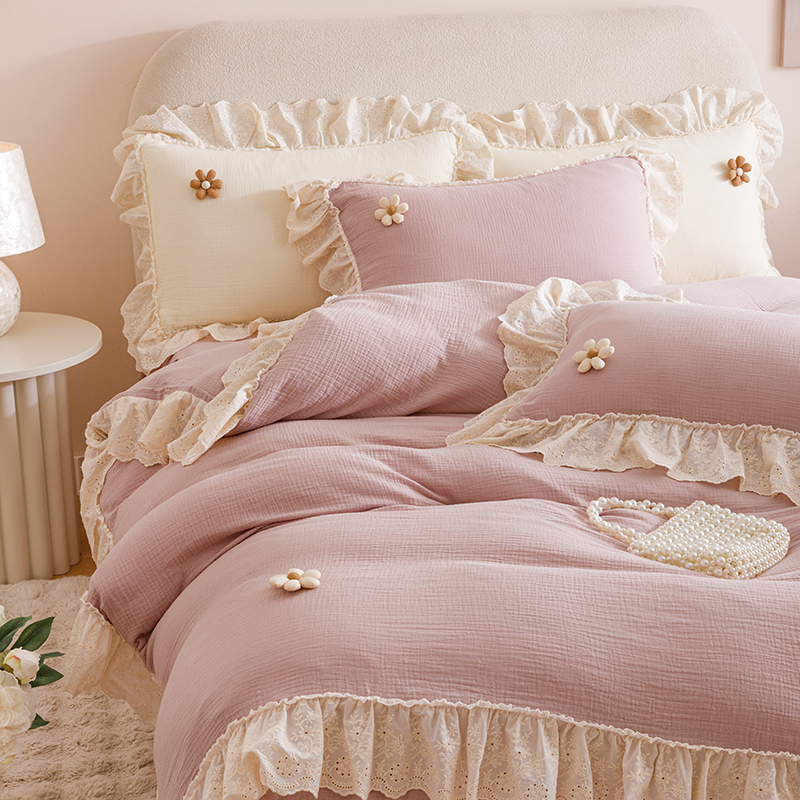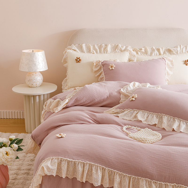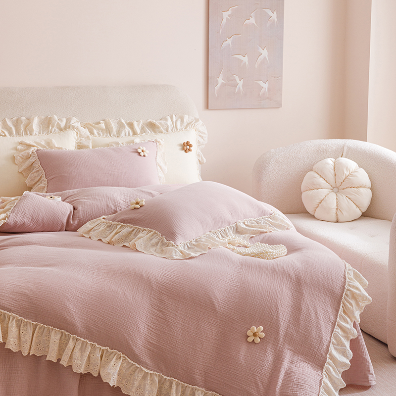 (总)北纬27度 2025新款双层全棉纯棉绉绉纱四件套-芳华满庭风格二,芳华满庭-米色,芳华满庭-牛仔蓝,芳华满庭-浅豆沙,芳华满庭-浅咖