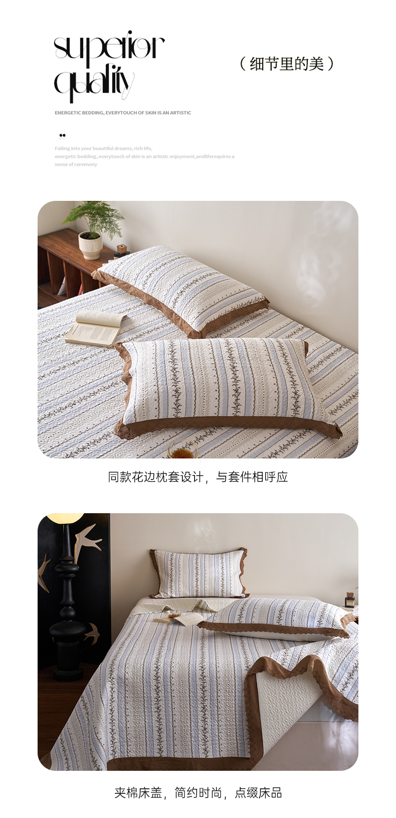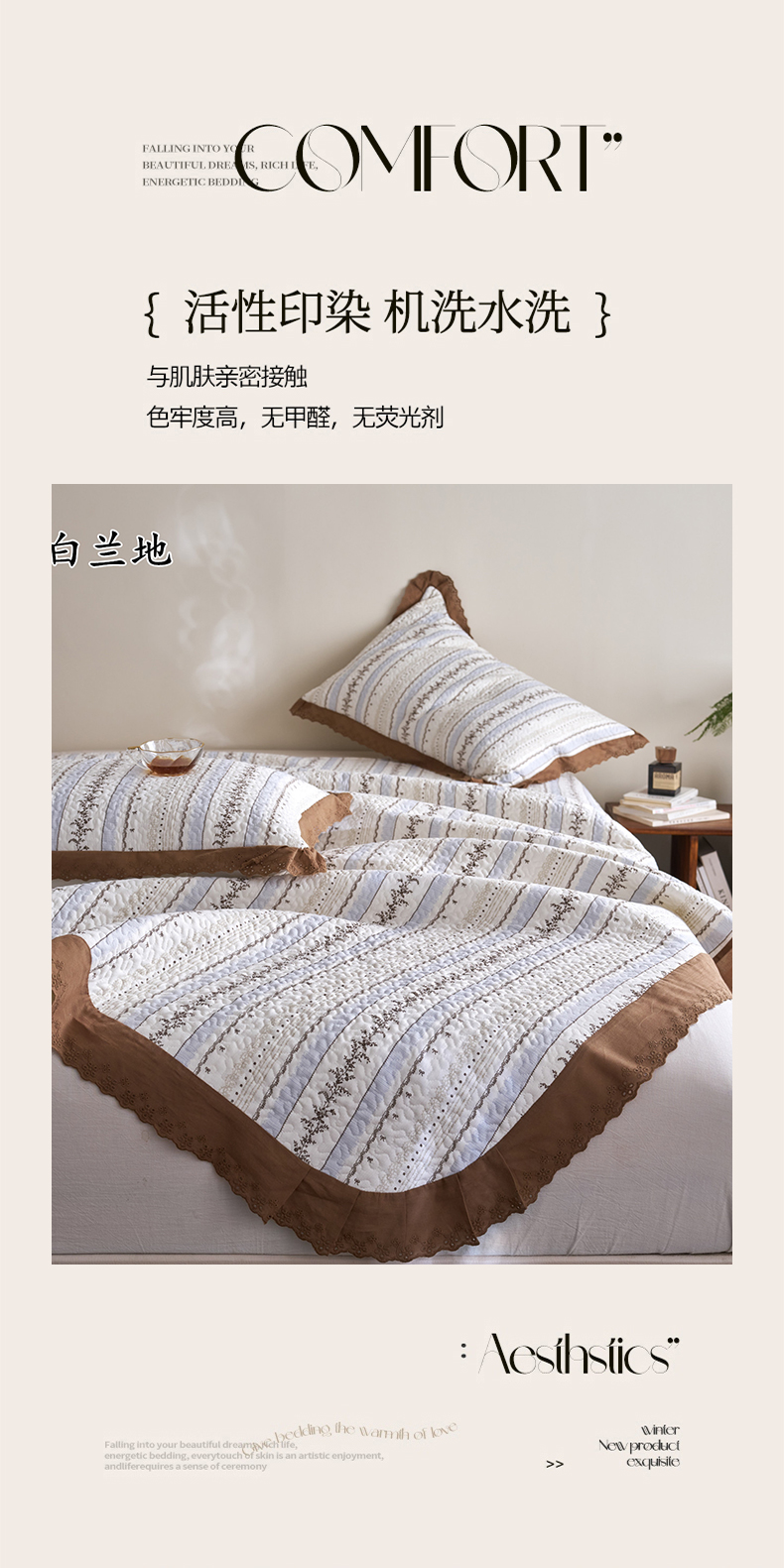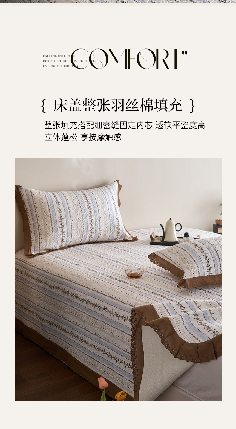 商品名称:漫仙阁家纺 2025新款热卖法式花边款加厚床盖床盖三件套 白兰地