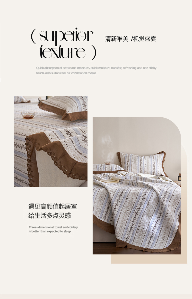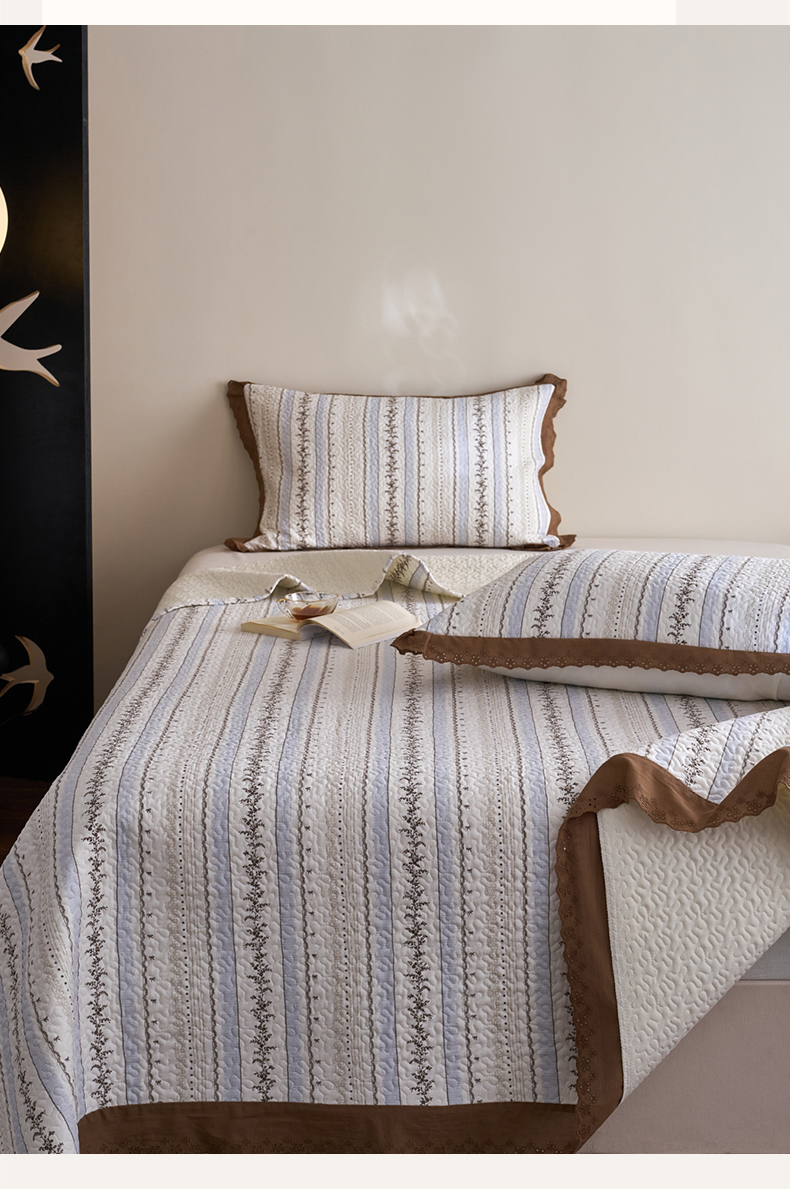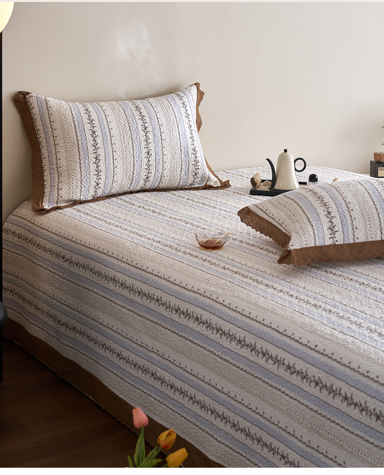 漫仙阁家纺 2025新款热卖法式花边款加厚床盖床盖三件套 白兰地
