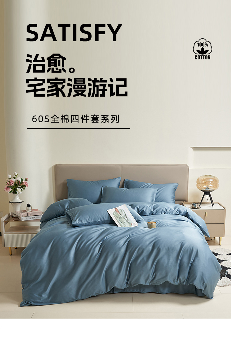 当前位置: 91家纺网 > 商品网购 > 床品套件 > 四件套 > 全棉普通四件套 > 暖芯家纺 2025新款60S黑标全棉四件套 北欧蓝