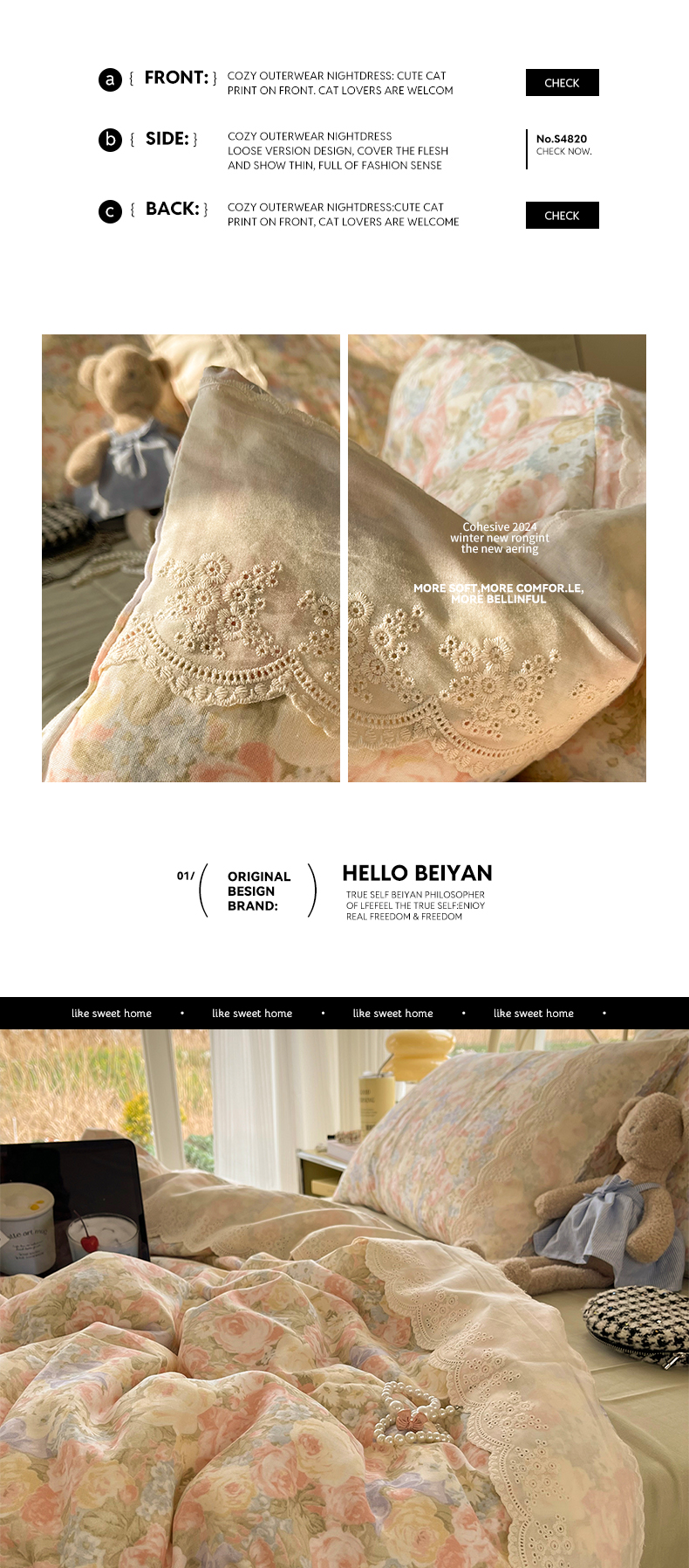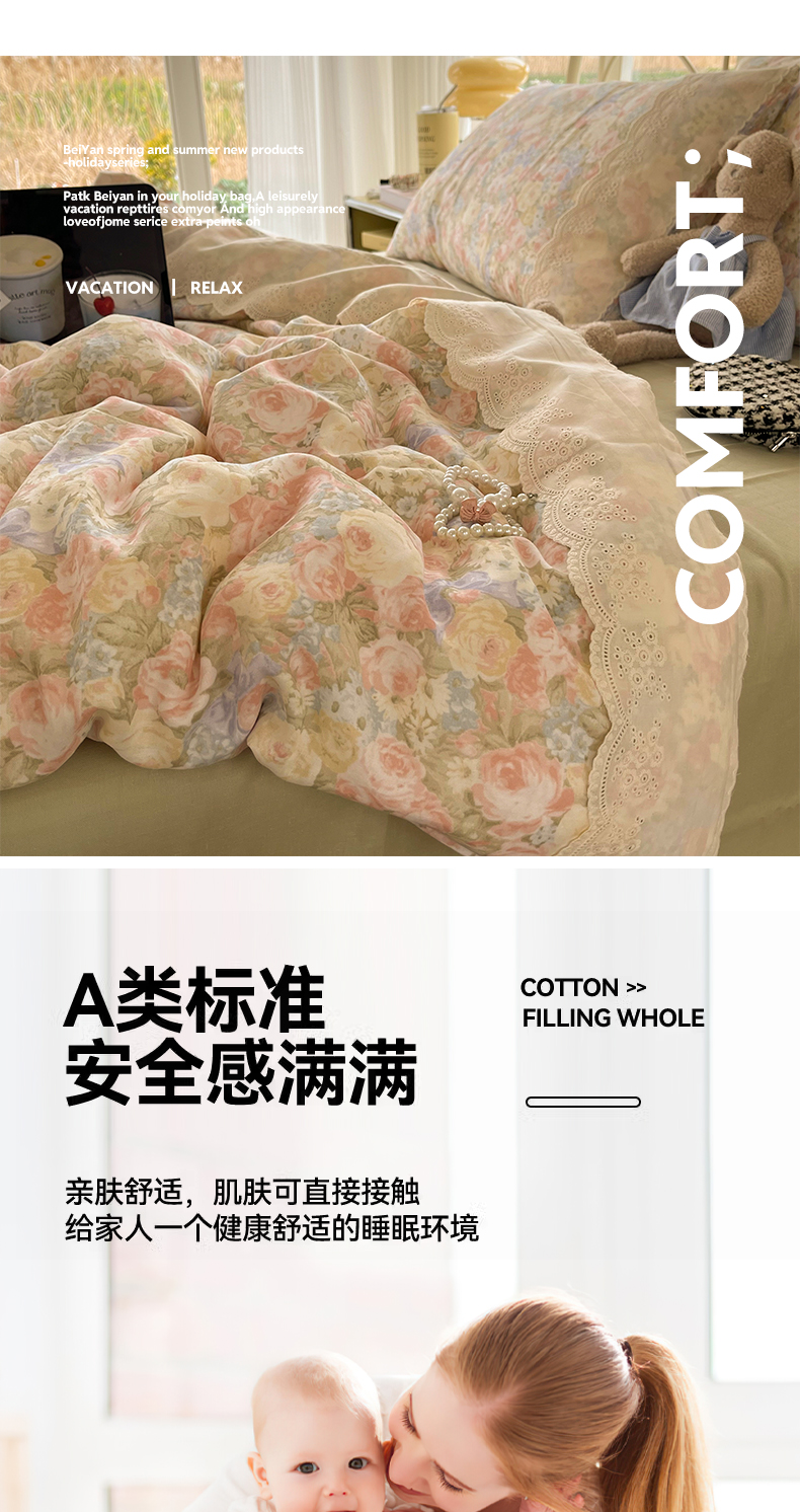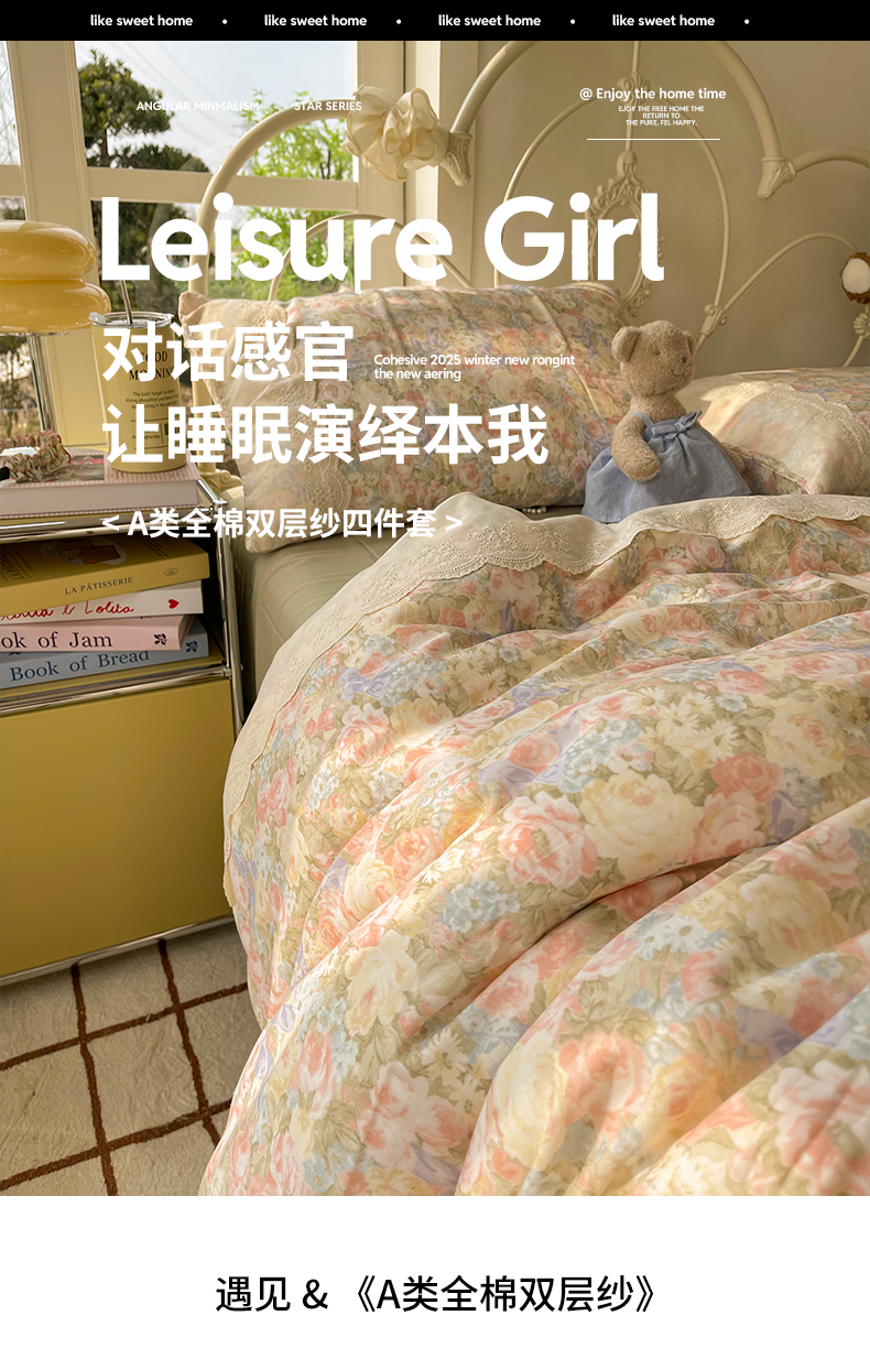 (总)HL原创 2025法式花边油画风全棉双层纱四件套,半岛花园,半塘小姐,茶野,粉妆,花涧,居里夫人,薰衣草庄园,油画小兔,云水谣