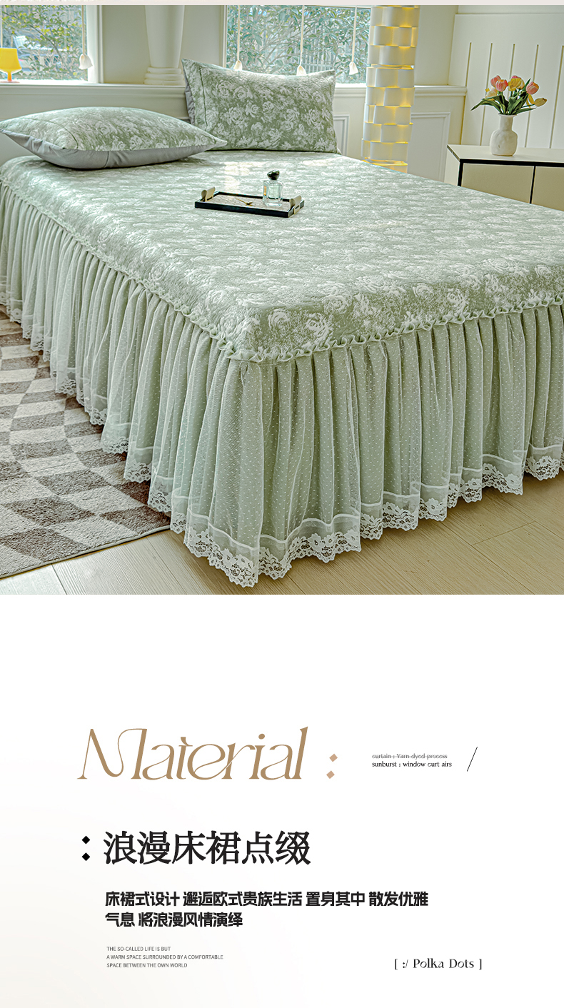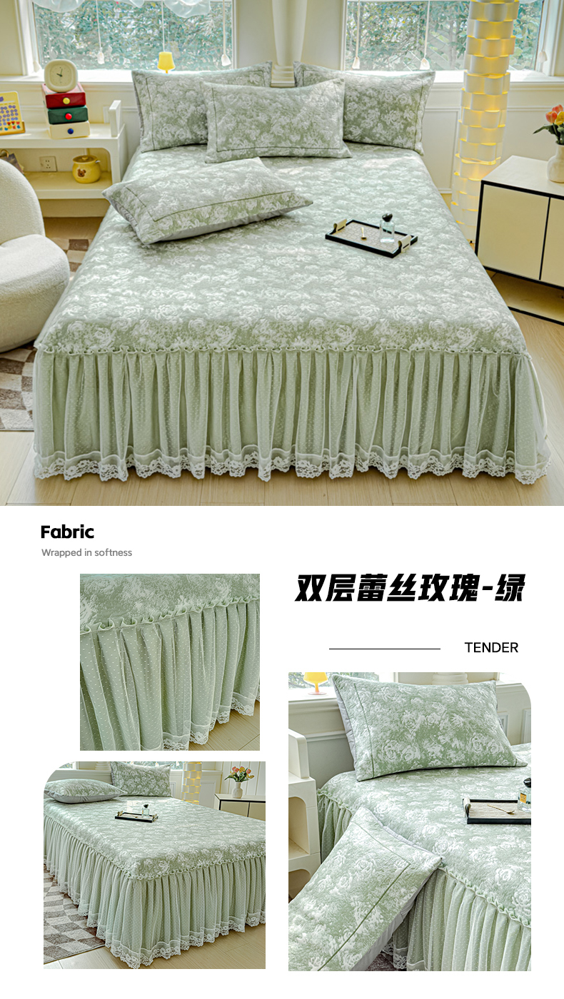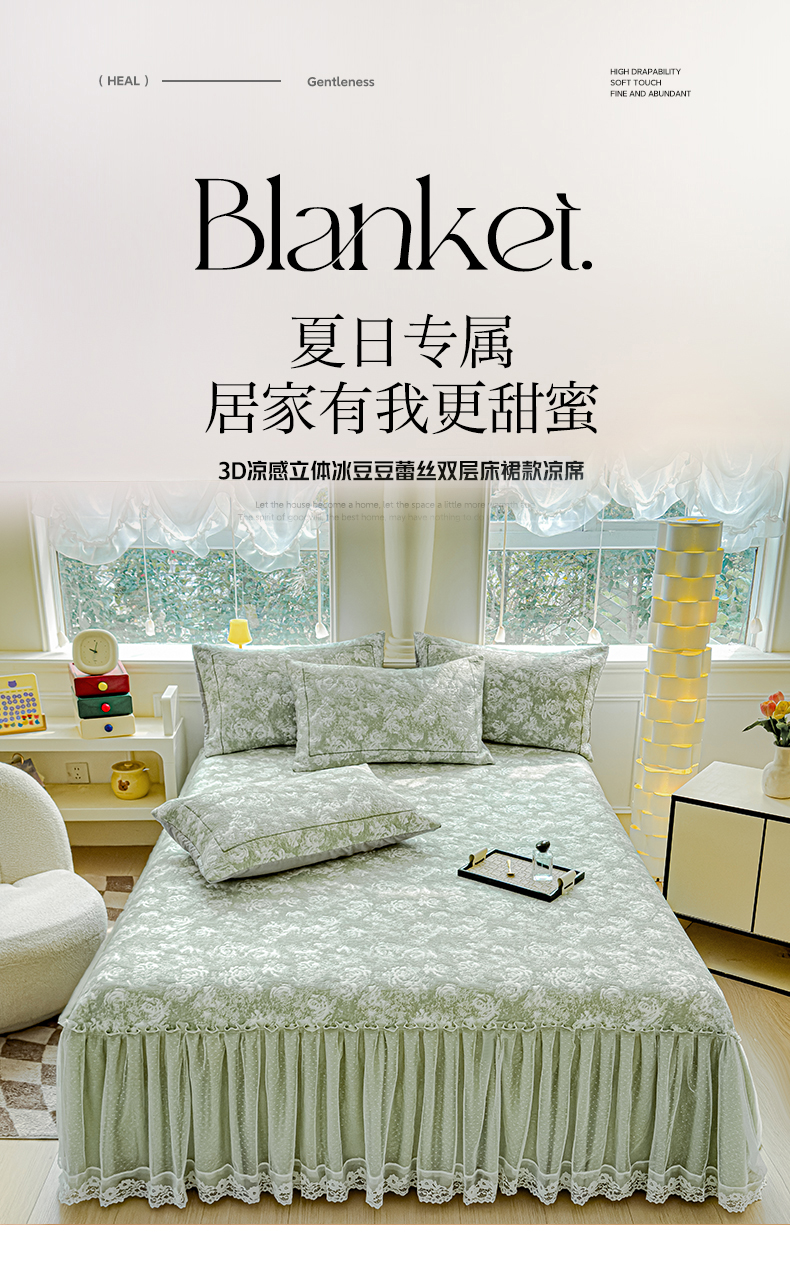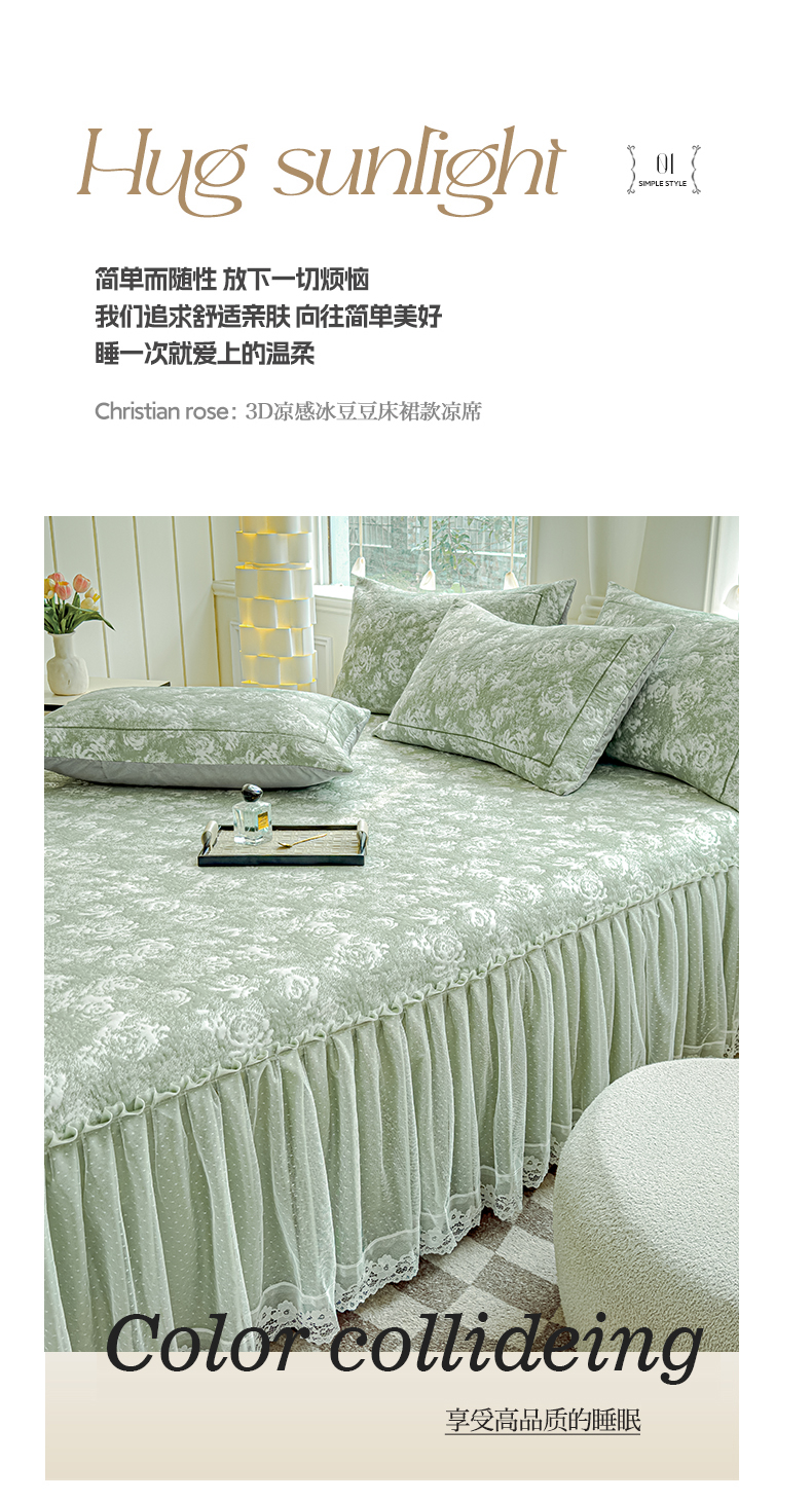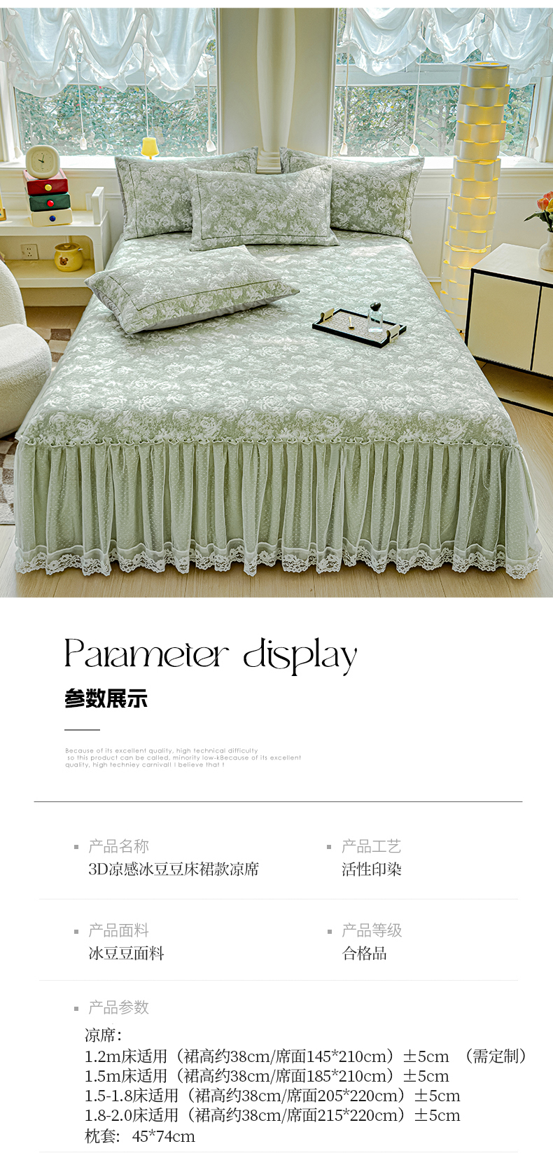 当前位置: 91家纺网 > 商品网购 > 床上用品 > 凉席 > 其他凉席 > 伊而梦蚊帐 2025新款A类3D立体冰豆豆双层蕾丝玫瑰床裙款凉席 双层蕾丝玫瑰-绿三件套