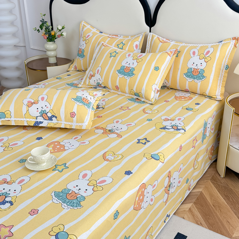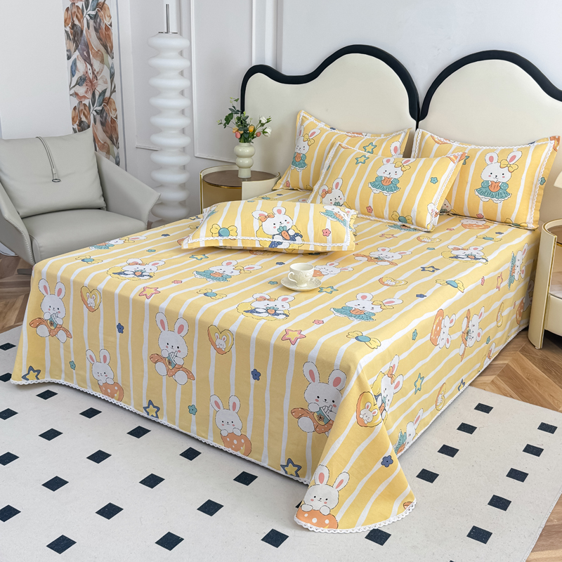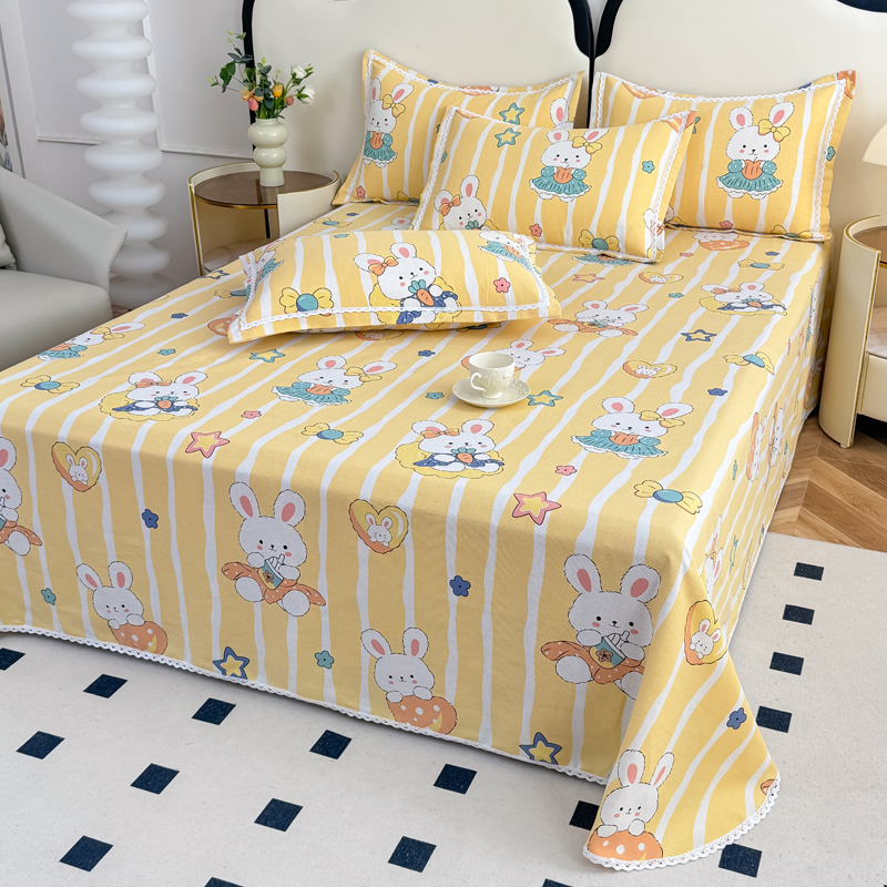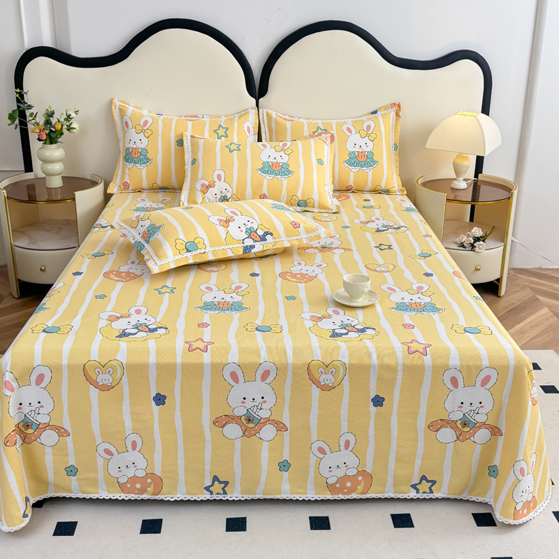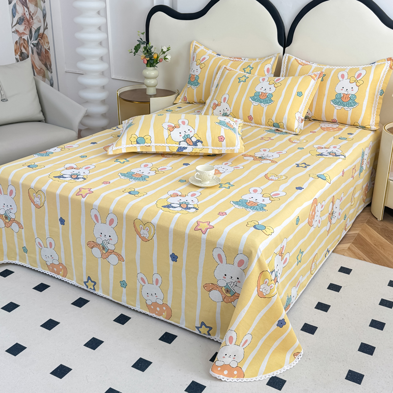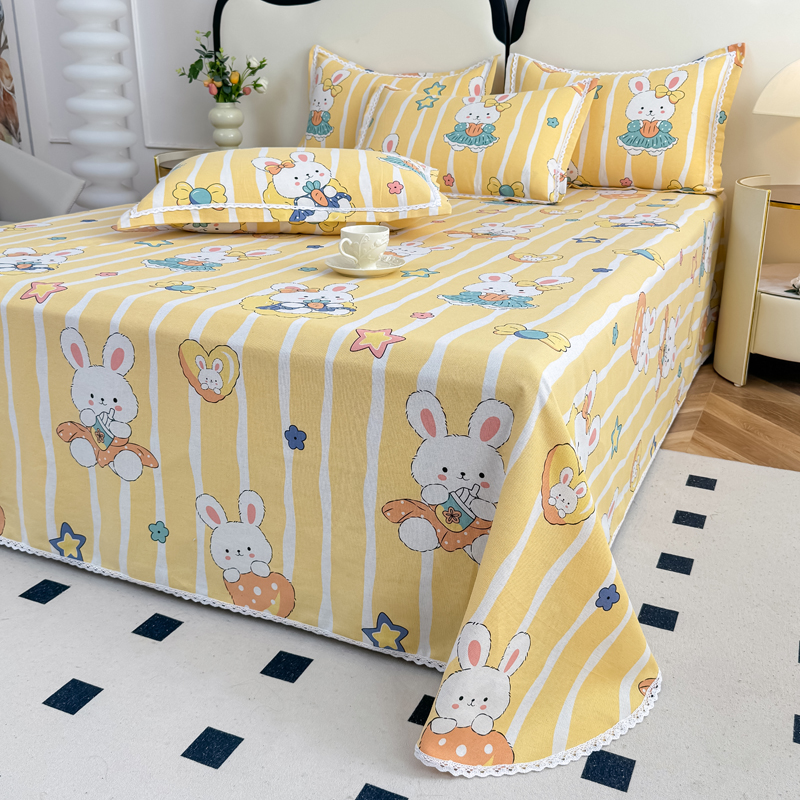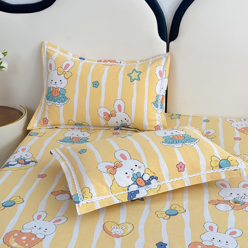 商品名称:仟网汇 2025全棉老粗布蕾丝花边三件套(无纺布手提包装) 橙心兔