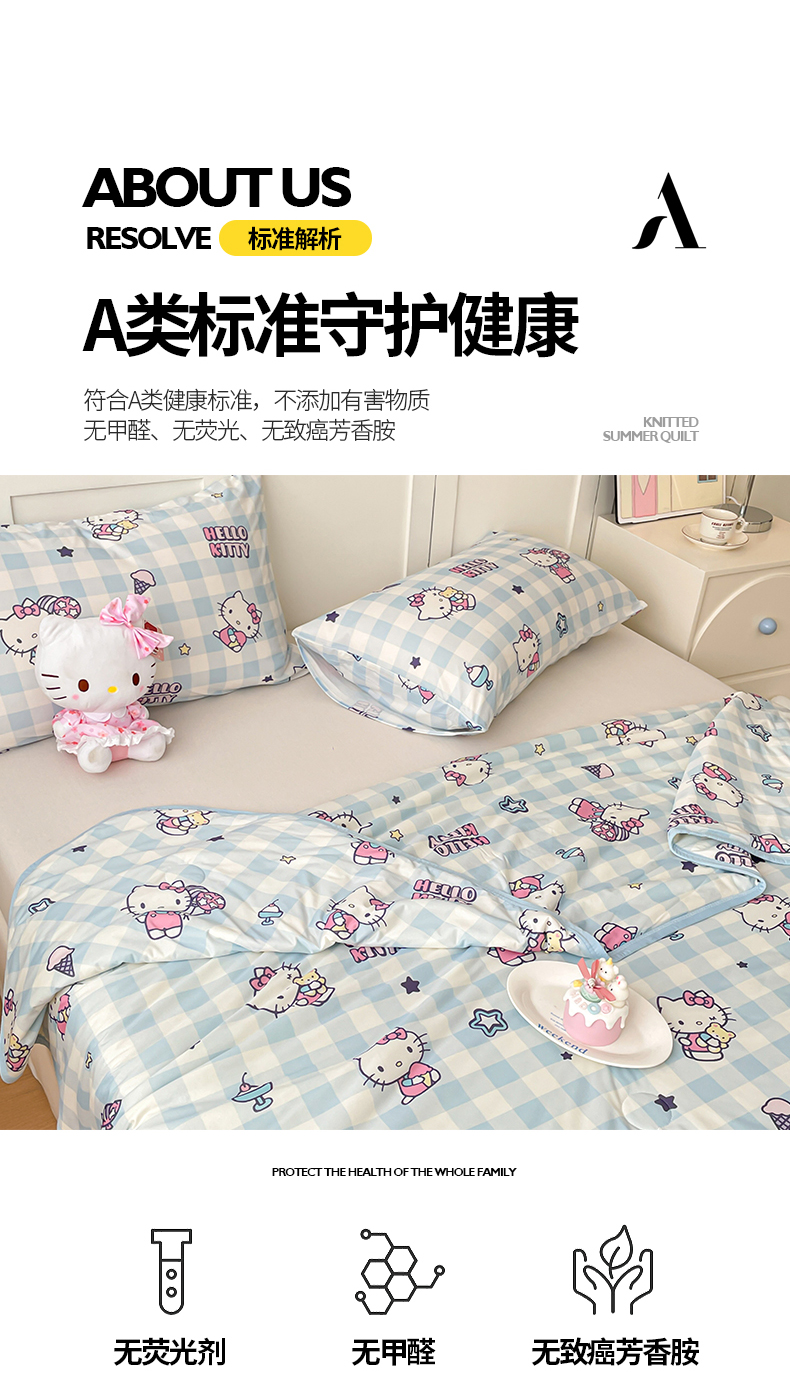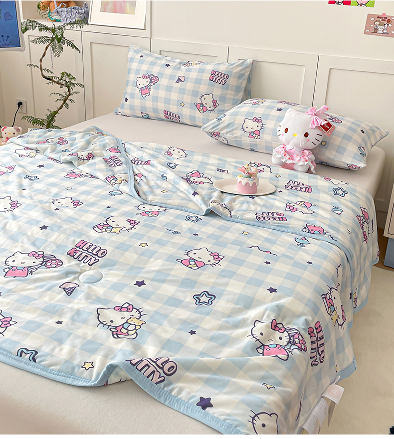 桃子家居 2025新款A类三丽鸥正版授权高品质牛奶丝软糯针织棉大豆夏被系列 针织棉三丽鸥-蓝格kitty