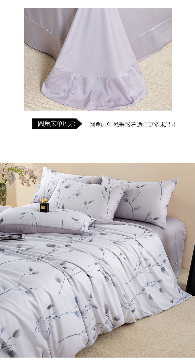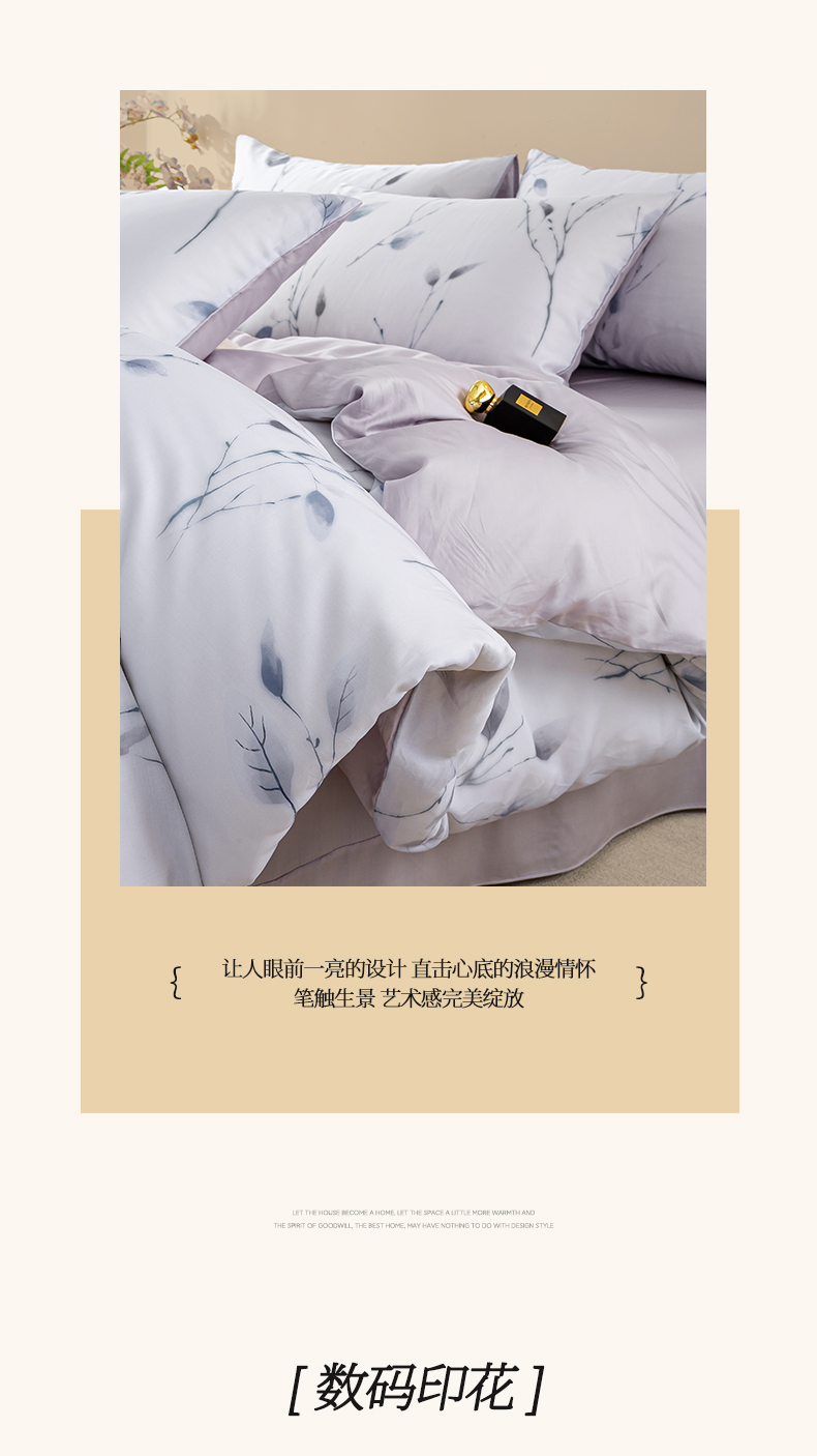 商品名称:帅露家纺 2025新款50S莱赛尔天丝印花四件套 静谧-灰