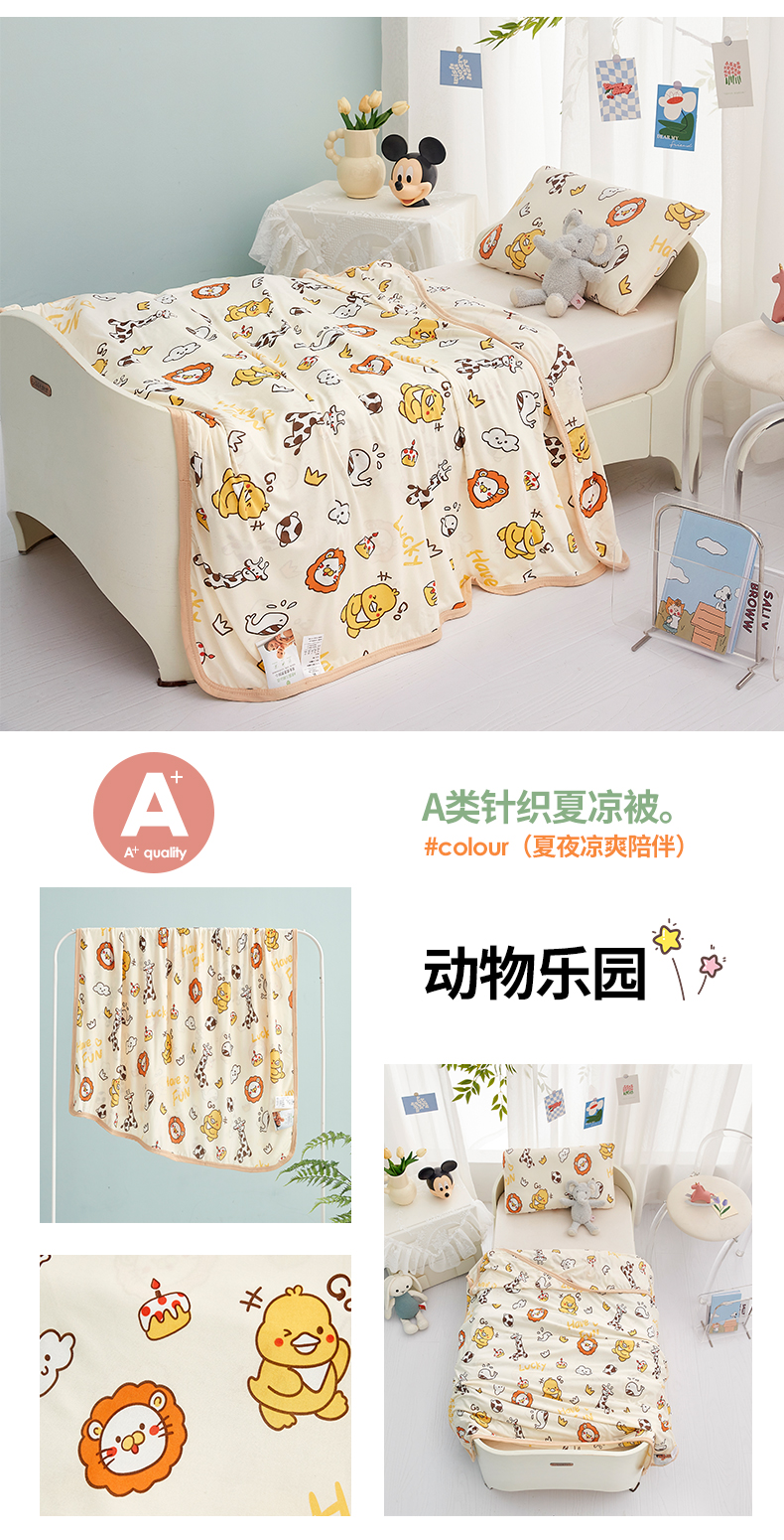 丝涟家居 2025新款A类双面针织棉卡通小清新滚绳工艺夏被动物世界,动物世界