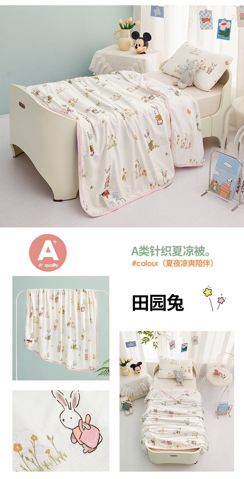 丝涟家居 2025新款A类双面针织棉卡通小清新滚绳工艺夏被田园兔,田园兔