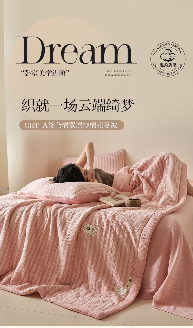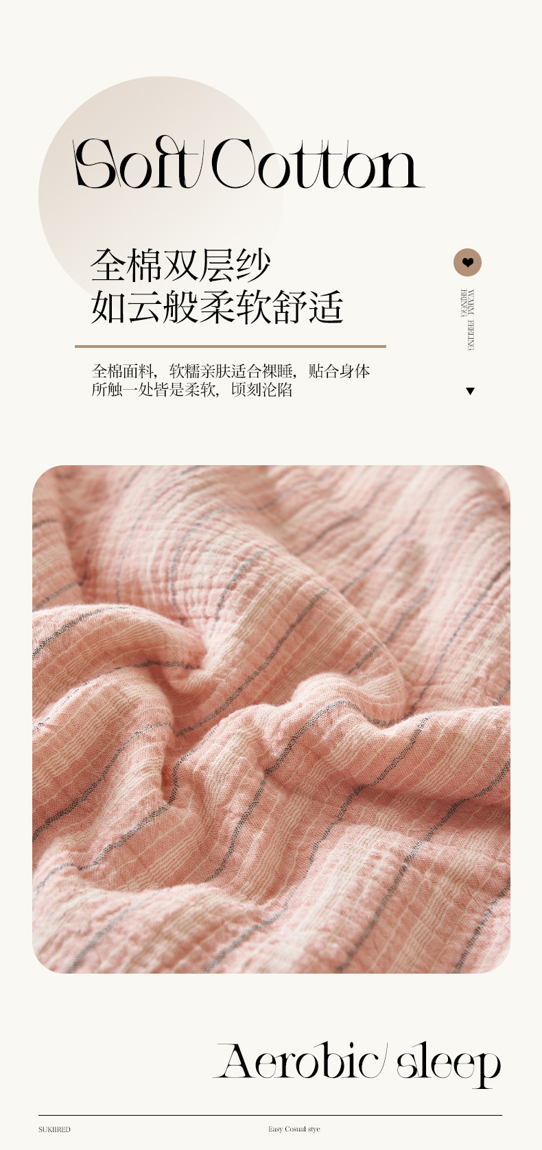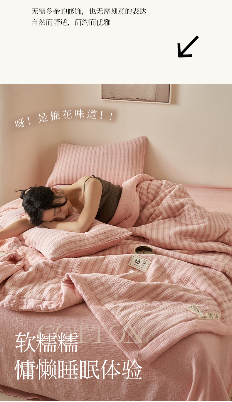 当前位置: 91家纺网 > 商品网购 > 床品套件 > 四件套 > 夏被四件套 > 简如 2025新款A类全棉双层纱皱皱纱夏被四件套-时予系列 时予-奶茶粉