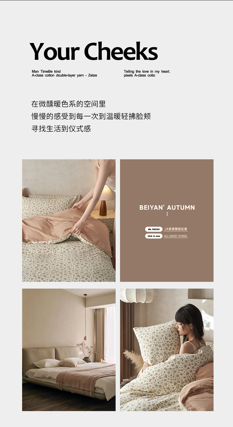 商品名称:千朵森 2025新款高品质ins风A类全棉纯棉双层纱四件套(泽塔斯) 泽塔斯-春日