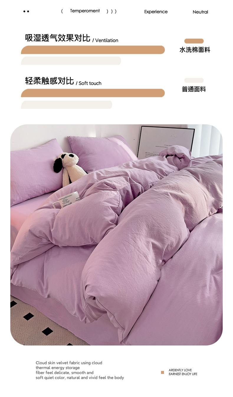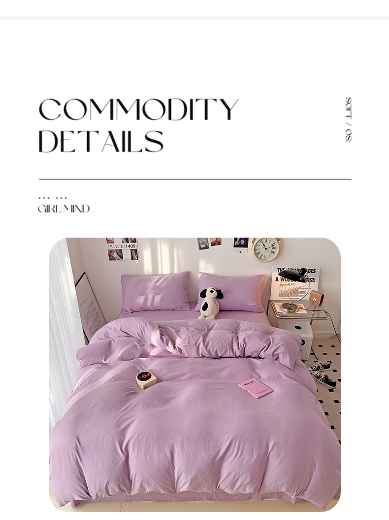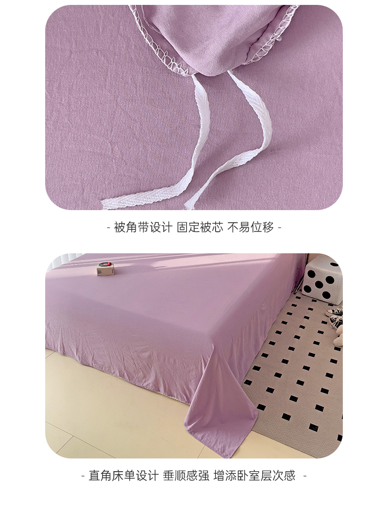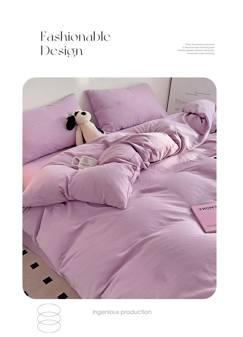 当前位置: 91家纺网 > 商品网购 > 床品套件 > 四件套 > 水洗棉四件套 > 艾特你 2025新款简约纯色水洗棉四件套 优雅紫