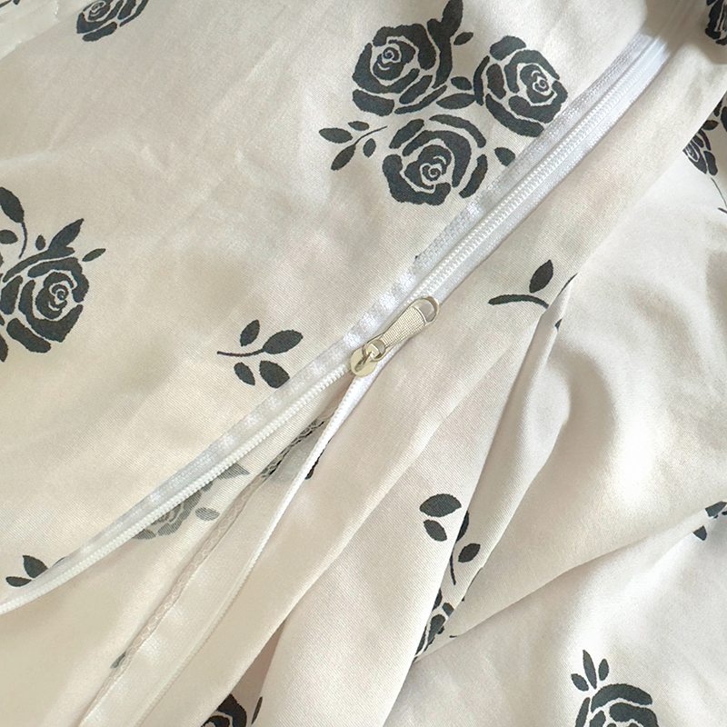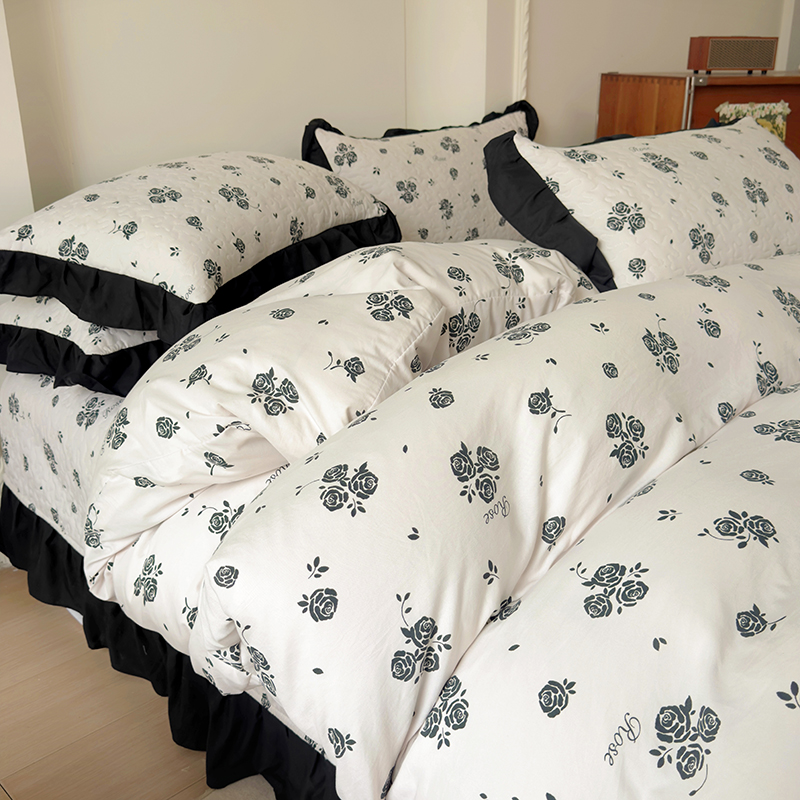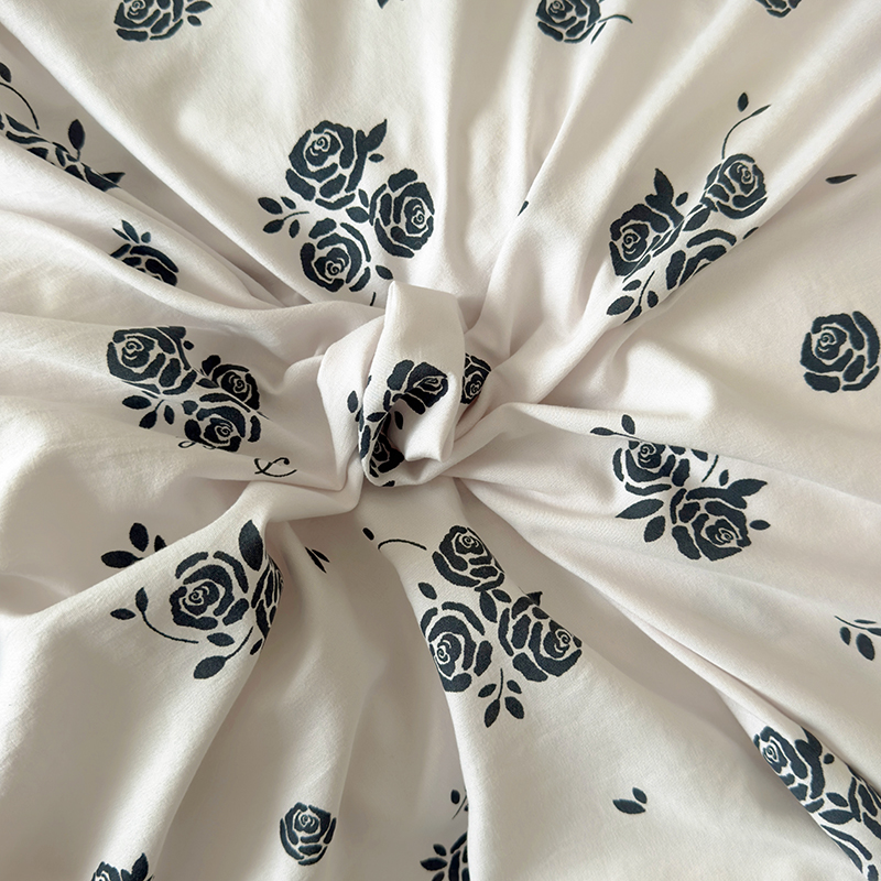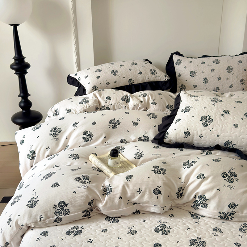 商品名称:韩秀家纺 2025新款超柔糯糯水洗棉被套针织双层多层纱单被套 黑白玫瑰