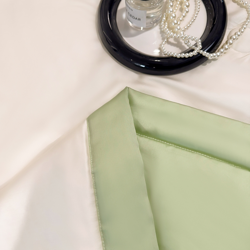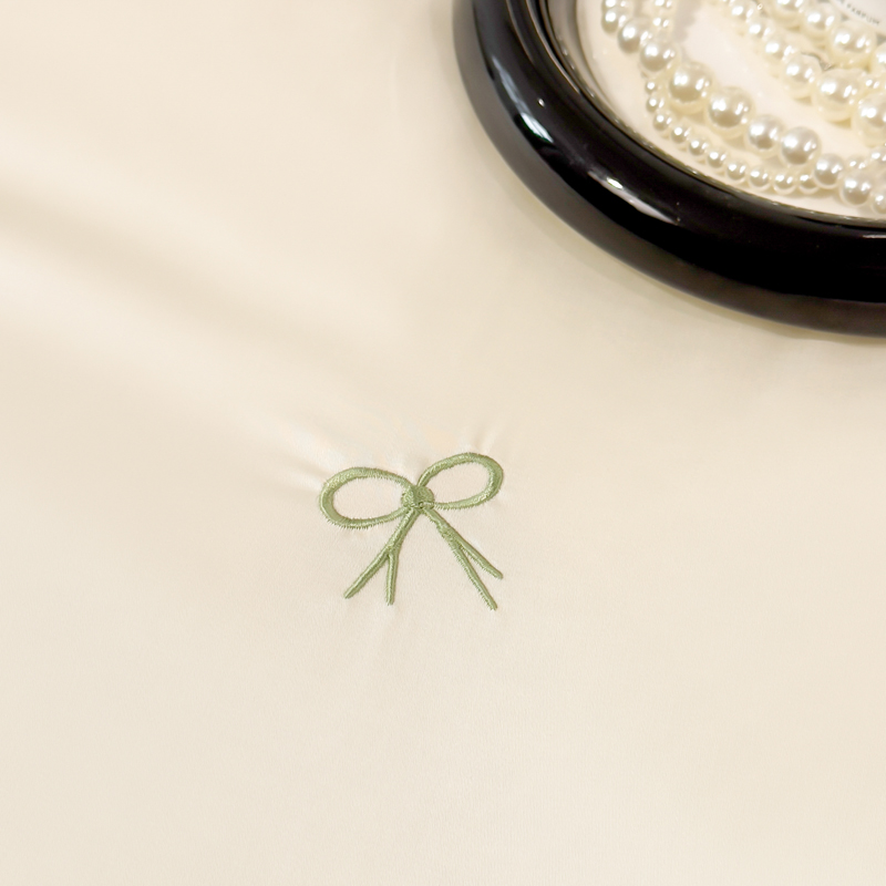 商品名称:2025新款清凉舒适水洗冰丝刺绣夏被四件套 蝴蝶结-奶白绿