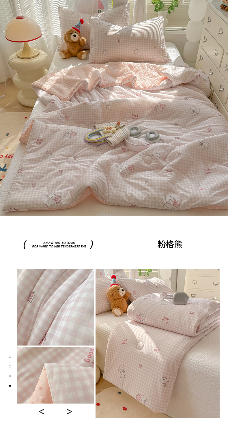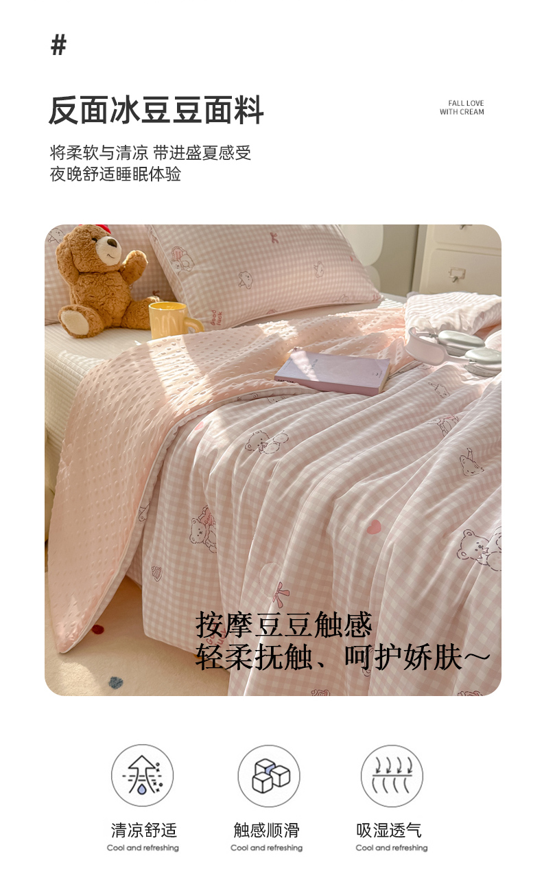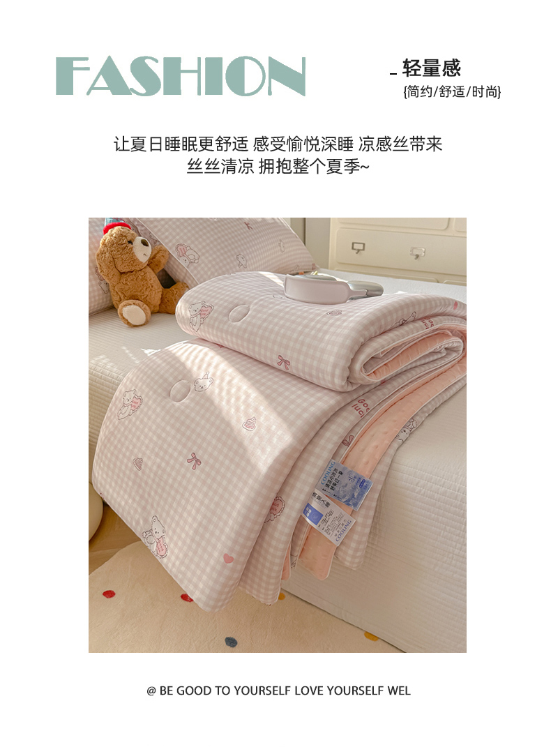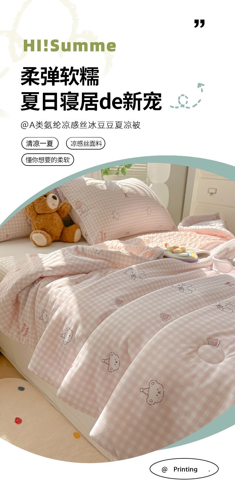 商品名称:十里居 2025新款氨纶凉感丝冰豆豆夏凉被 粉格熊