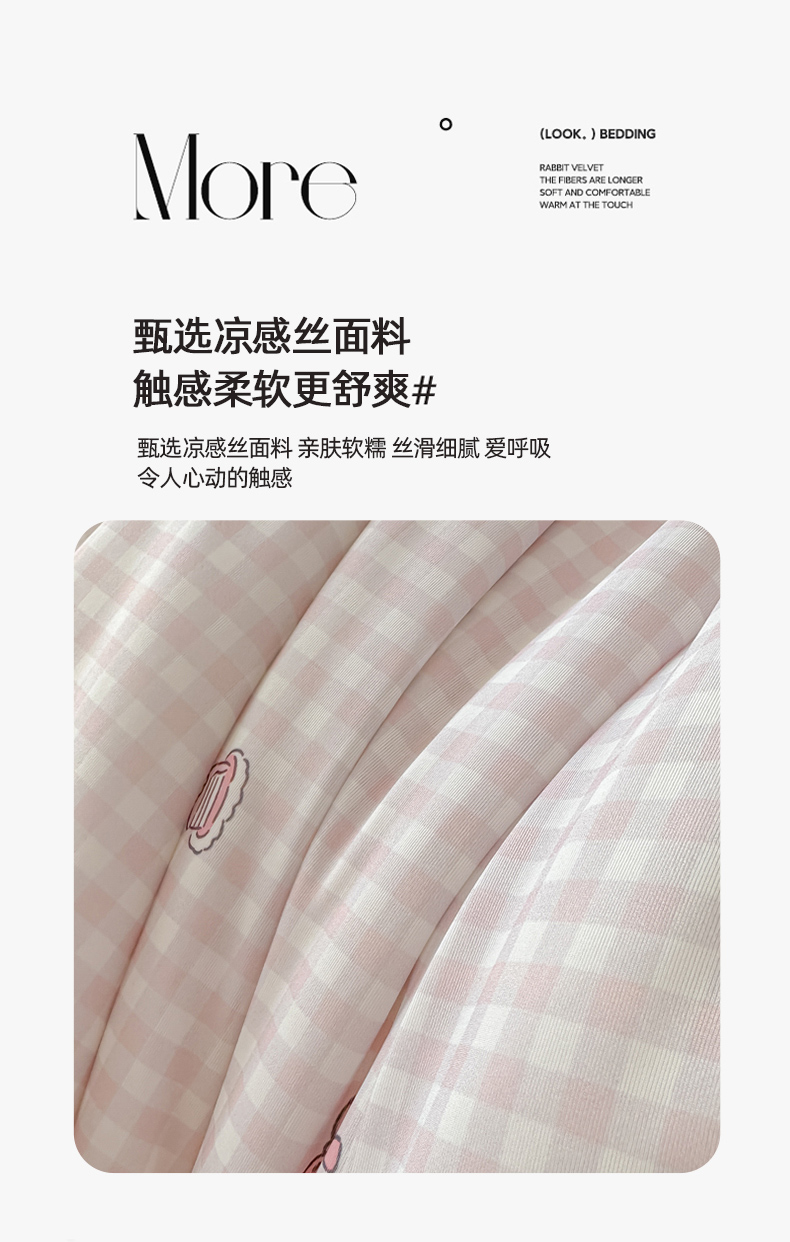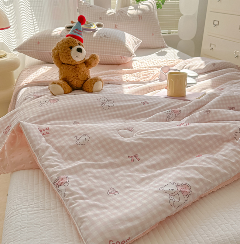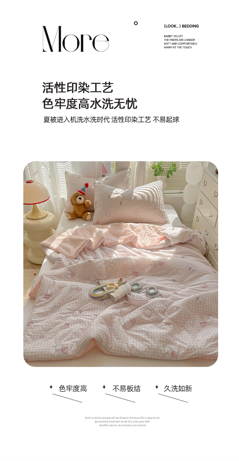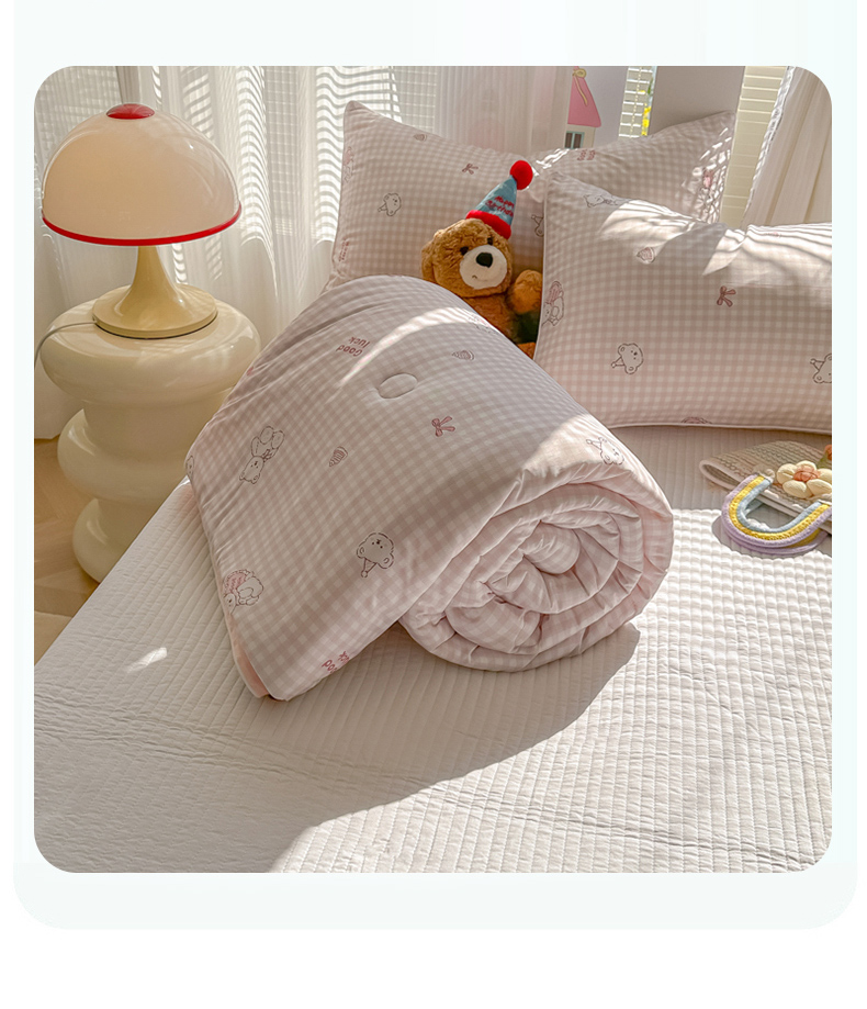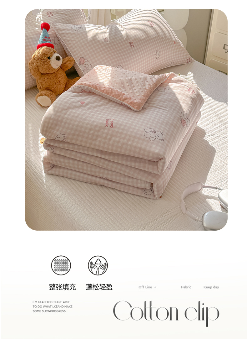 商品名称:十里居 2025新款氨纶凉感丝冰豆豆夏凉被 粉格熊