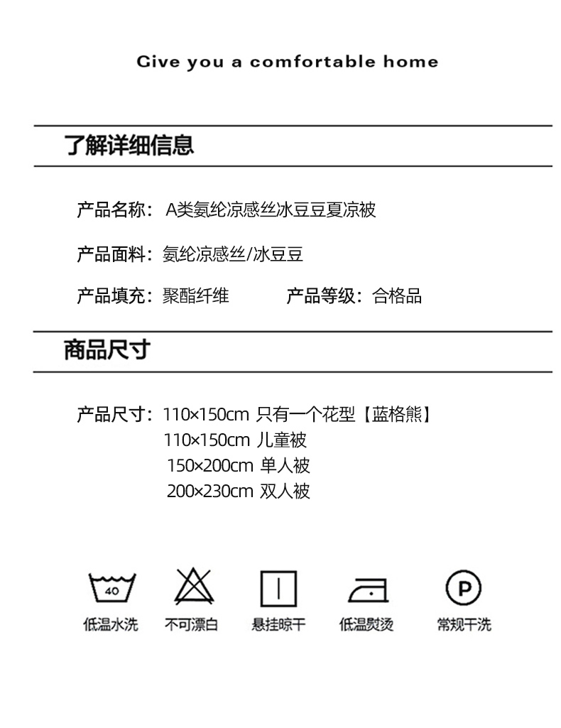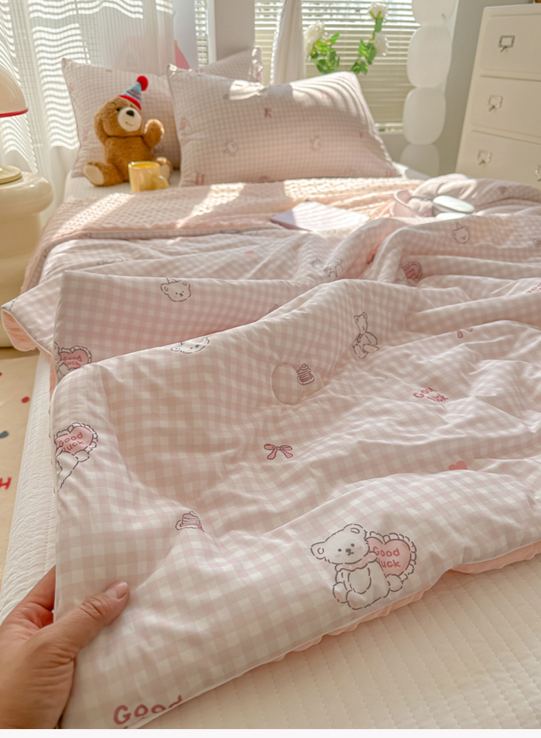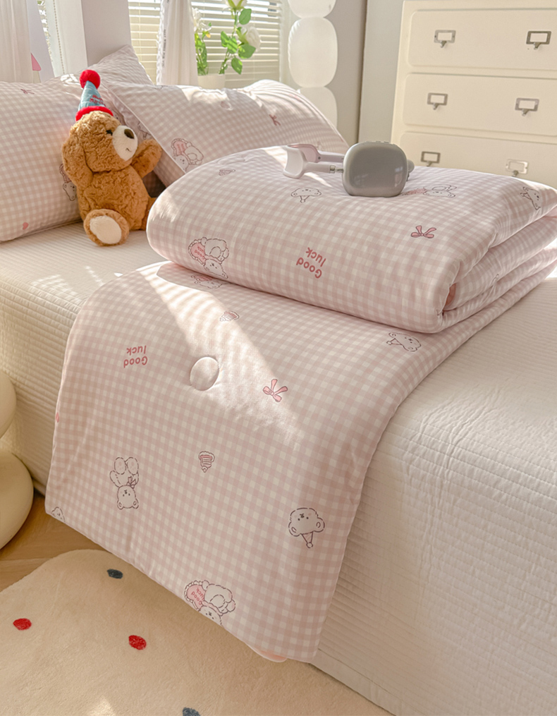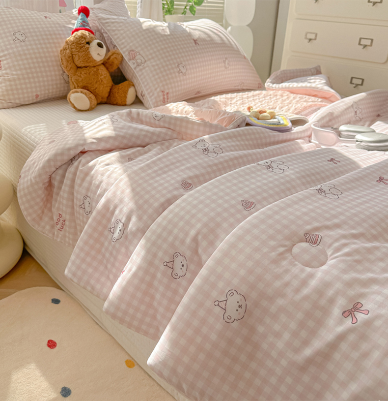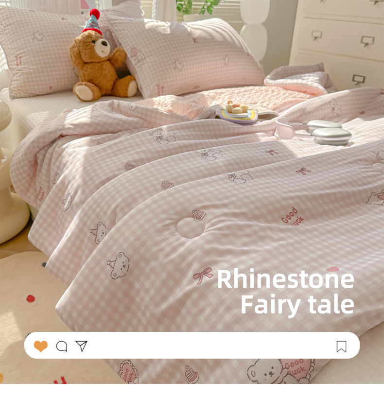 商品名称:十里居 2025新款氨纶凉感丝冰豆豆夏凉被 粉格熊