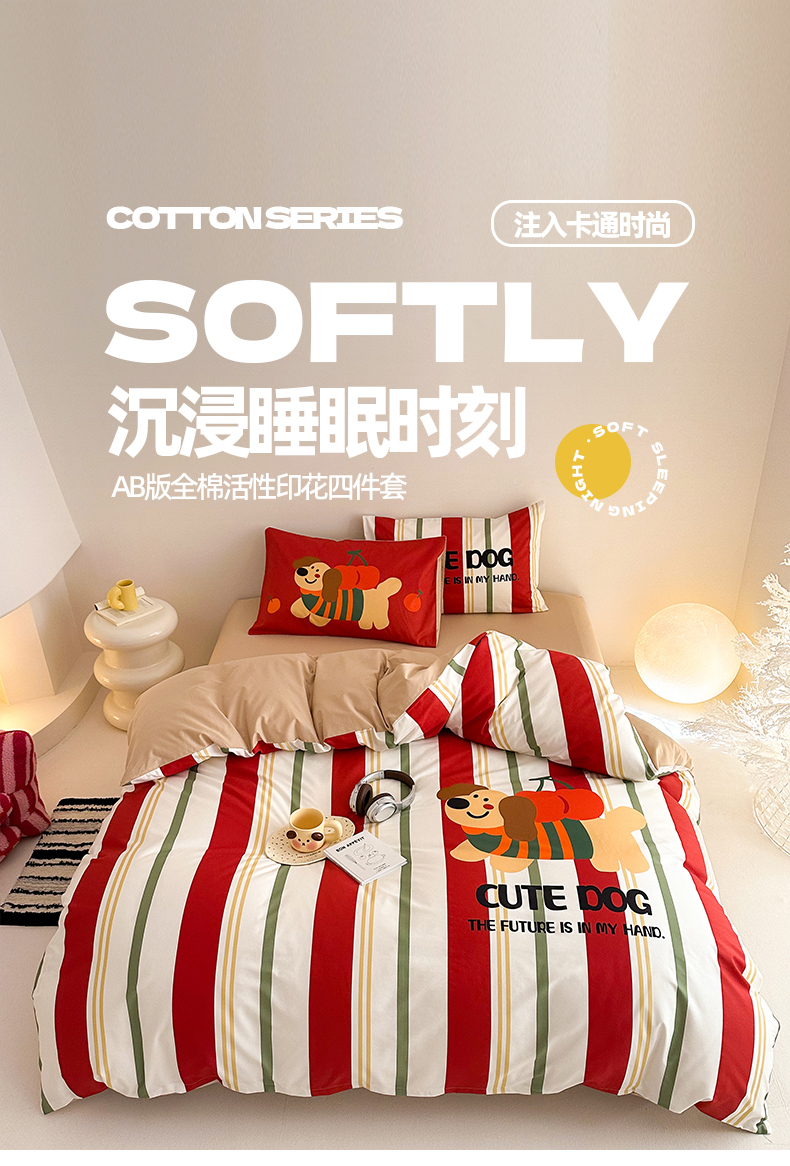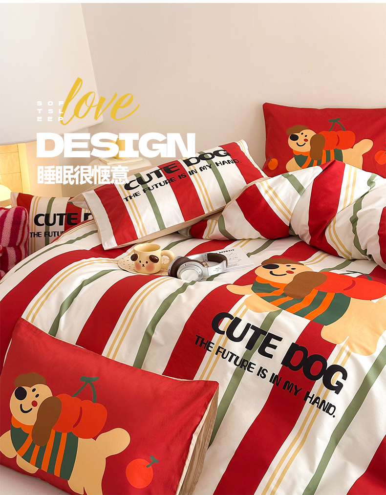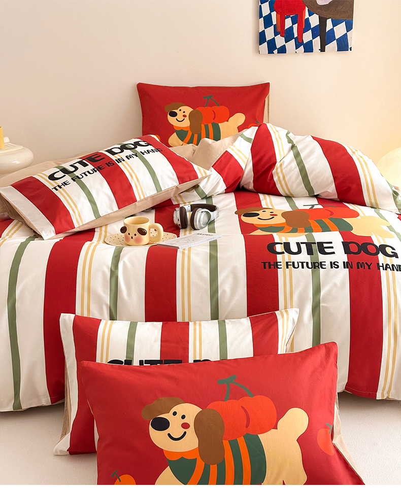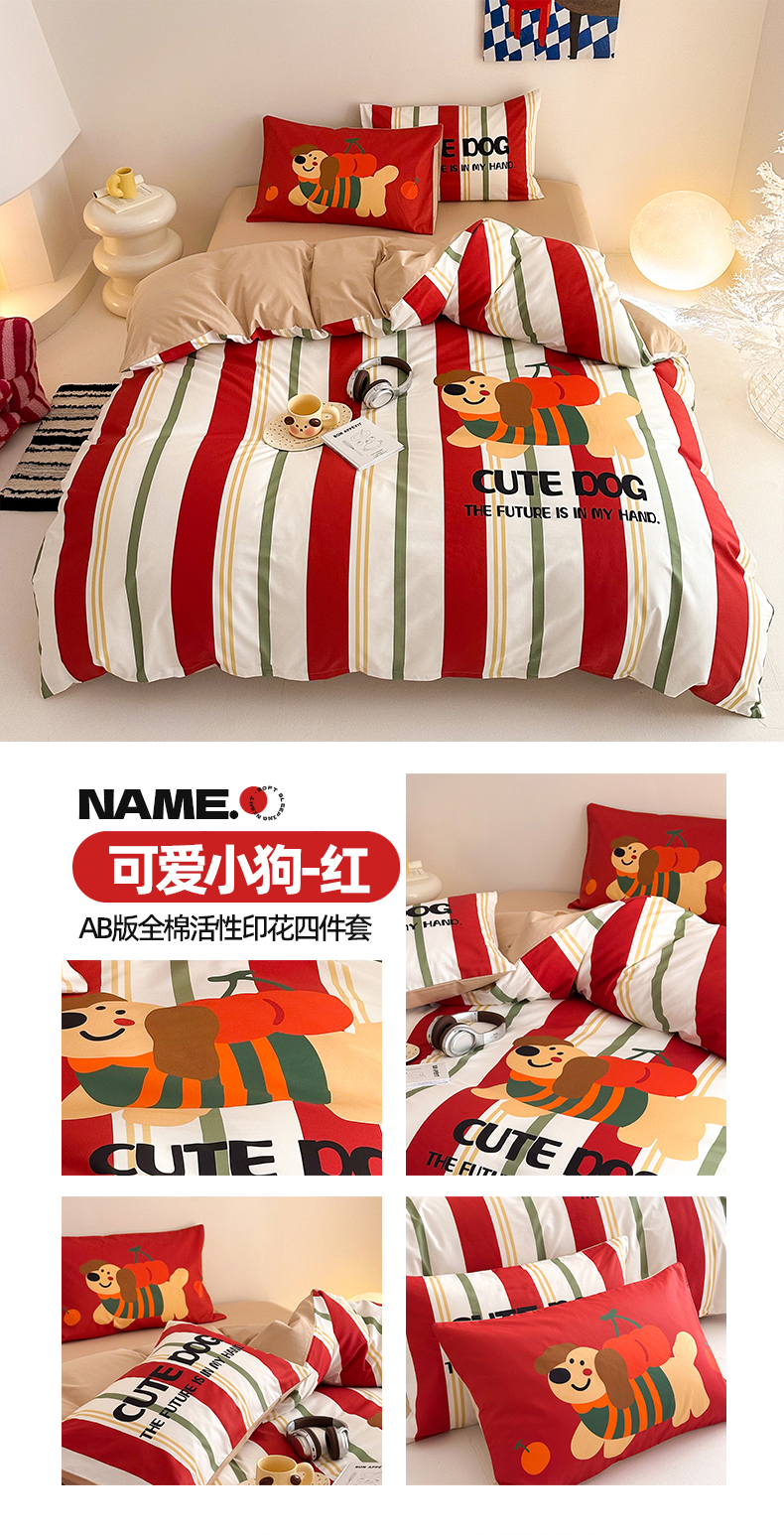 当前位置: 91家纺网 > 商品网购 > 床品套件 > 四件套 > 全棉普通四件套 > 2025新款全棉大版卡通数码印花纯棉四件套 可爱小狗(红)