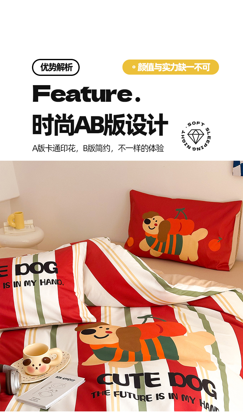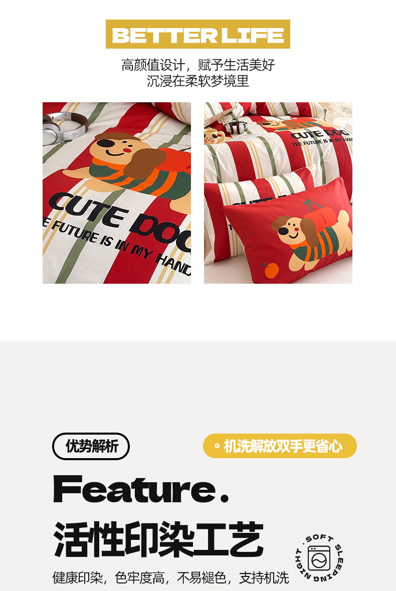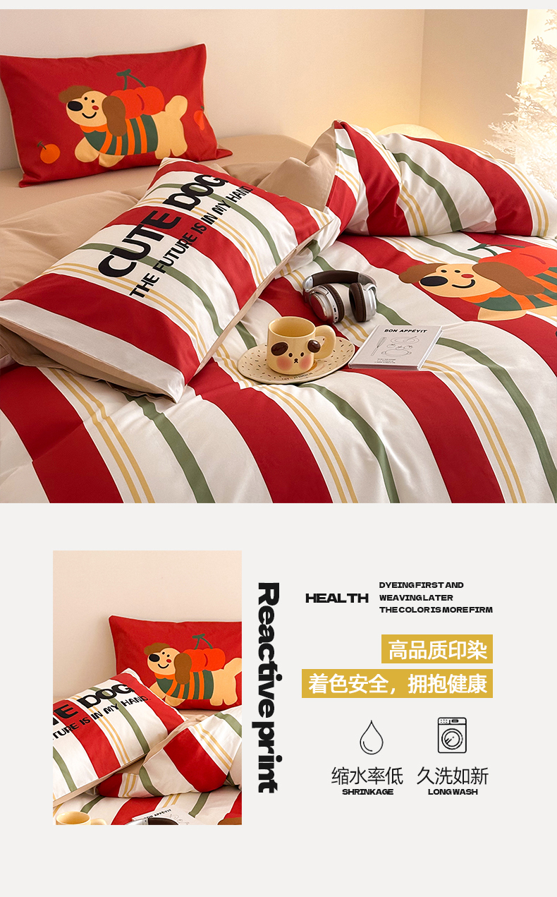 当前位置: 91家纺网 > 商品网购 > 床品套件 > 四件套 > 全棉普通四件套 > 2025新款全棉大版卡通数码印花纯棉四件套 可爱小狗(红)