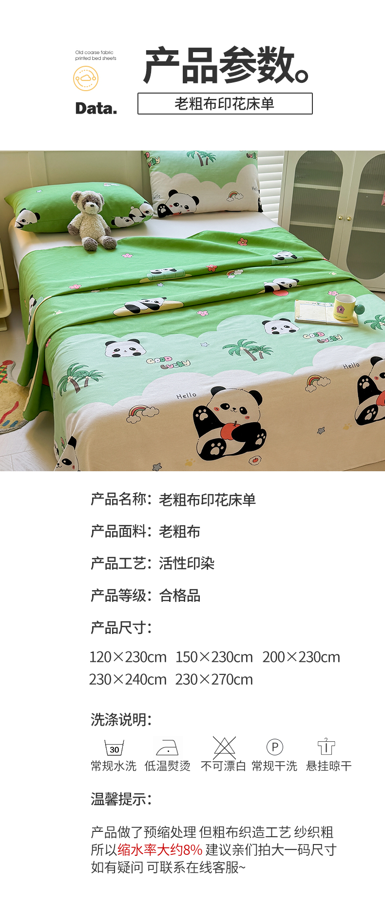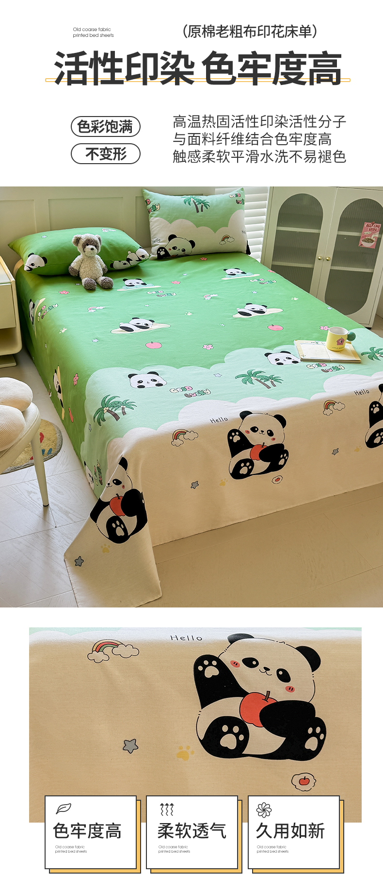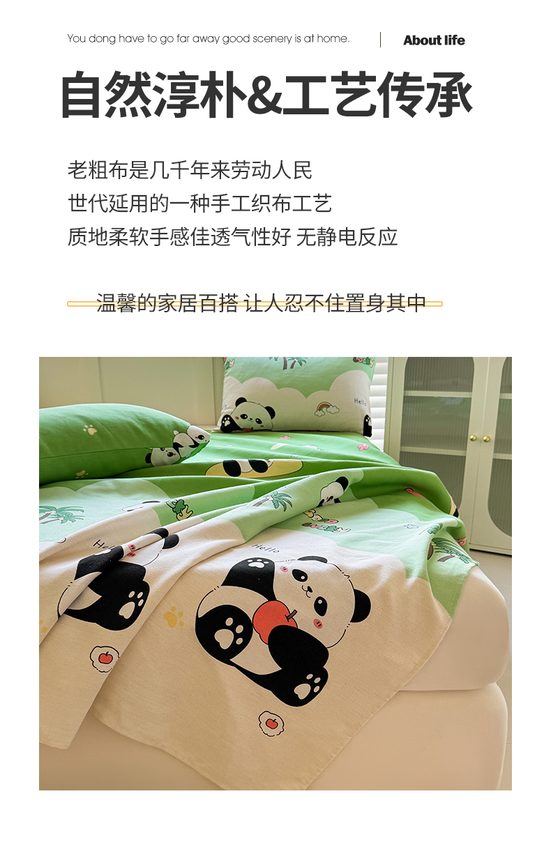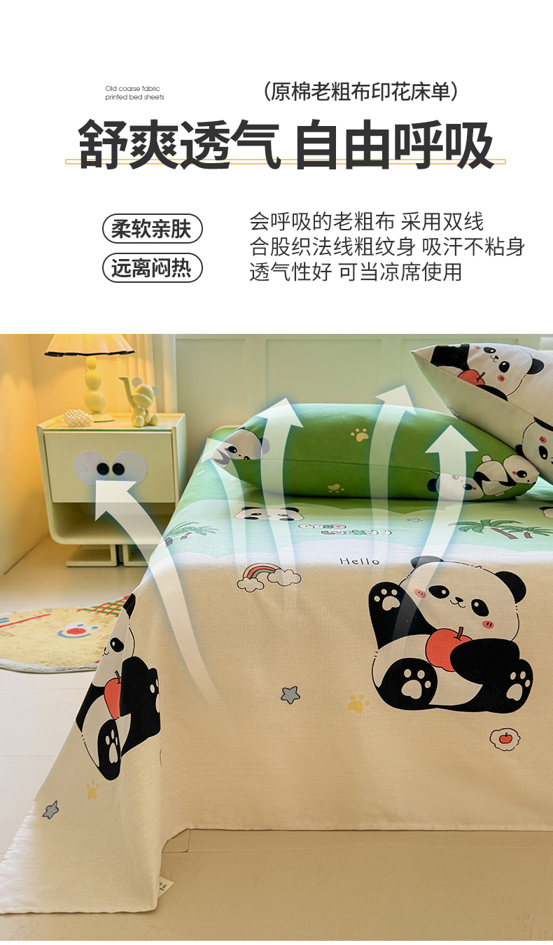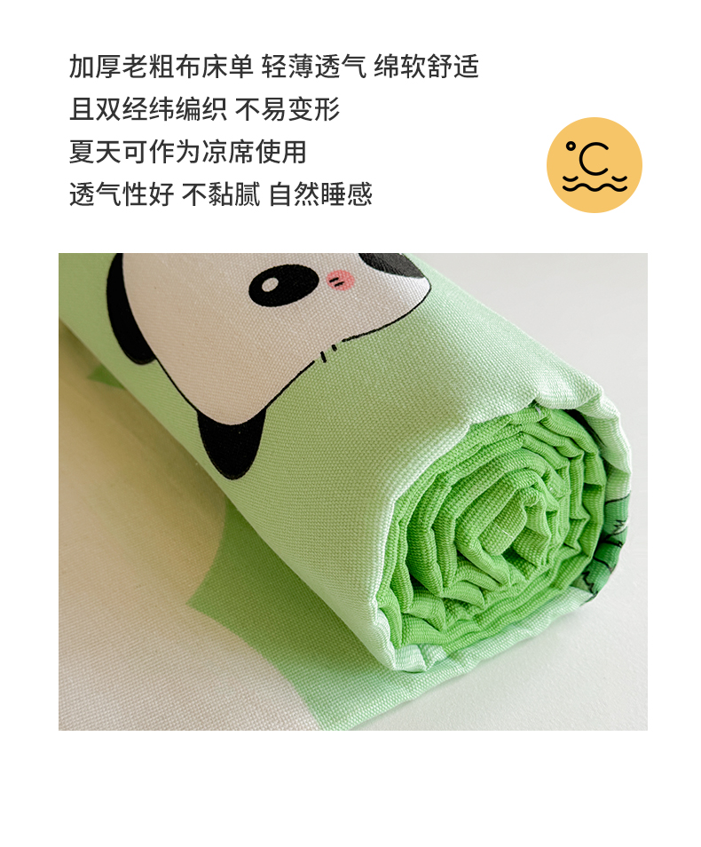 • 91家纺网 家纺一手货源 找家纺 晓时候 2025原棉老粗布床单凉席三件套软凉席子单床单 熊猫假日