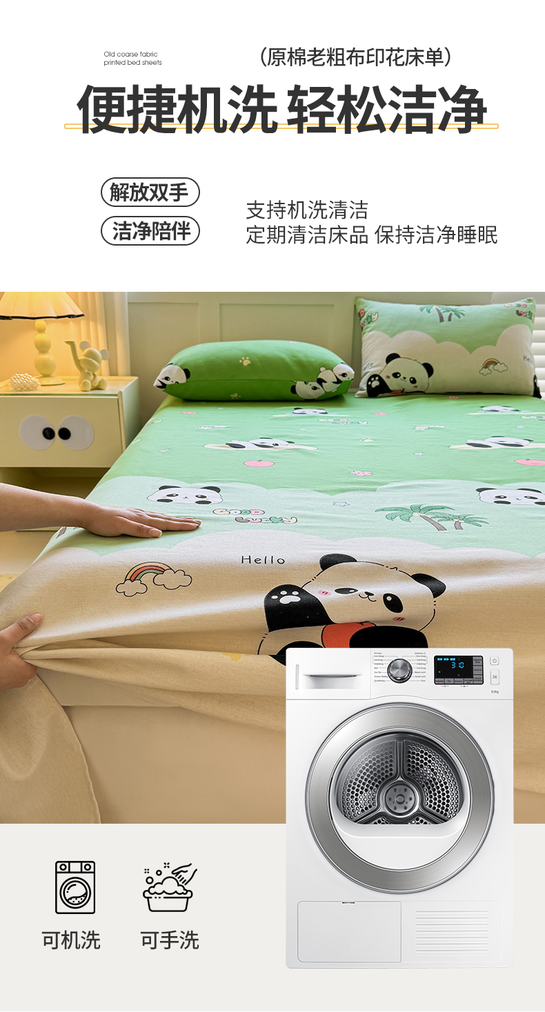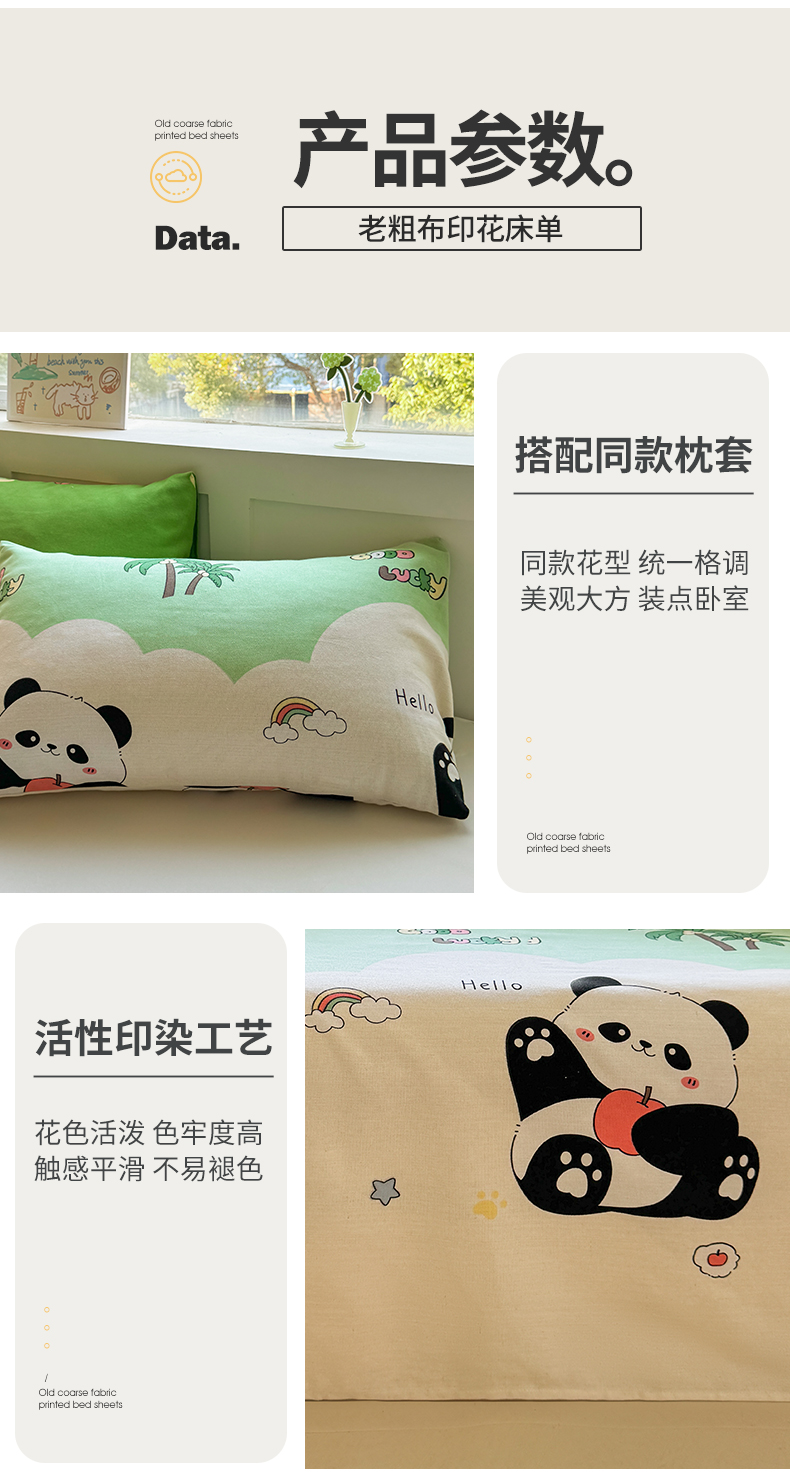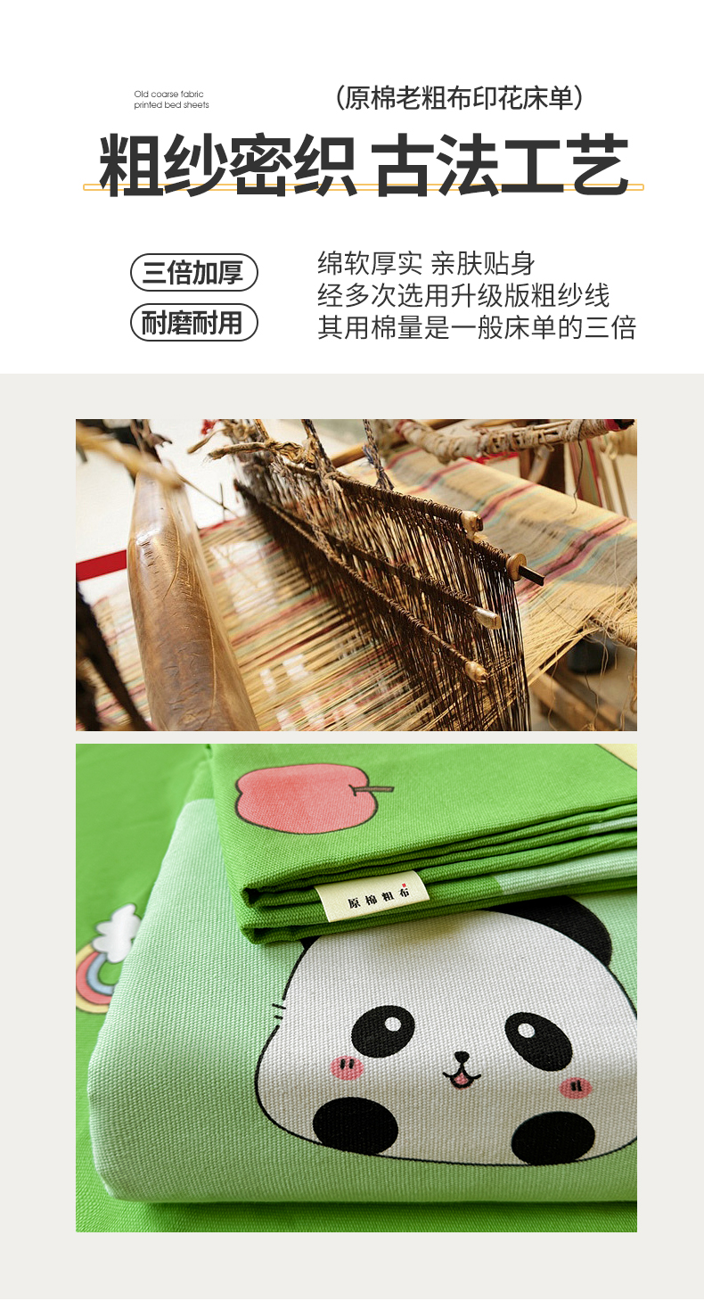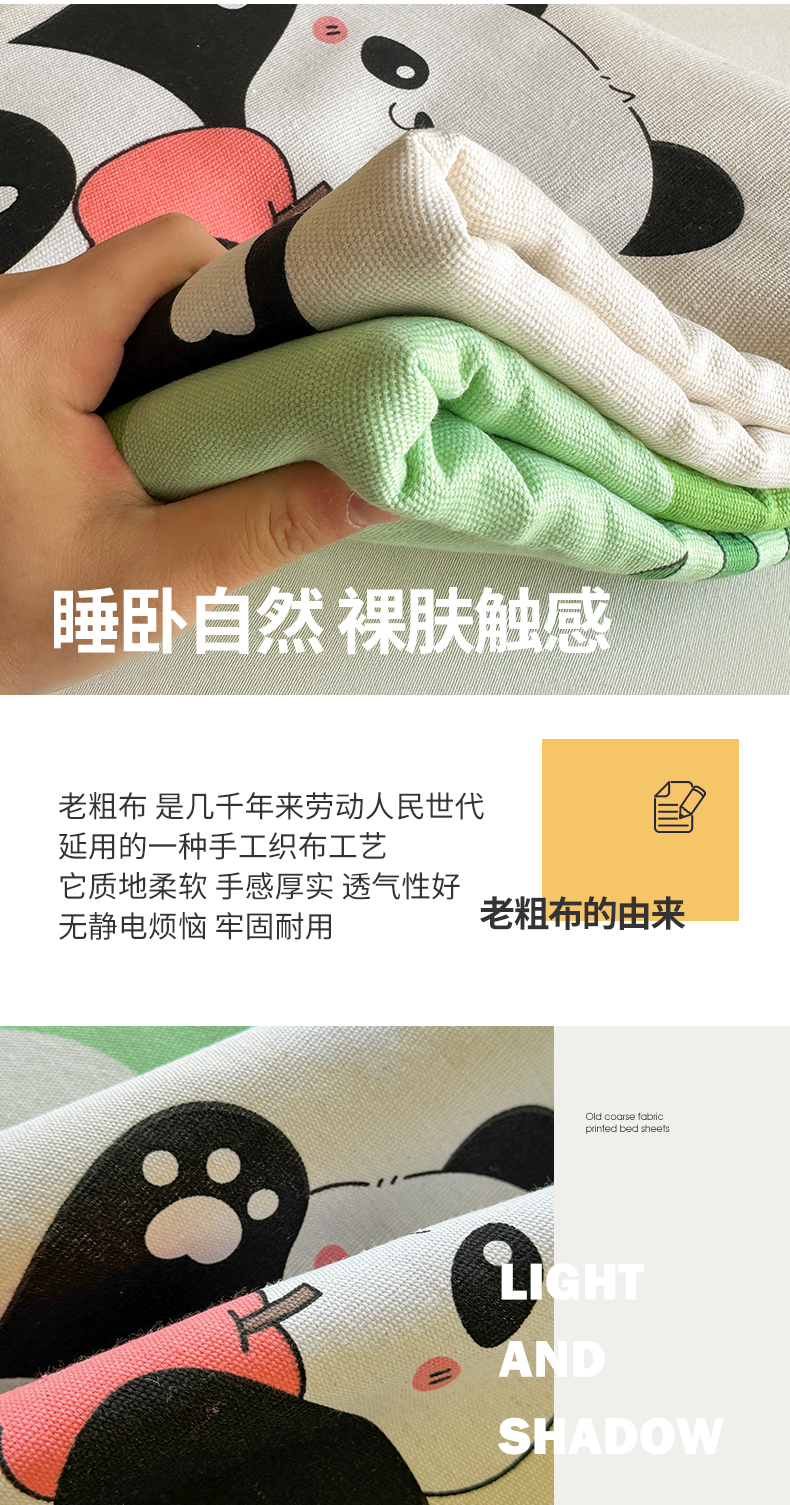 • 91家纺网 家纺一手货源 找家纺 晓时候 2025原棉老粗布床单凉席三件套软凉席子单床单 熊猫假日