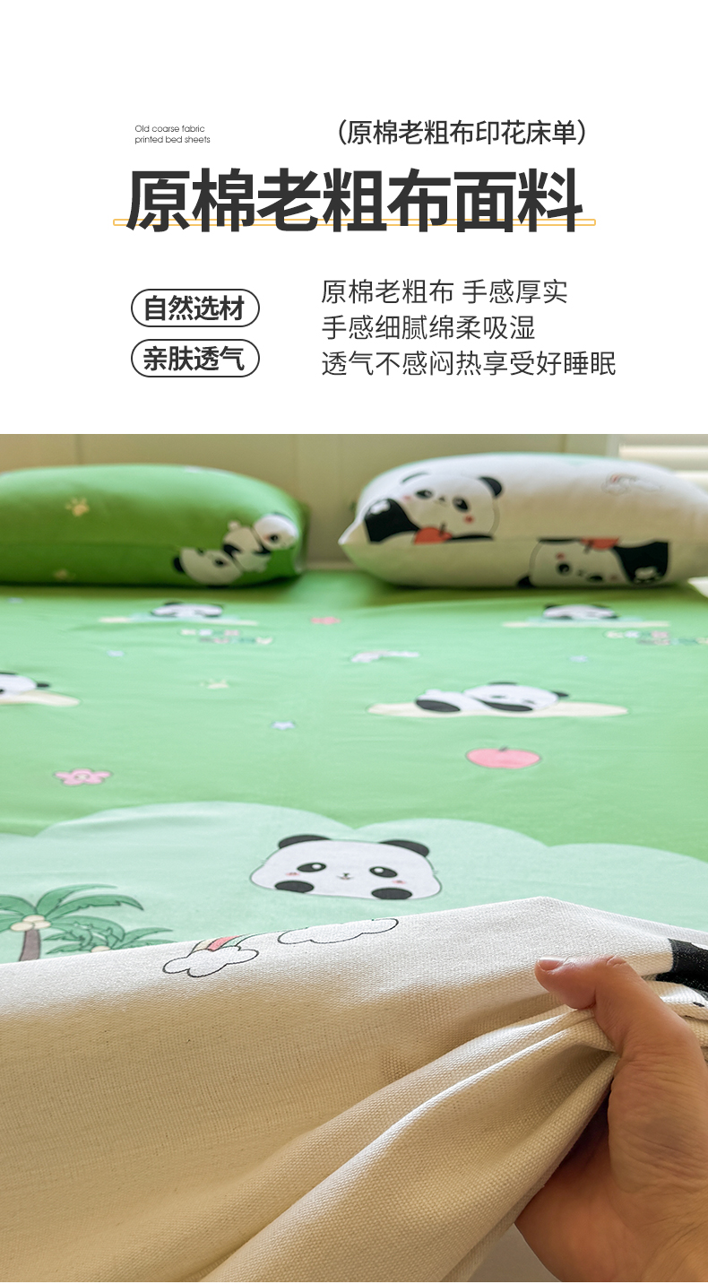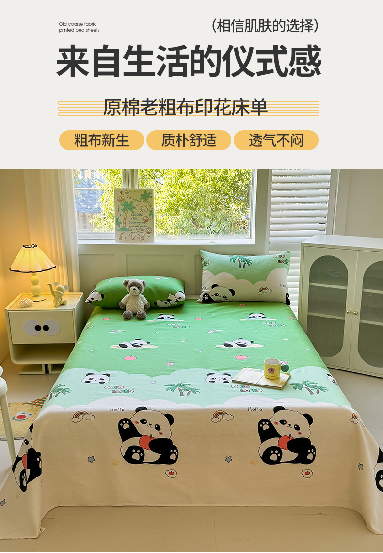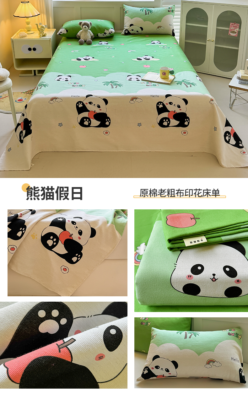 晓时候 2025原棉老粗布床单凉席三件套软凉席子单床单2025新款老粗布床单 熊猫假日
