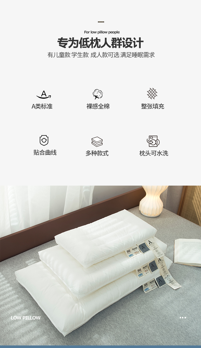 当前位置: 91家纺网 > 商品网购 > 枕头/枕芯/保健枕/颈椎枕 > 麦肯锡2025新款国际婴幼儿级A类无荧光 无甲醛低平亲子枕 学生款40×60受压高度:4cm