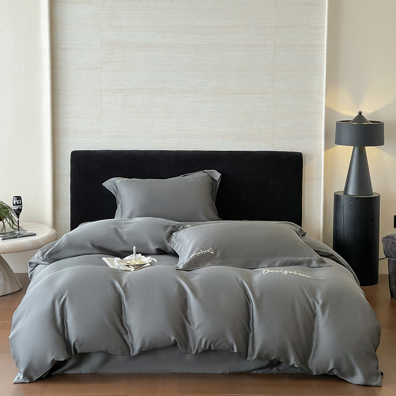 黛舒家居 2025新款60S兰精天丝纯色简绣四件套 竹卡