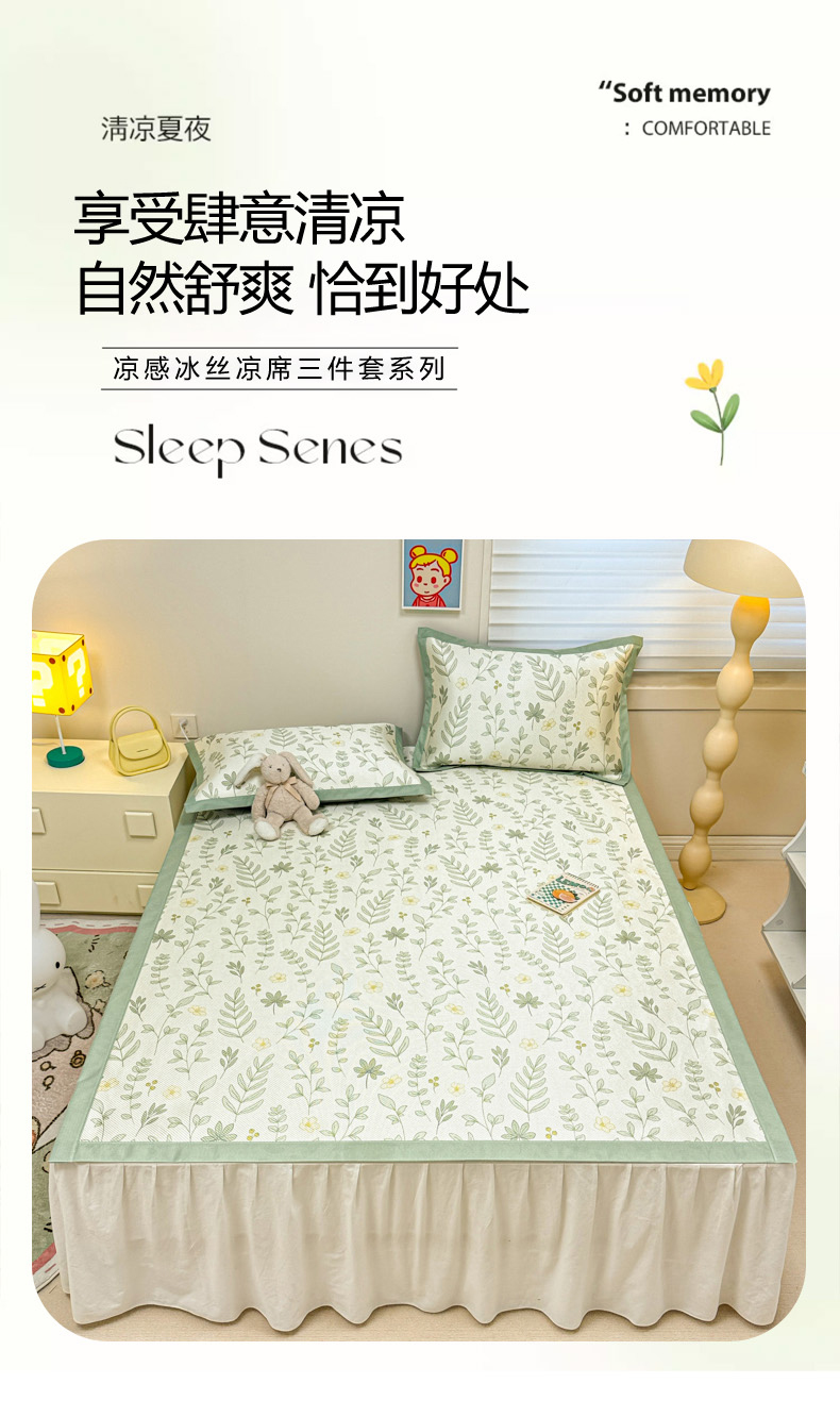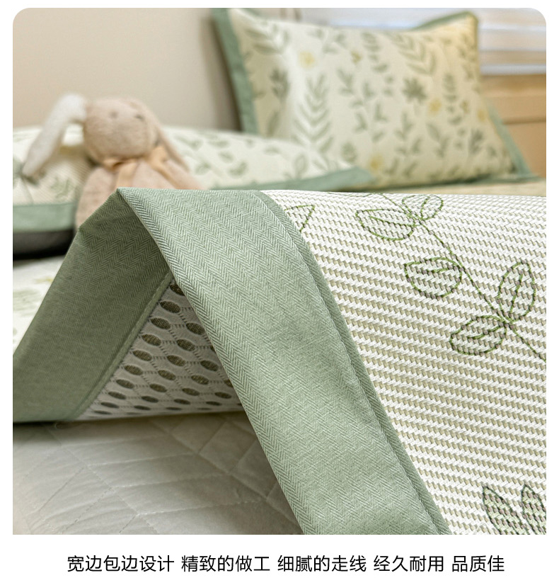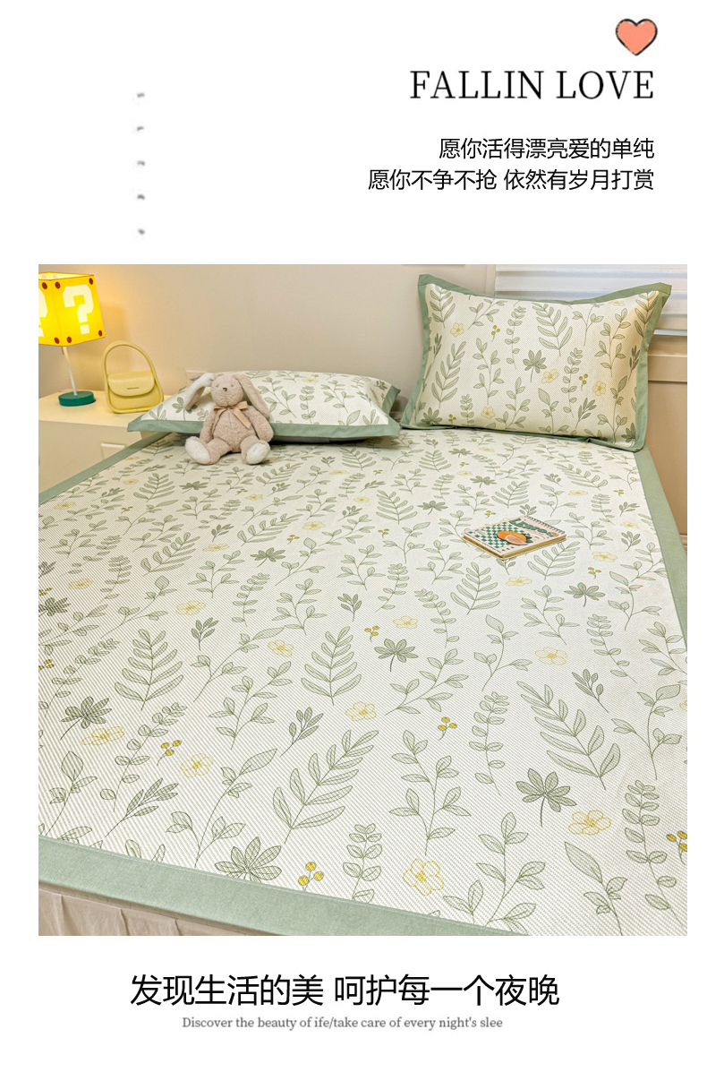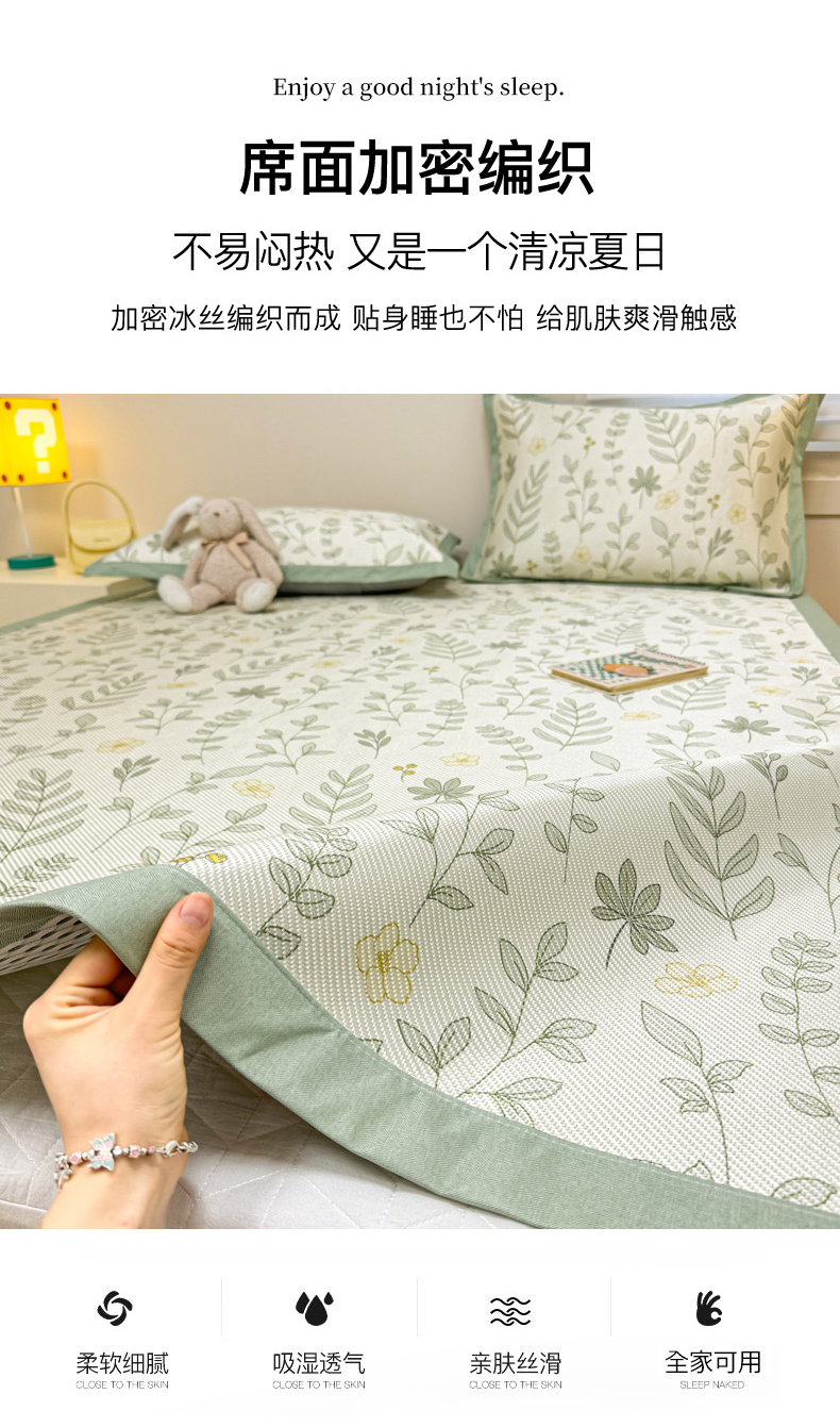 慕尚家纺 2025新款600D小清新凉感冰丝凉席三件套 薄荷叶