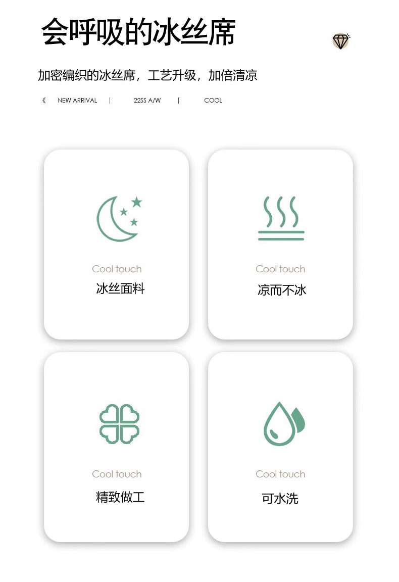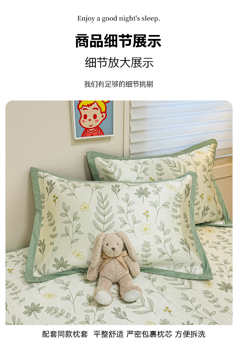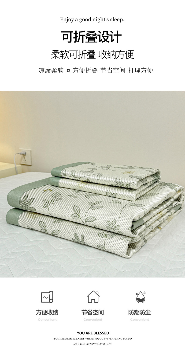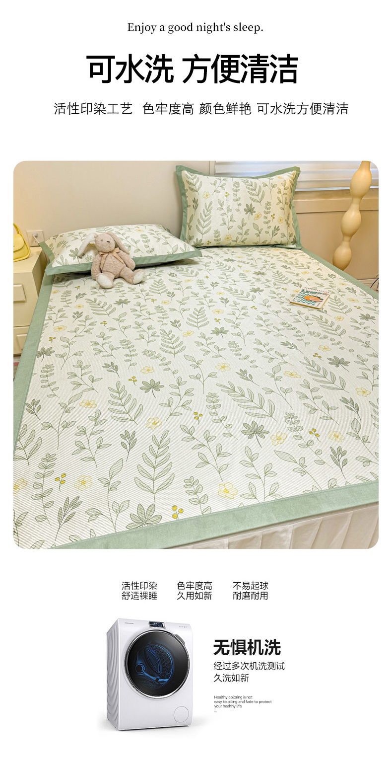 慕尚家纺 2025新款600D小清新凉感冰丝凉席三件套 薄荷叶