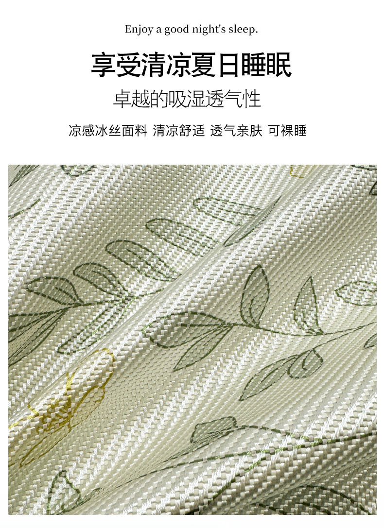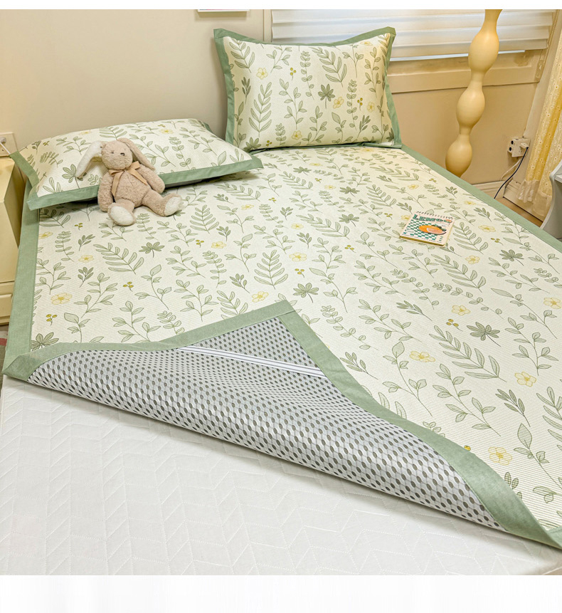 商品名称:慕尚家纺 2025新款600D小清新凉感冰丝凉席三件套 薄荷叶