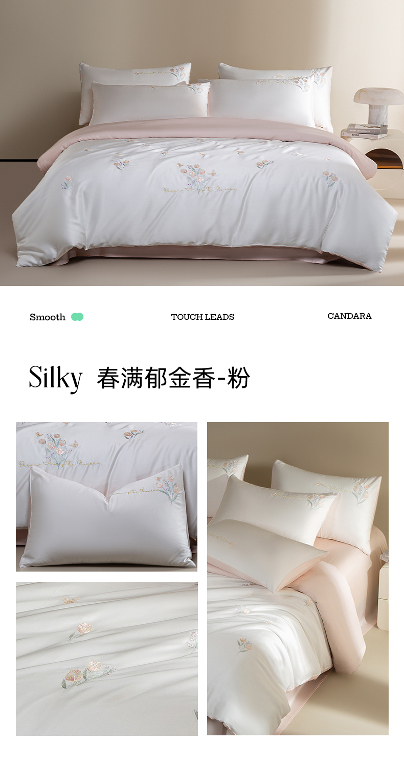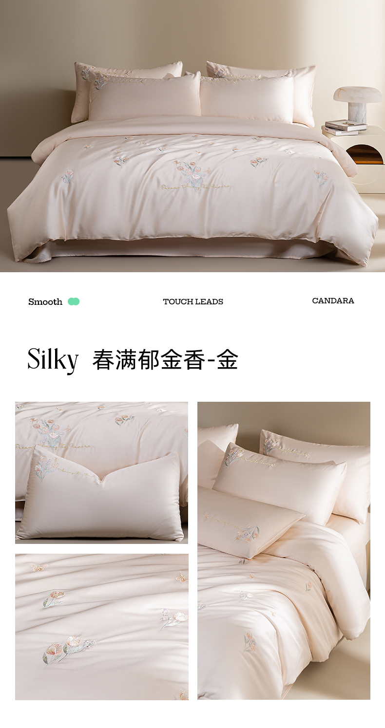 千朵森 2025新款60S奥地利兰精天丝四件套-春满郁金香 郁金香蓝