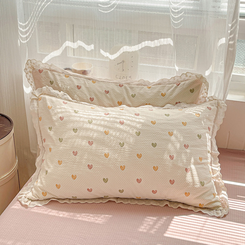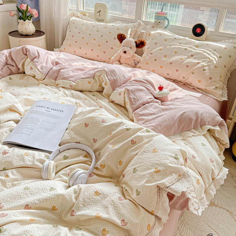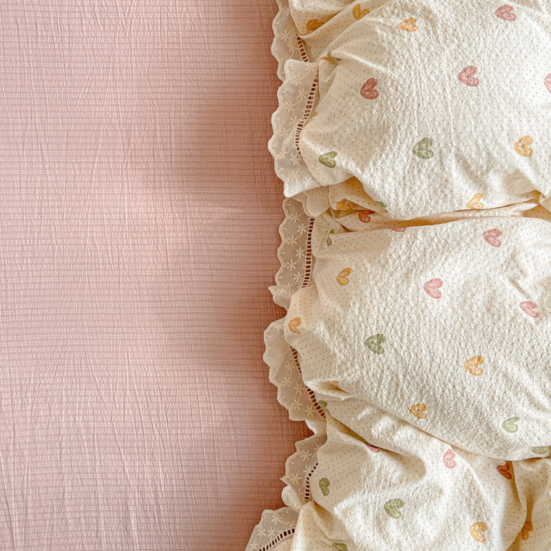 仟网汇 2025新款云感皱皱双层纱全棉花边四件套 心动