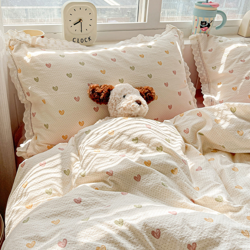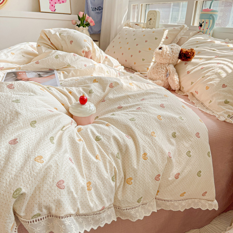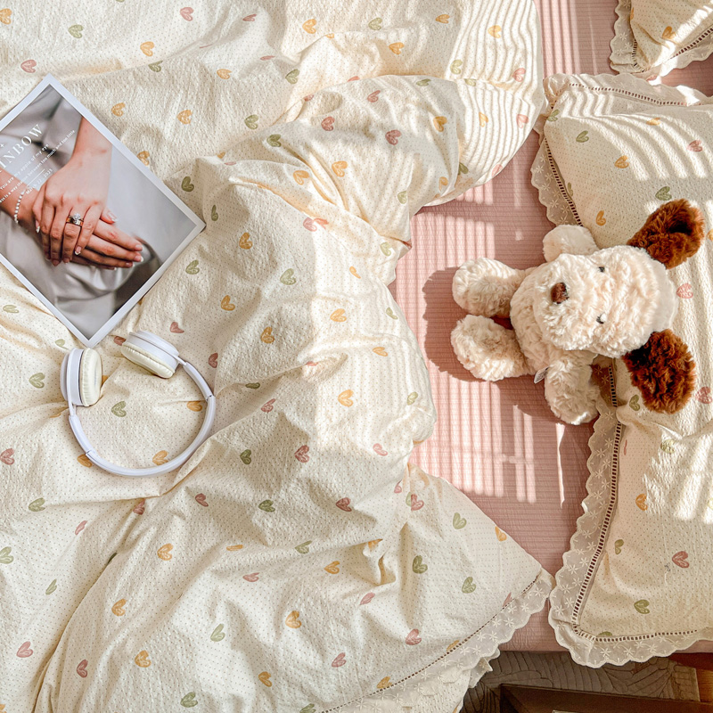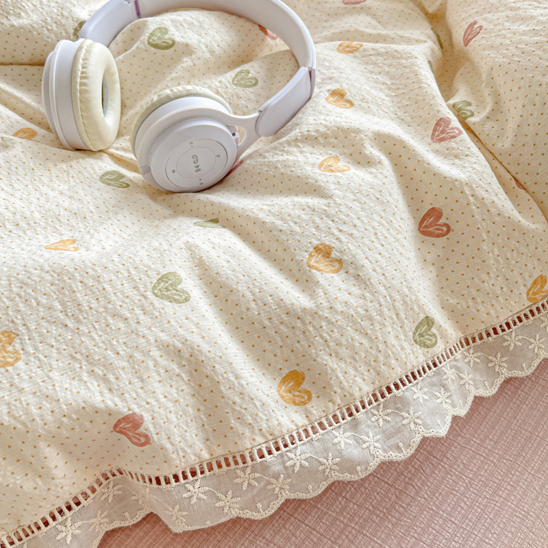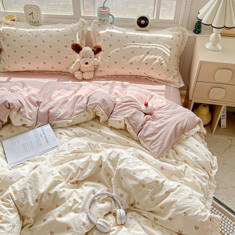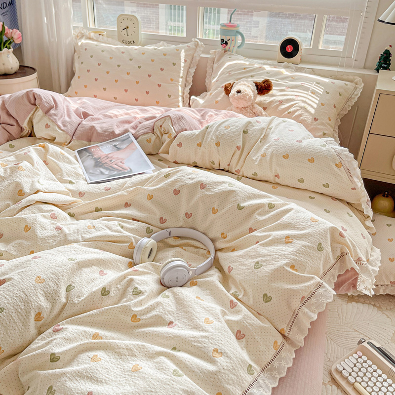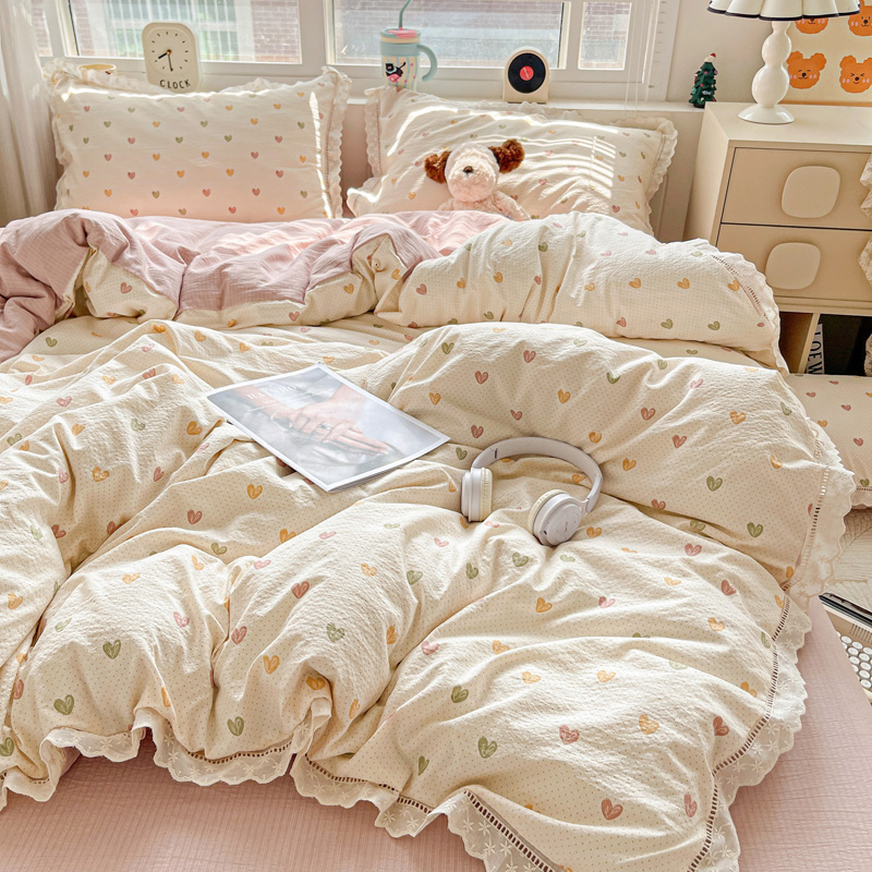 商品名称:仟网汇 2025新款云感皱皱双层纱全棉花边四件套 心动