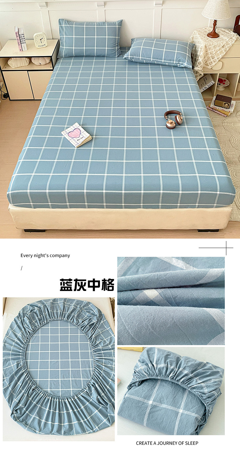 商品名称:2025新款全棉水洗棉套件-单床笠 蓝灰中格