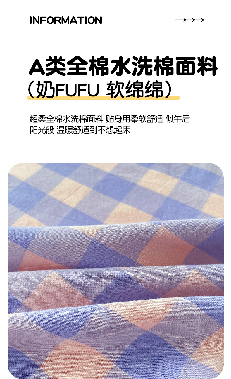 (总)大柏树 2025新款全棉水洗棉套件-床笠四件套,艾莎绿小格,春野咖,春野兰,春野玉,绿紫中格,洛伊粉咖小格,莫妮卡,诺卡,日落红,日落灰,云素红,云岫粉咖,云岫绿咖