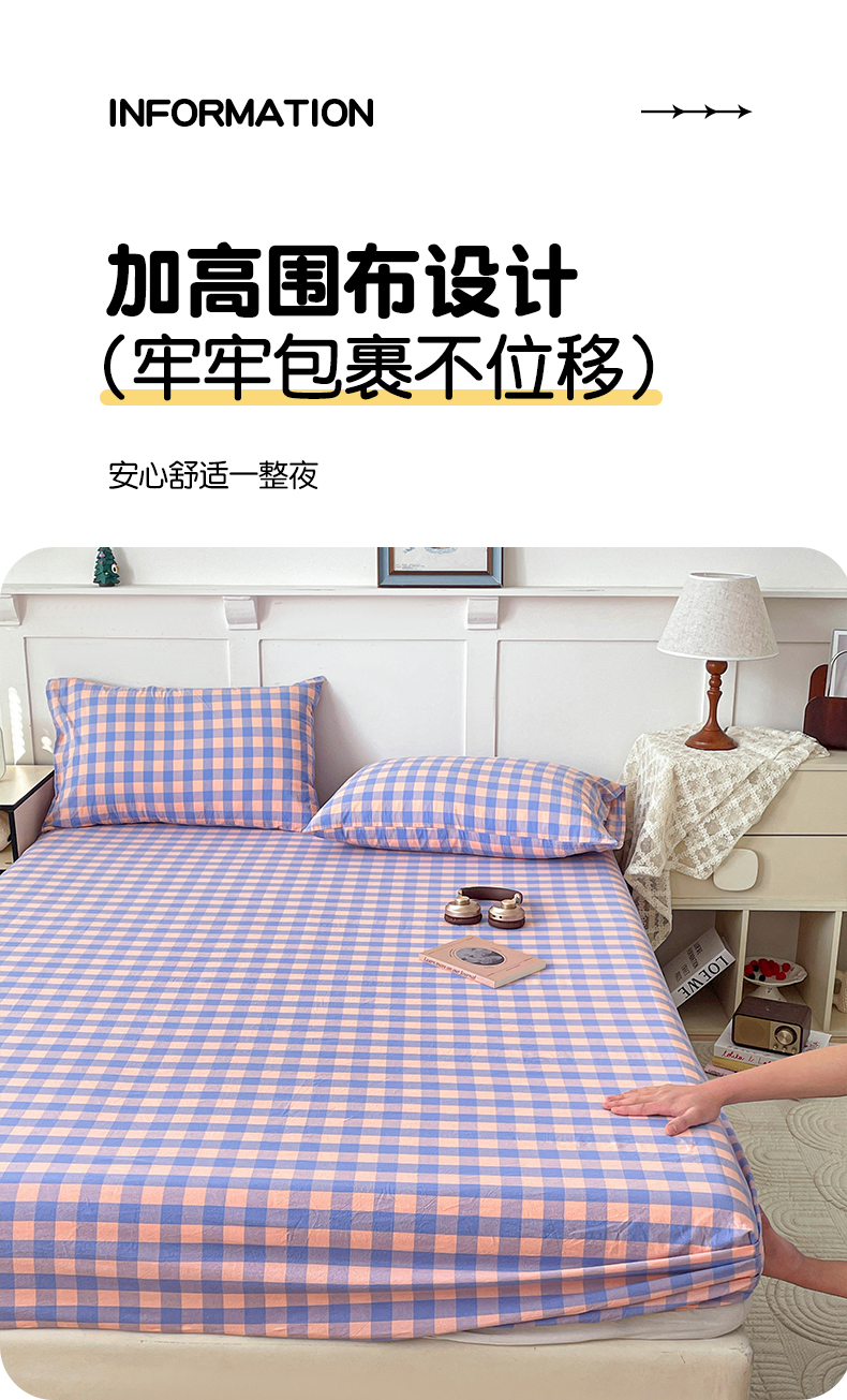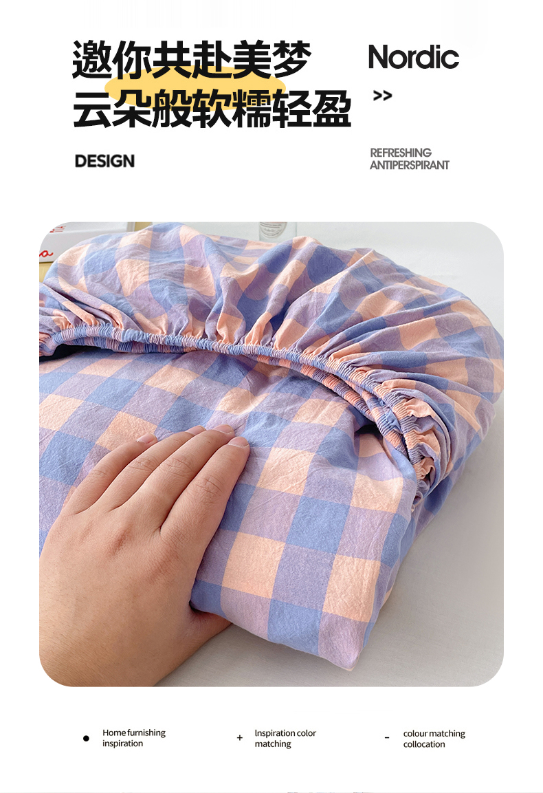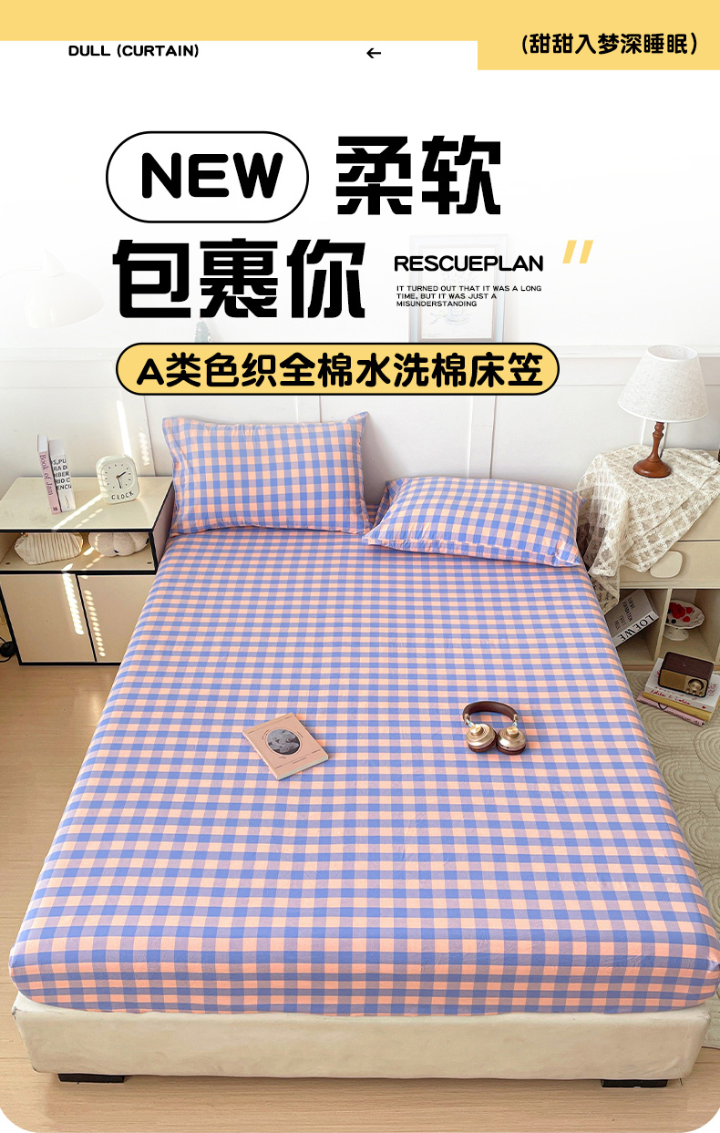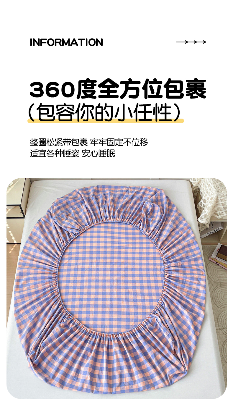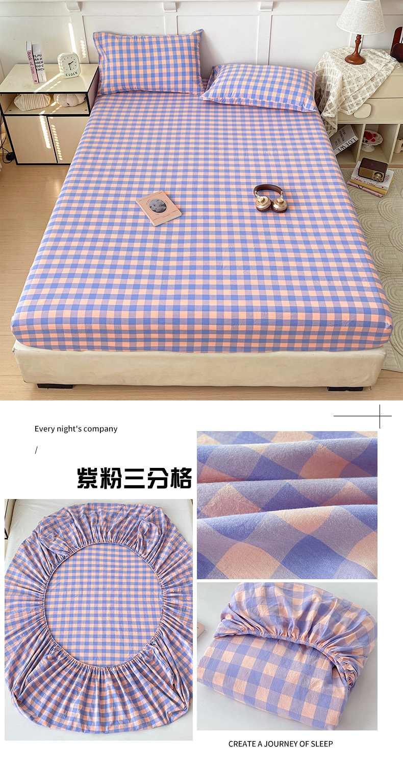 商品名称:2025新款全棉水洗棉套件-单床笠 紫粉三分格
