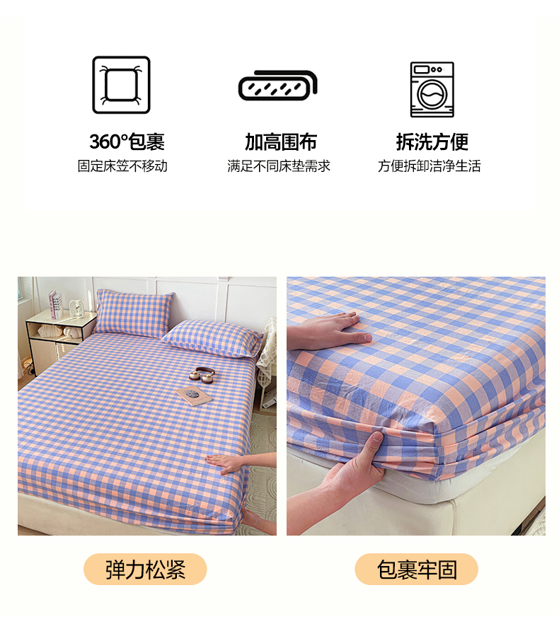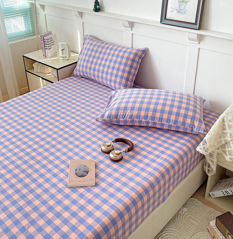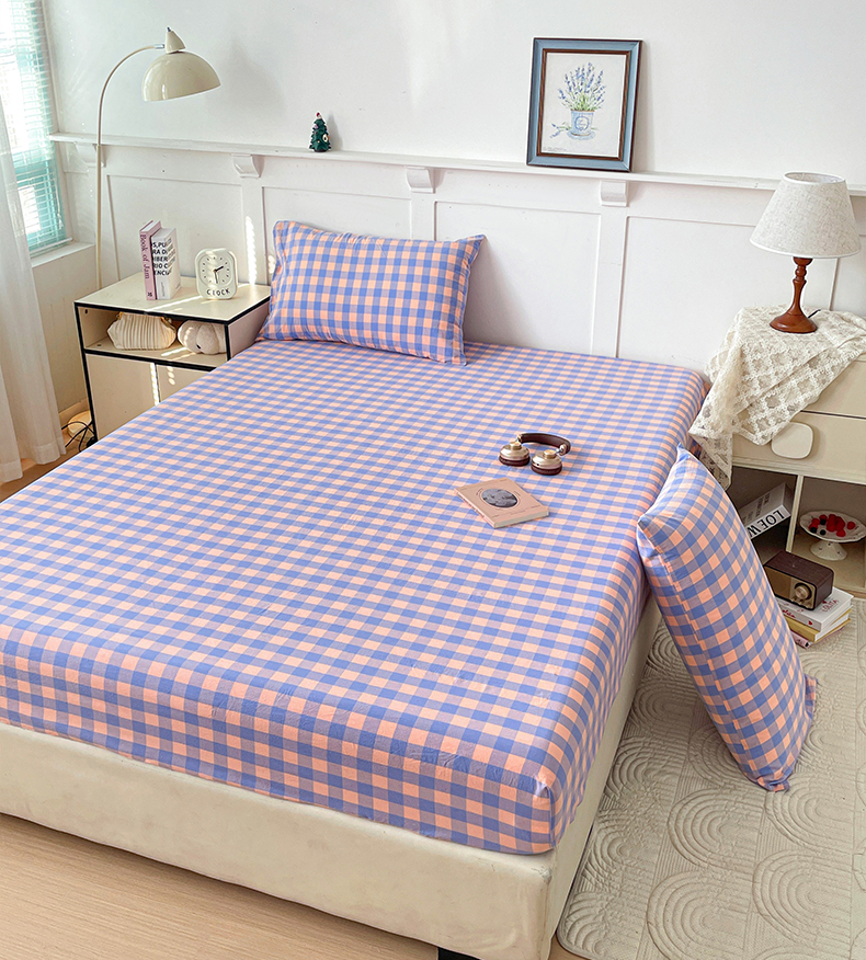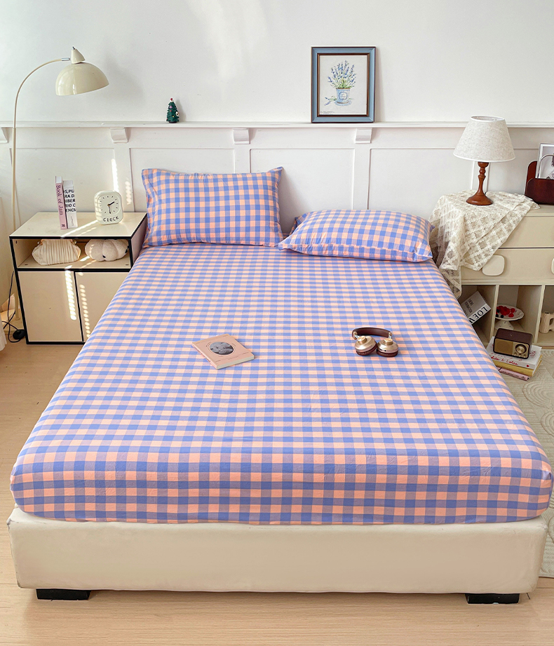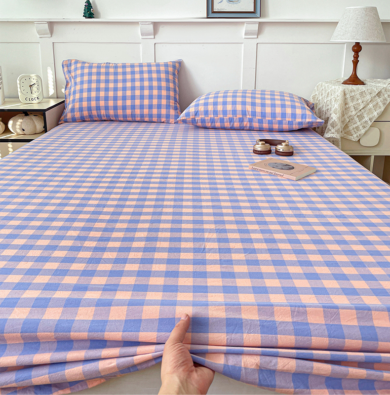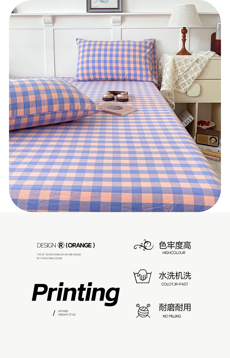 商品名称:2025新款全棉水洗棉套件-单床笠 紫粉三分格