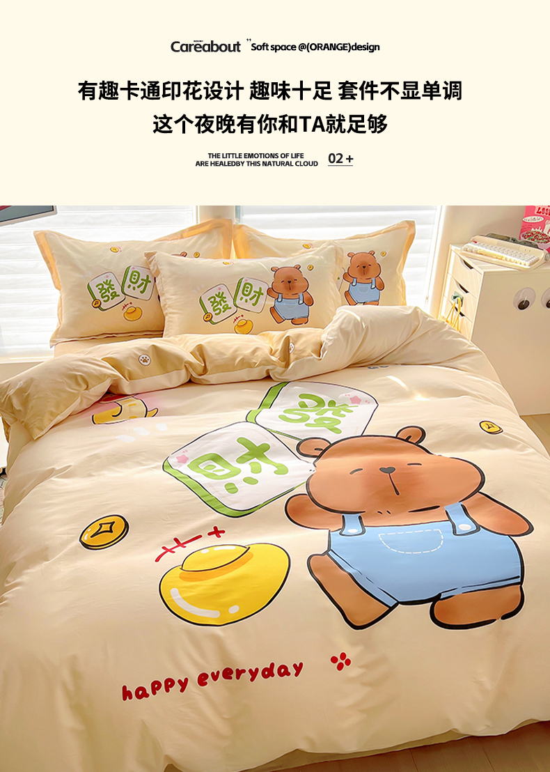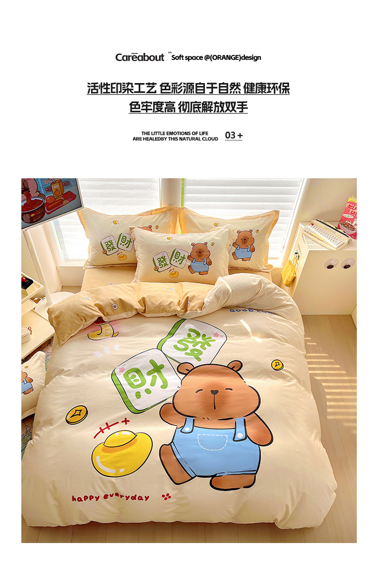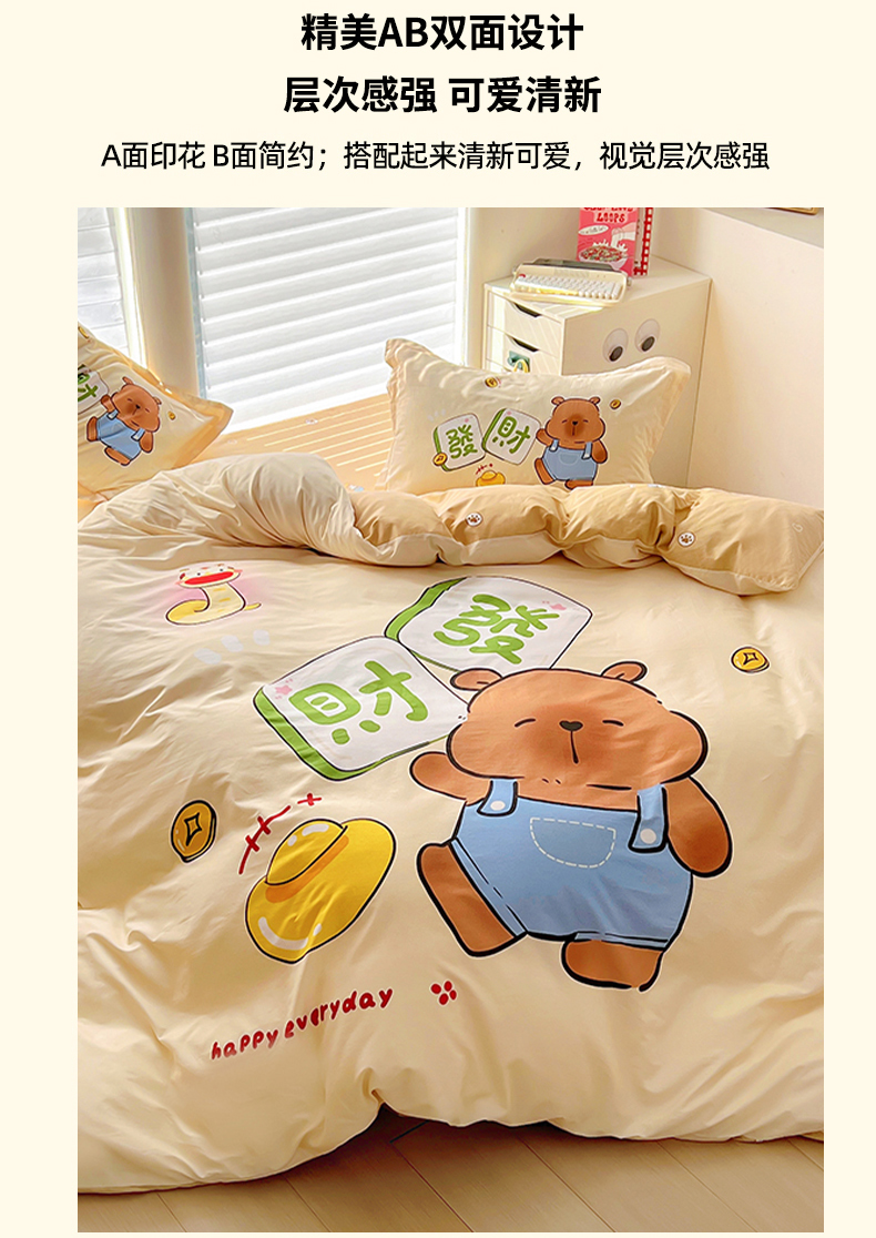 当前位置: 91家纺网 > 商品网购 > 床品套件 > 四件套 > 全棉普通四件套 > 2025新款原创设计卡皮巴拉全棉四件套-有作品登记证书 发财巴拉