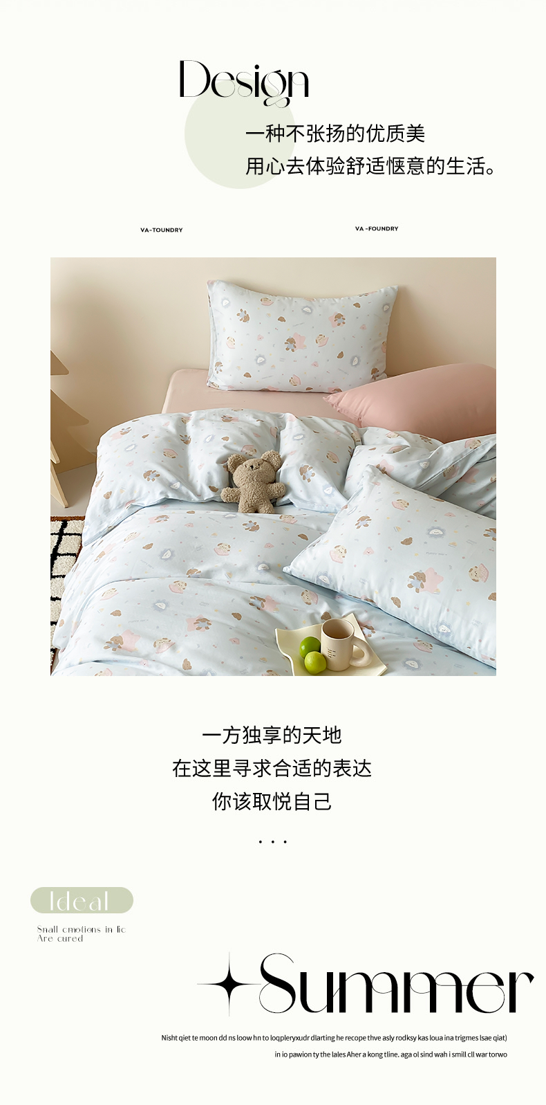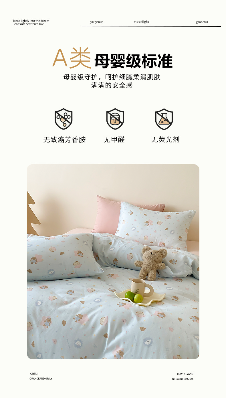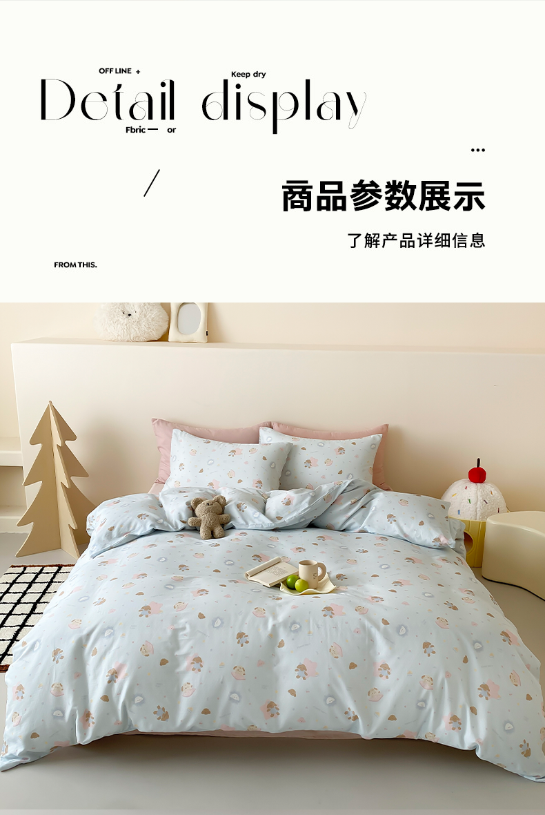 当前位置: 91家纺网 > 商品网购 > 床品套件 > 四件套 > 全棉普通四件套 > 时光里 2025新款A类全棉双层纱卡通风七色系列第二波 乐悠汪-蓝