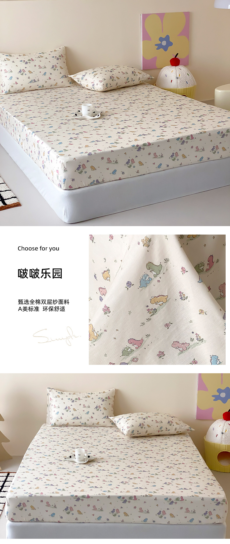(总)时光里 2025新款双层纱系列卡通风床单,豹豹妮,啵啵乐园,布丁,可艾,萌宠宝宝-绿,如甜初梦,甜品屋-棕,小兔乖乖,竹汐恋,卡通风集合图