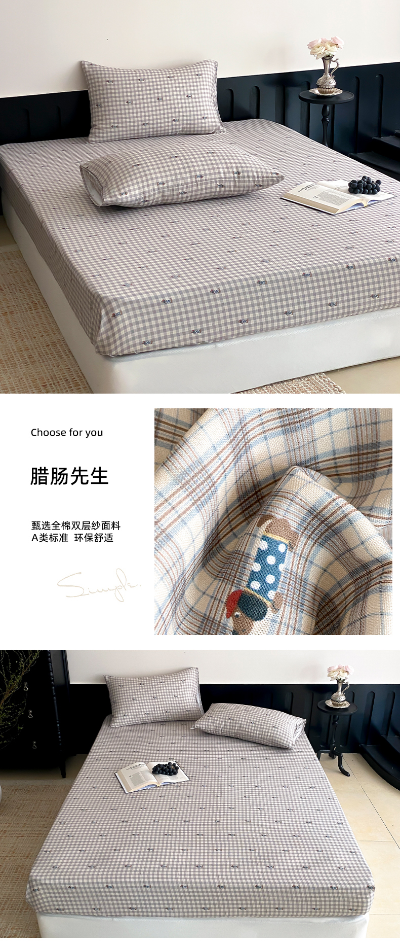 (总)时光里 2025新款230克全消光印花10色专版花型四件套,缤纷熊,狗狗乐园-蓝,花兔兔,花漾,开心腊肠,猫咪日记,木槿,森林兔,线团小咪,小雏菊