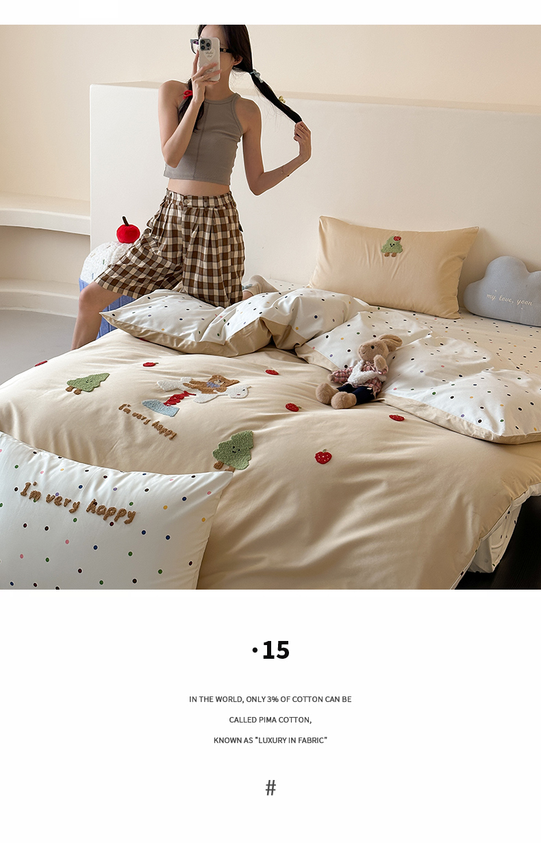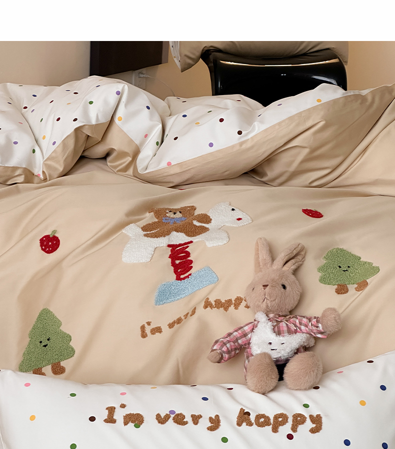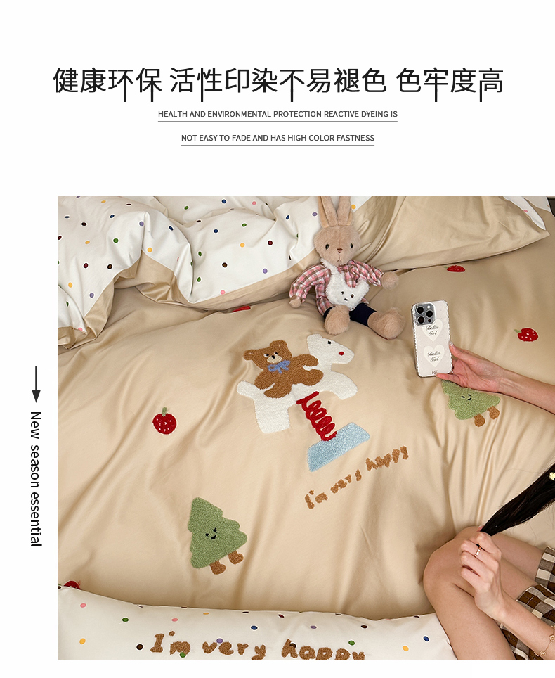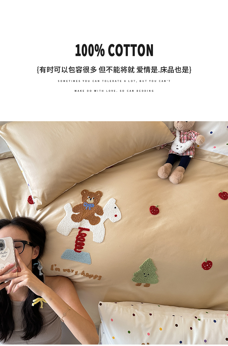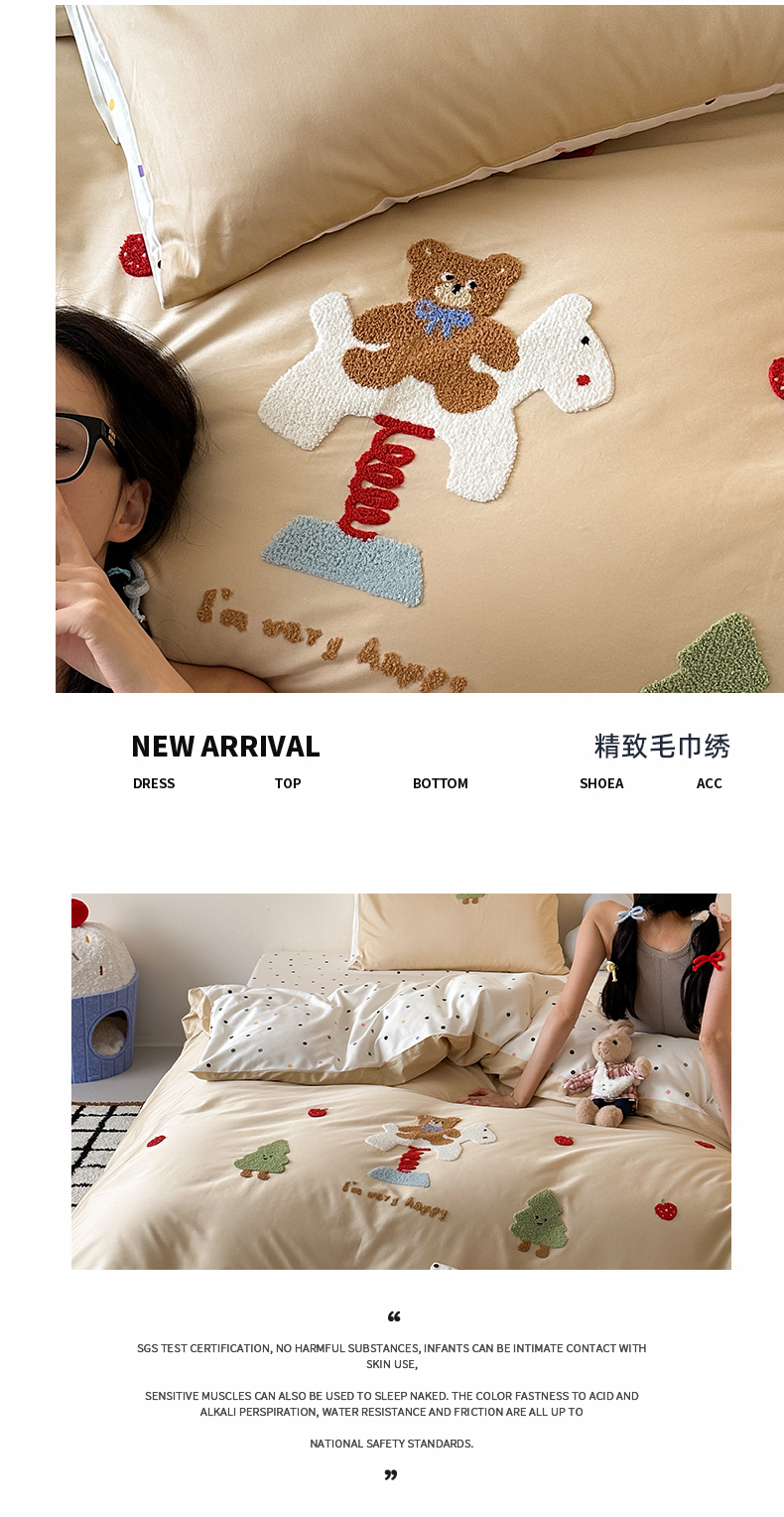 当前位置: 91家纺网 > 商品网购 > 床品套件 > 四件套 > 其它四件套 > 时光里 2025新款100S卡通风贡缎毛巾绣四件套 捣莓熊