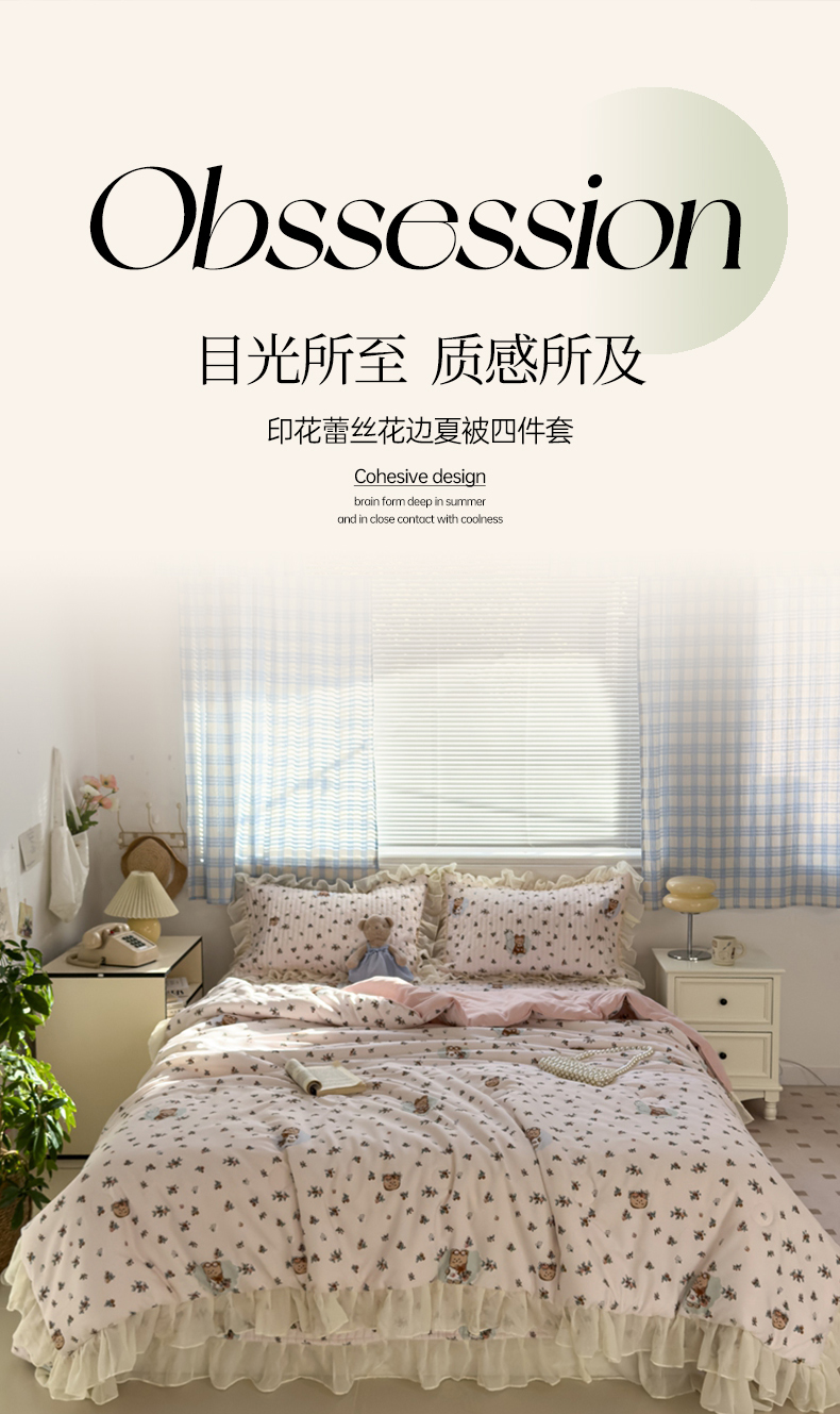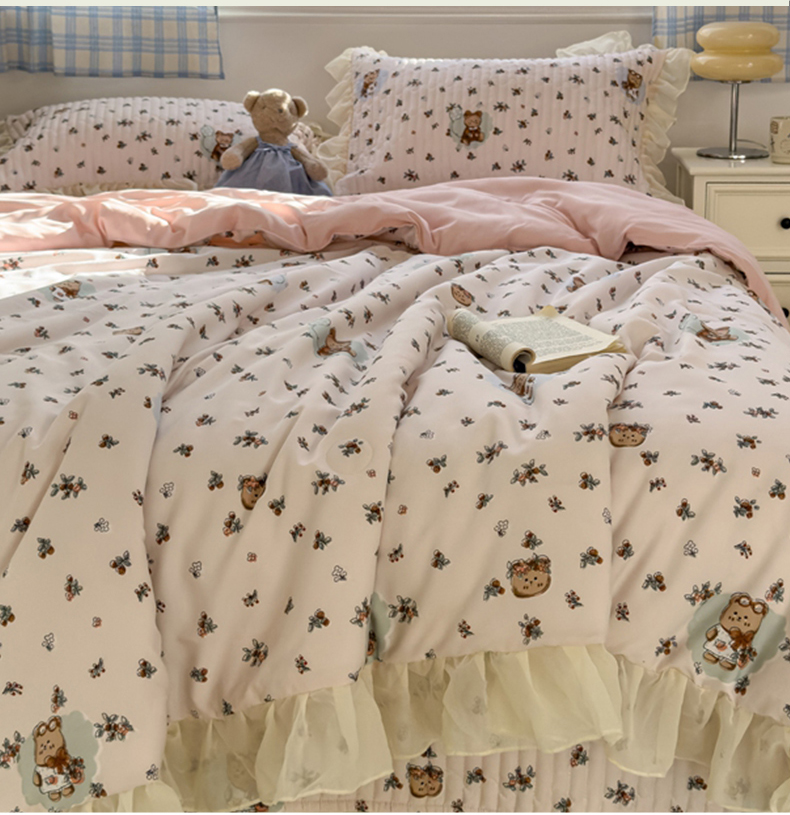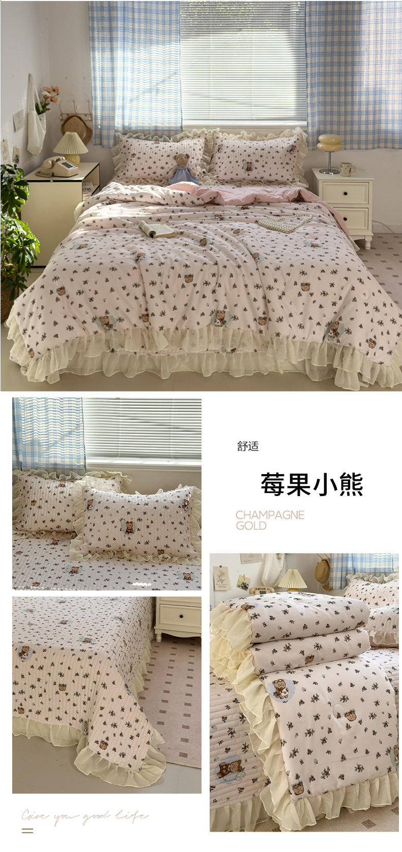 当前位置: 91家纺网 > 商品网购 > 床品套件 > 四件套 > 其它四件套 > 2025新款印花夏被四件套 莓果小熊