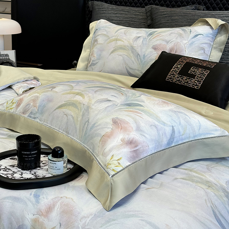(总)若未家居 LOVEWE HOUSE 2026新款100S数码印花轻奢风四件套-波澜,波澜 爵士灰,波澜 公主粉,波澜 贝拉橘