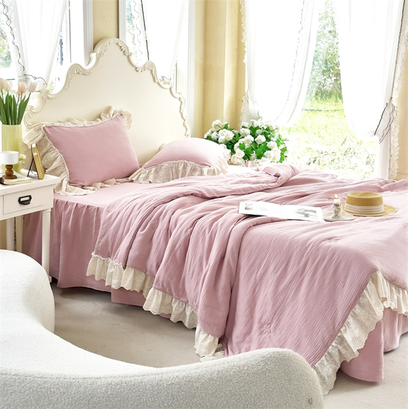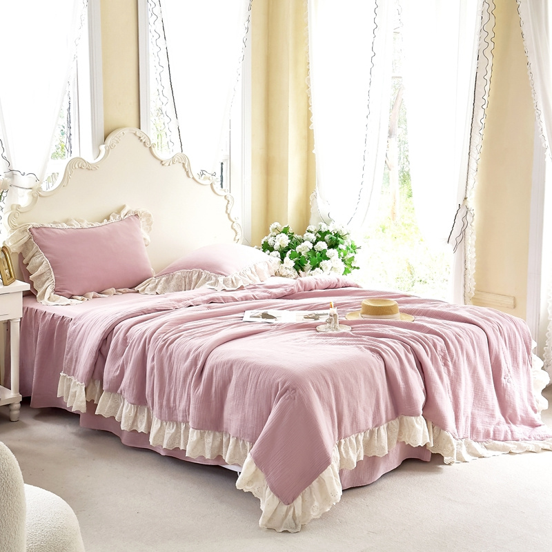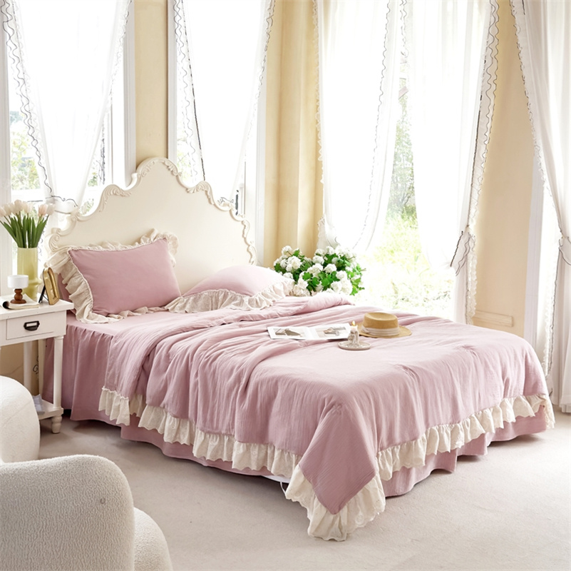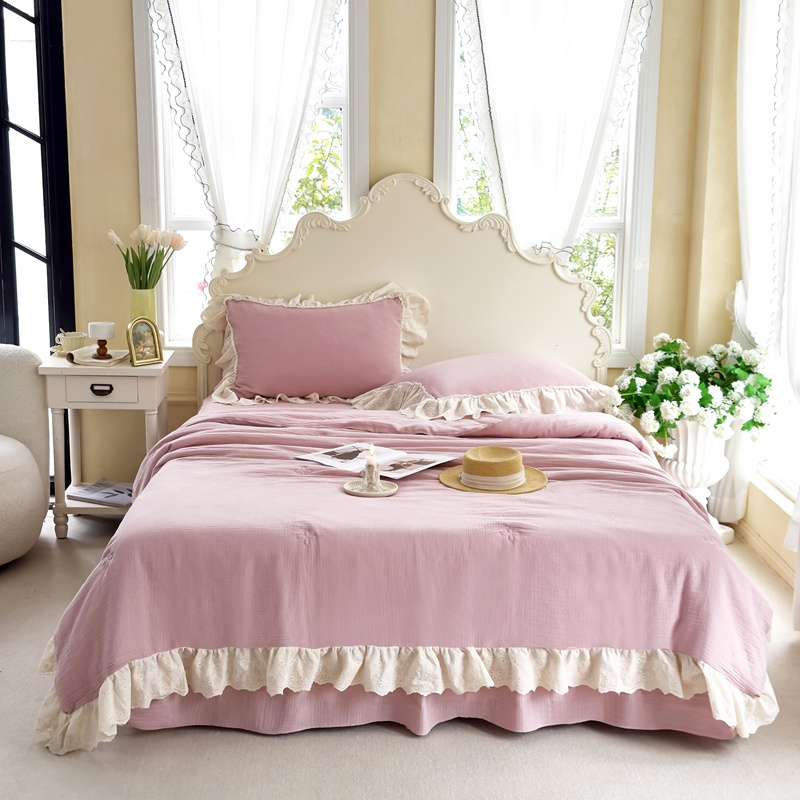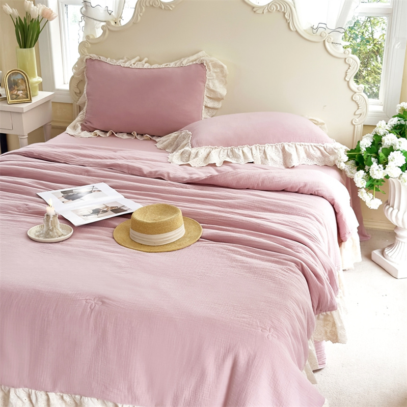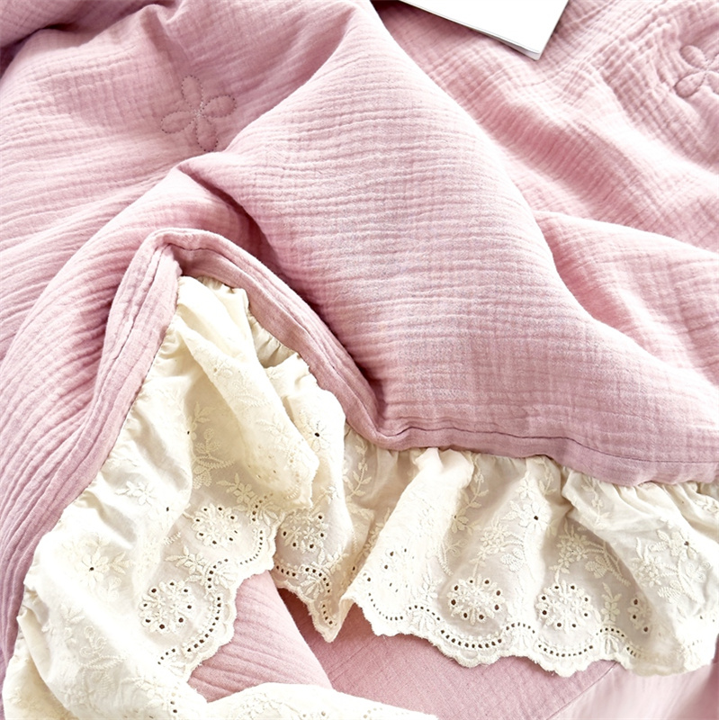 北纬27度2025新款双层全棉绉绉纱夏被四件套 豆沙