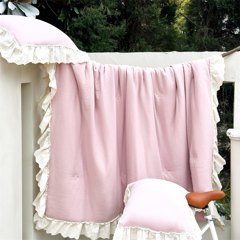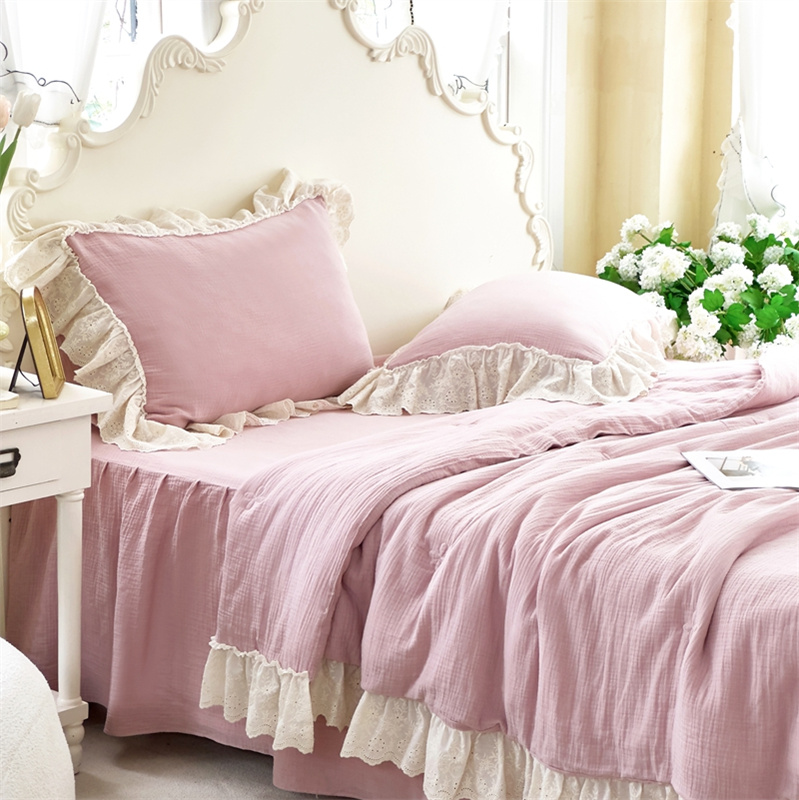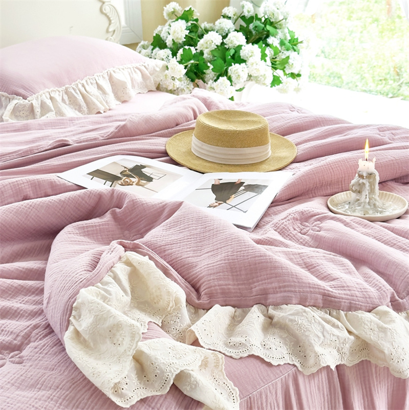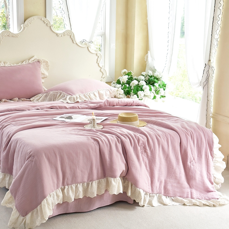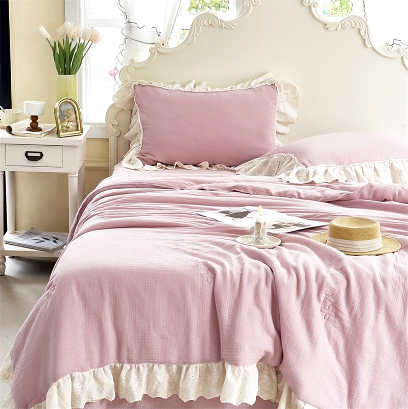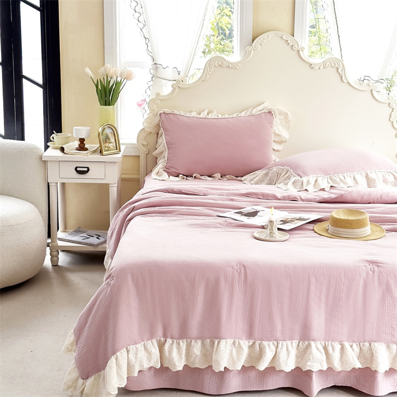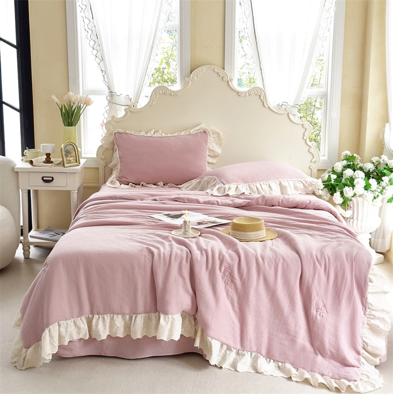 北纬27度2025新款双层全棉绉绉纱夏被四件套 豆沙
