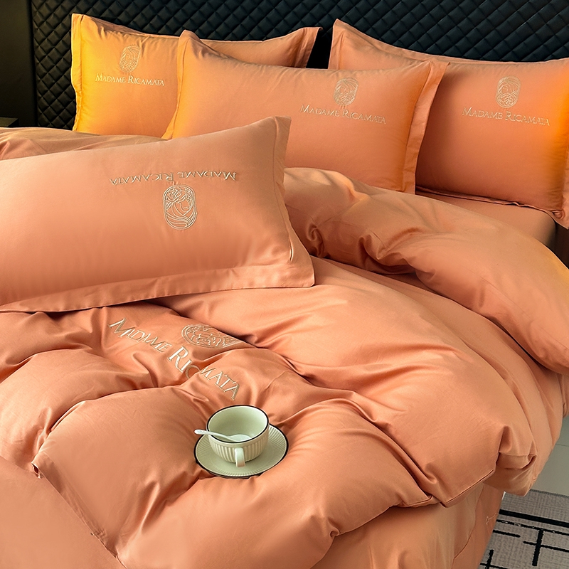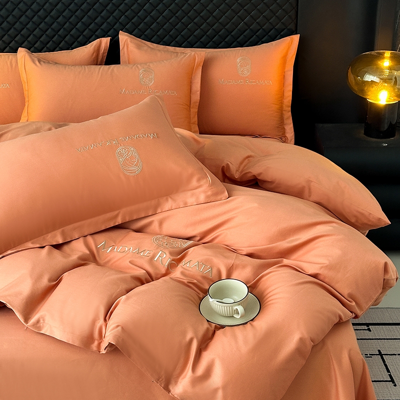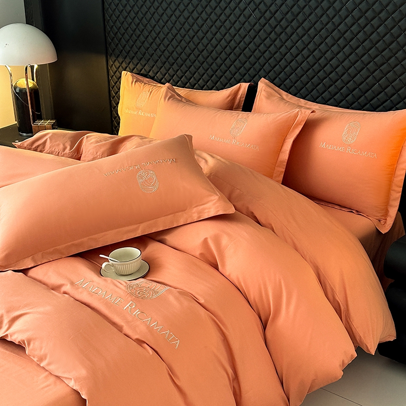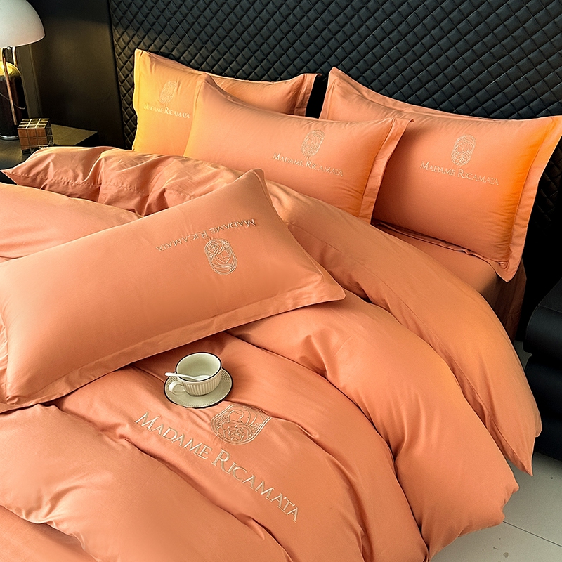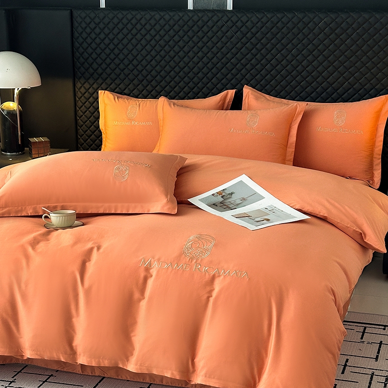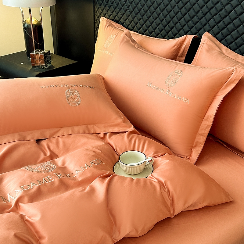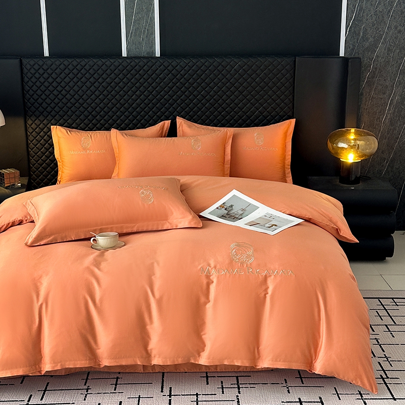 梦莱斯2025新款长绒棉刺绣轻奢系列四件套 活力橙