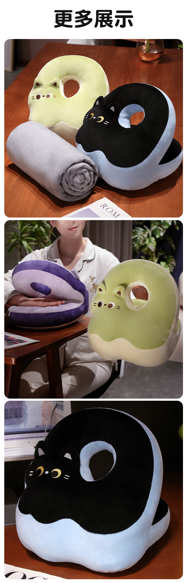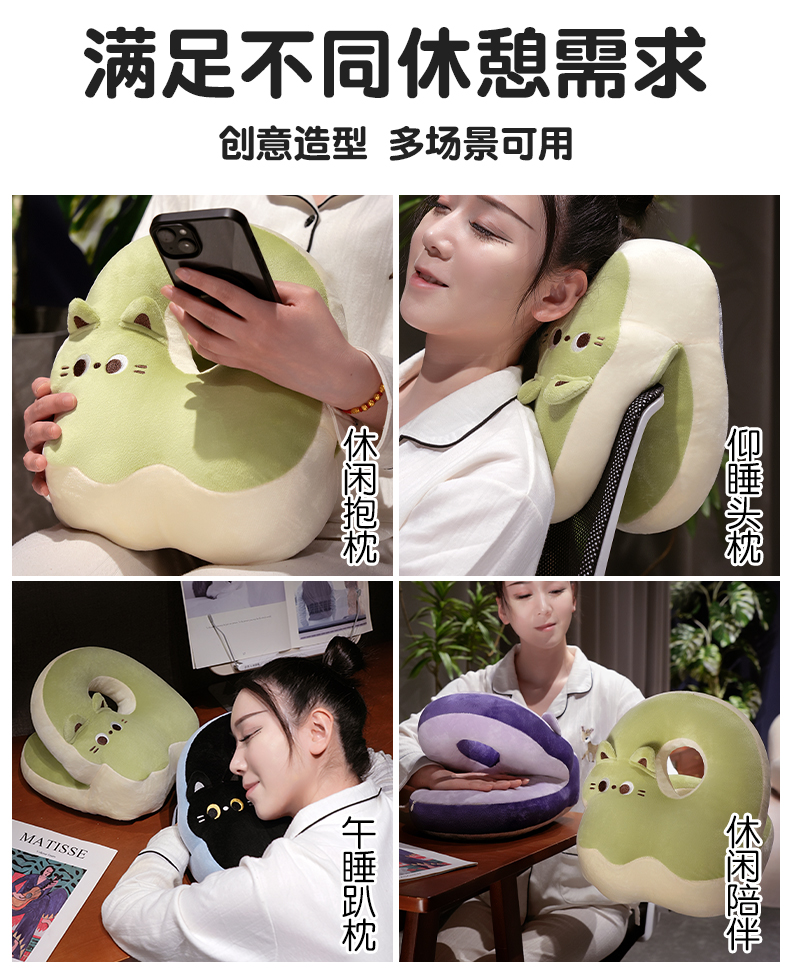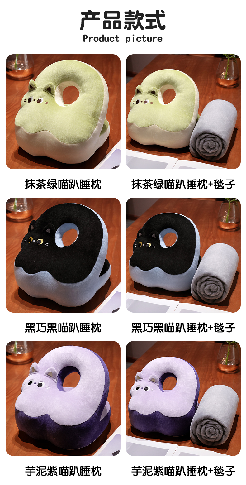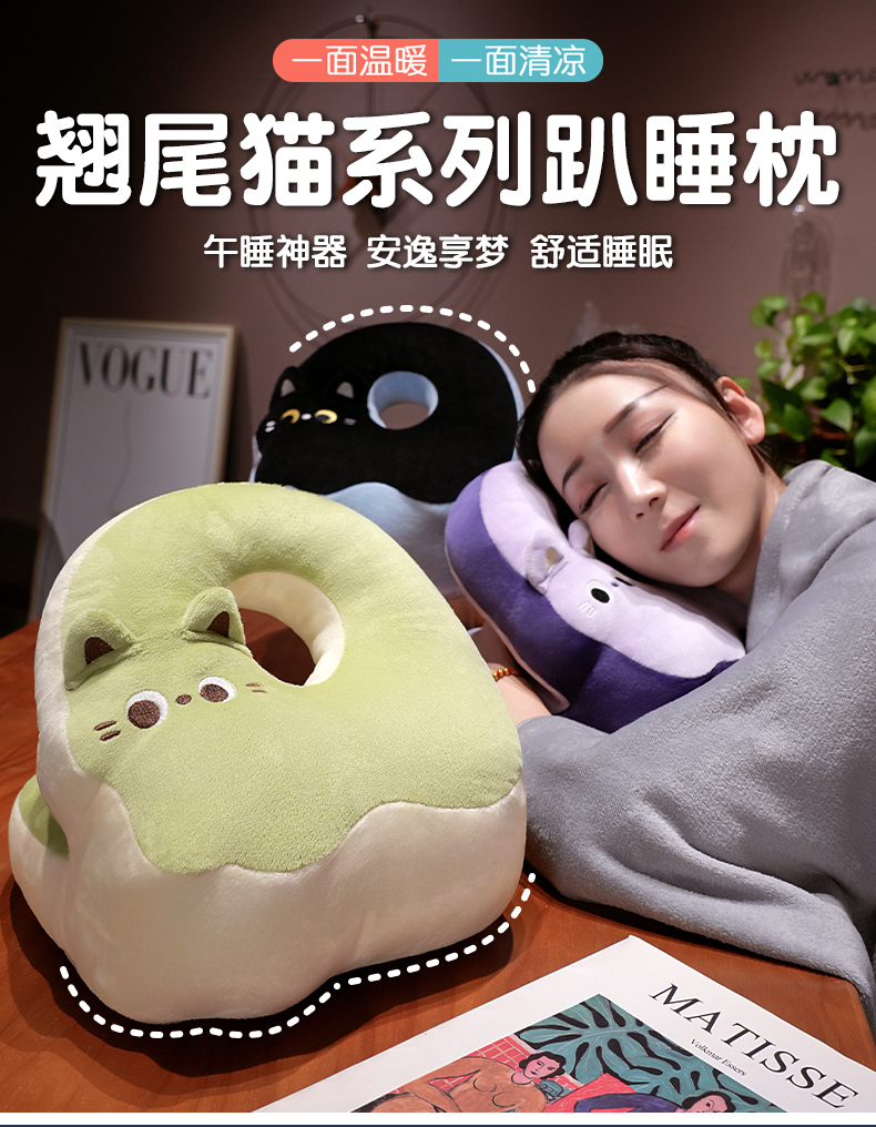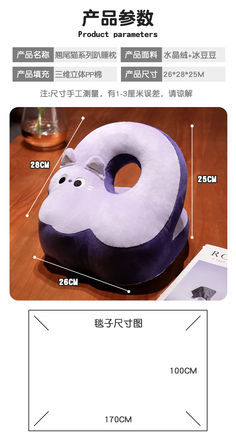商品名称:(总)仟亿莱 2025新款翘尾猫冰丝豆豆双面午睡枕