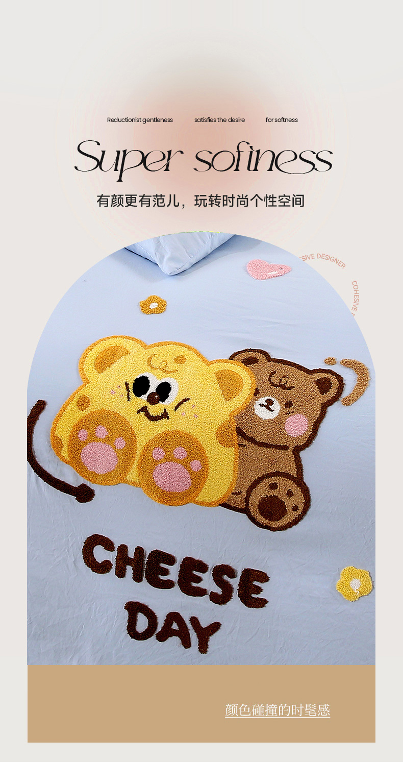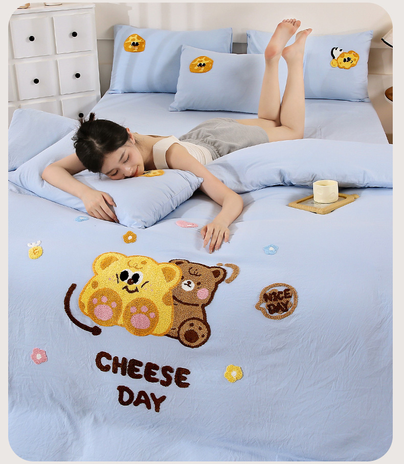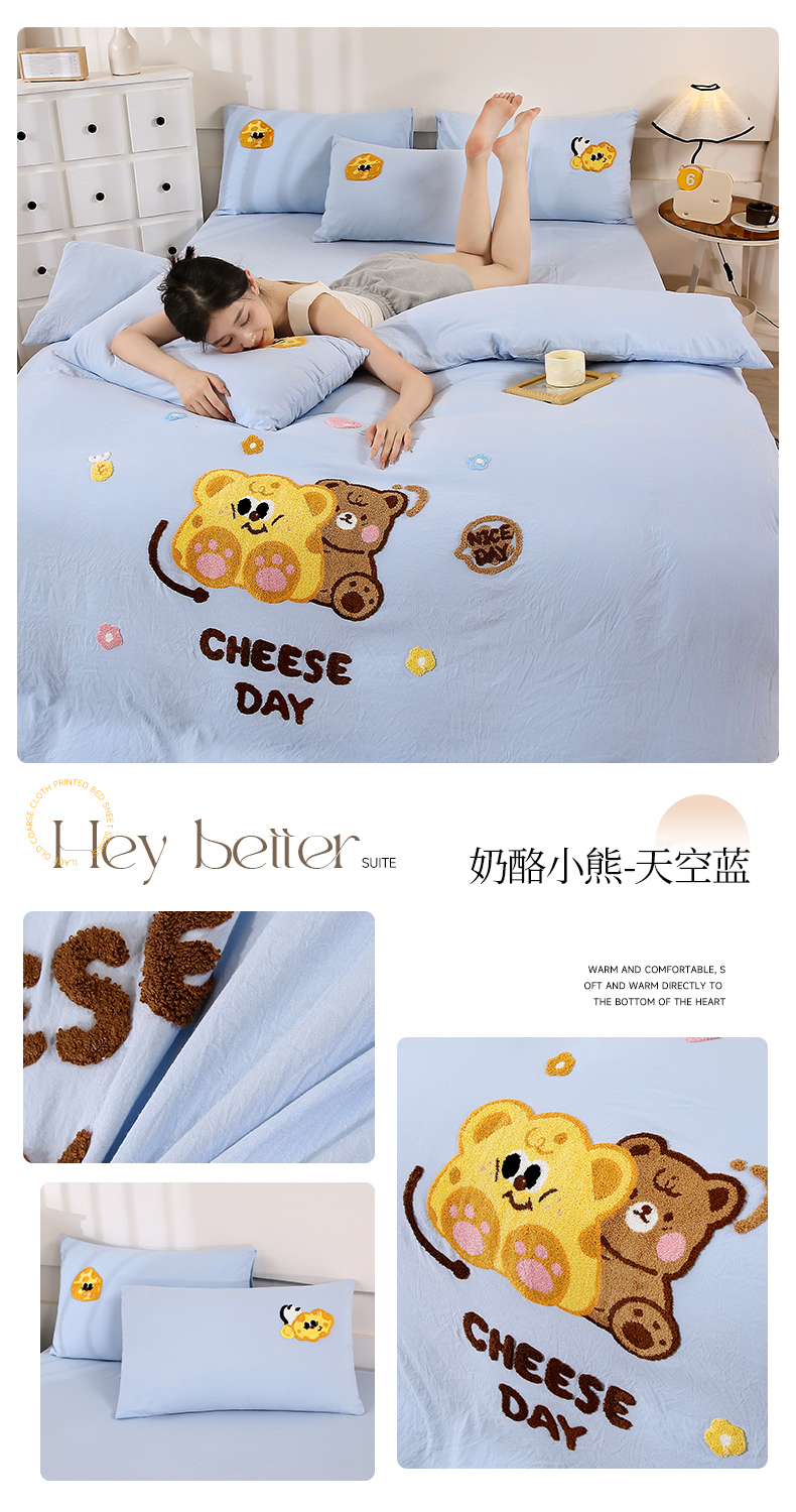 商品名称:优米家纺 2025新款A类水洗棉毛巾绣四件套-奶酪小熊 奶酪小熊-柔情玉