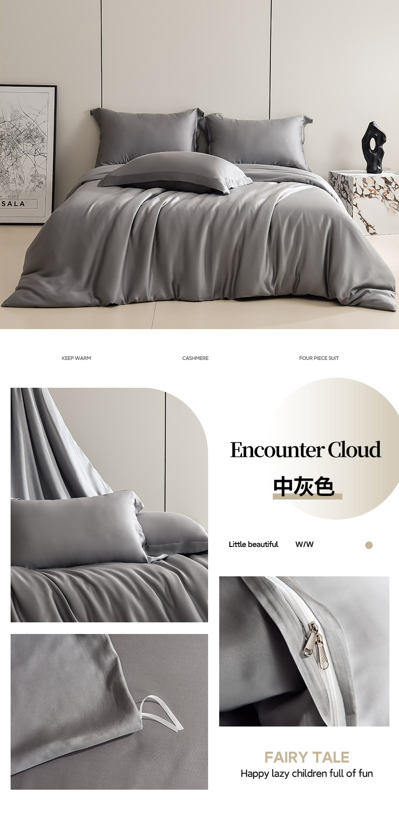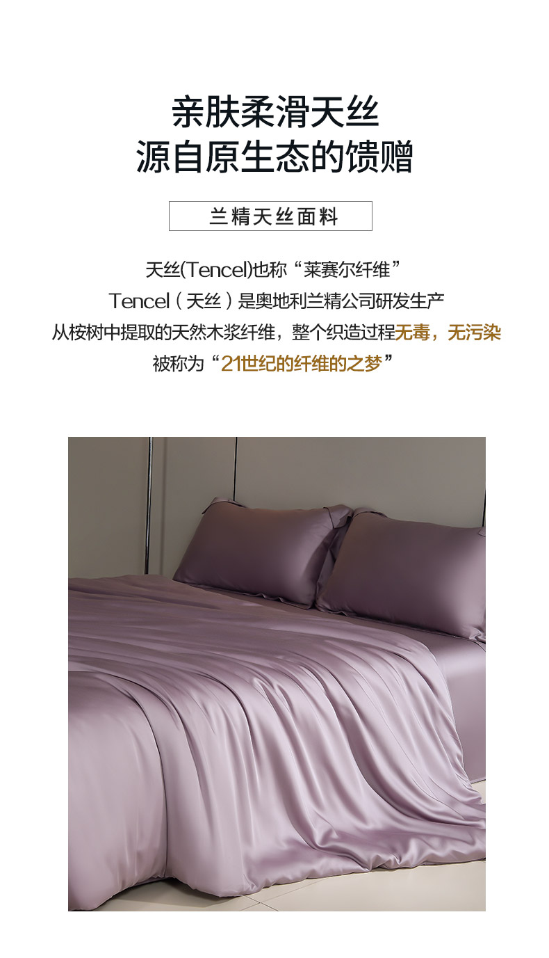 商品名称:简爱家纺 2026亲肤舒适60s兰精天丝四件套【可授权】 雾紫